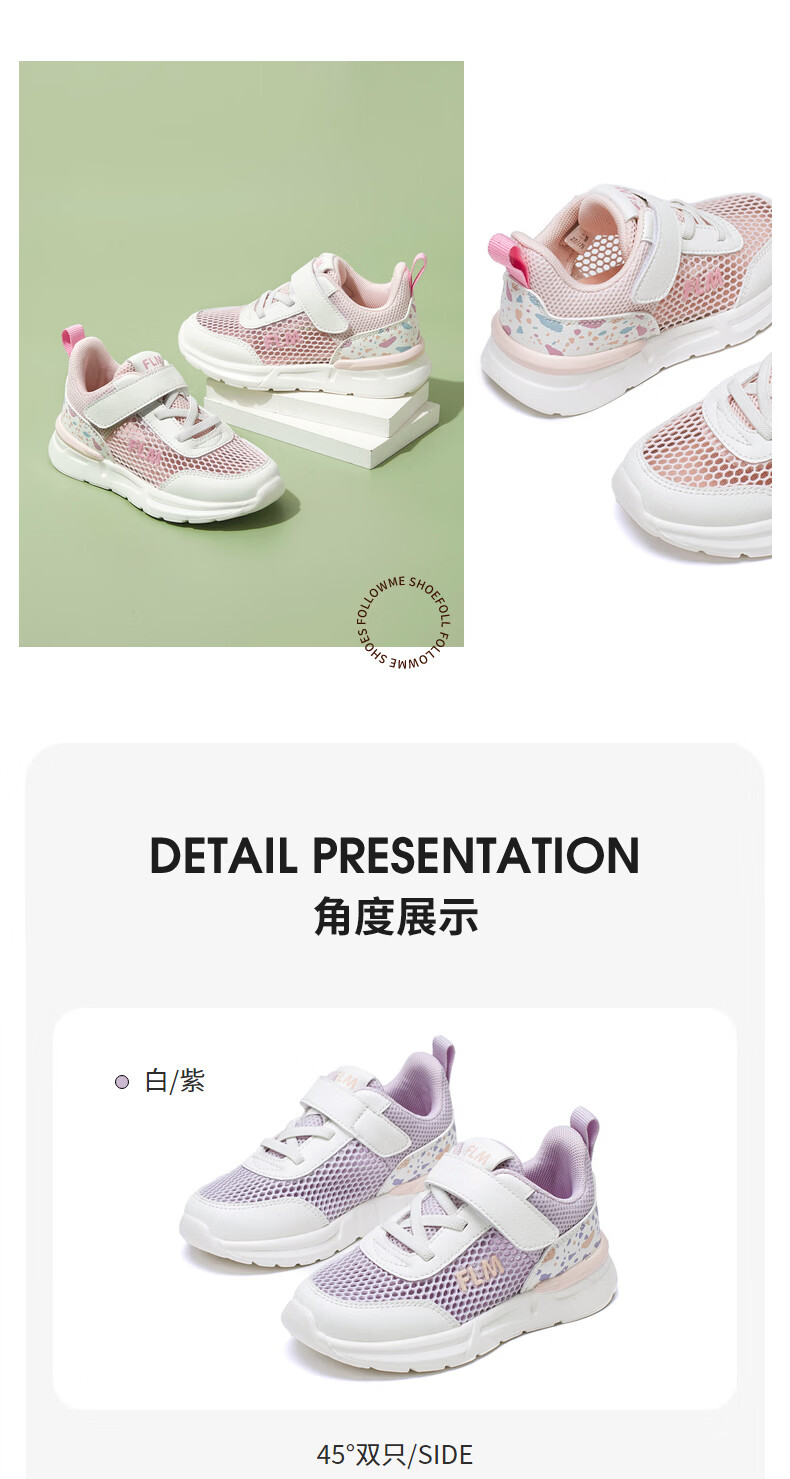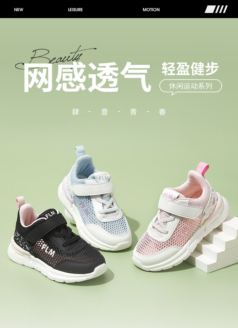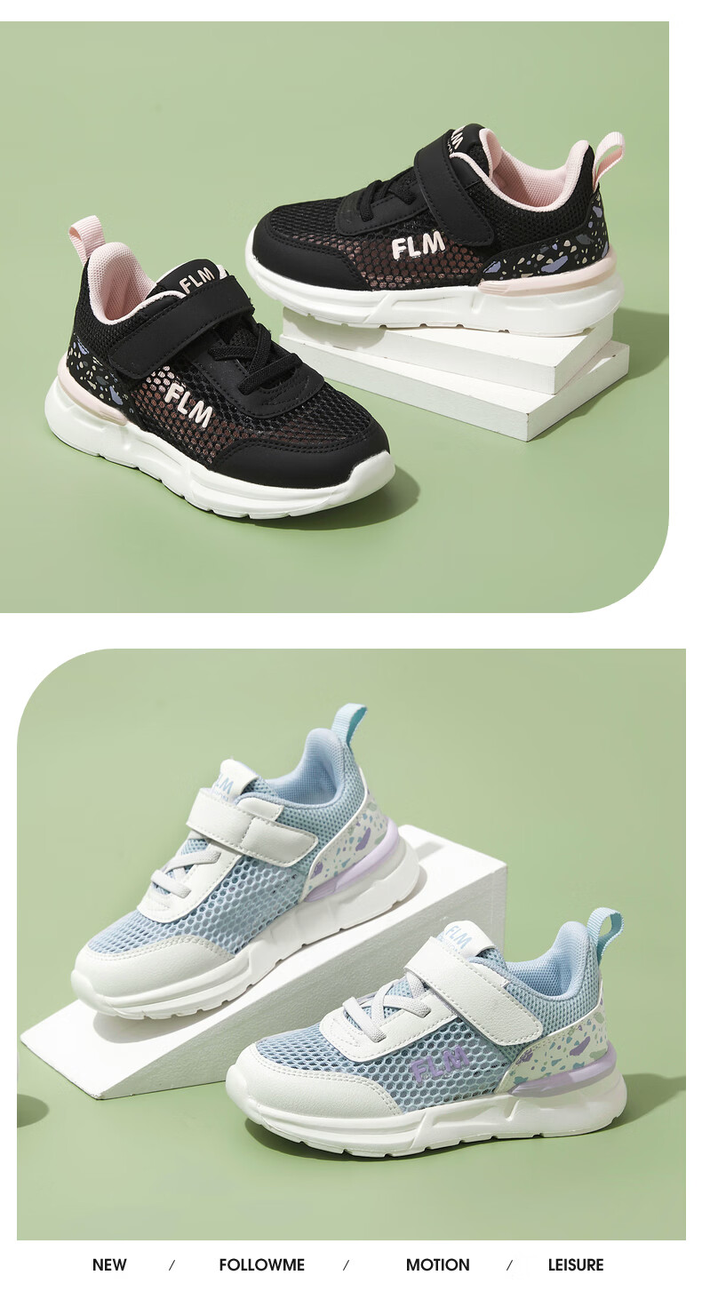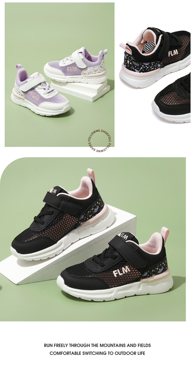 Fuluo Mi Girls' Breathable Mesh Medium and Large Children's Sports and Casual Shoes Comfortable Mesh Running Shoes Versatile Student White Shoes Black 26