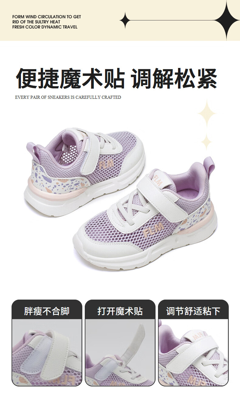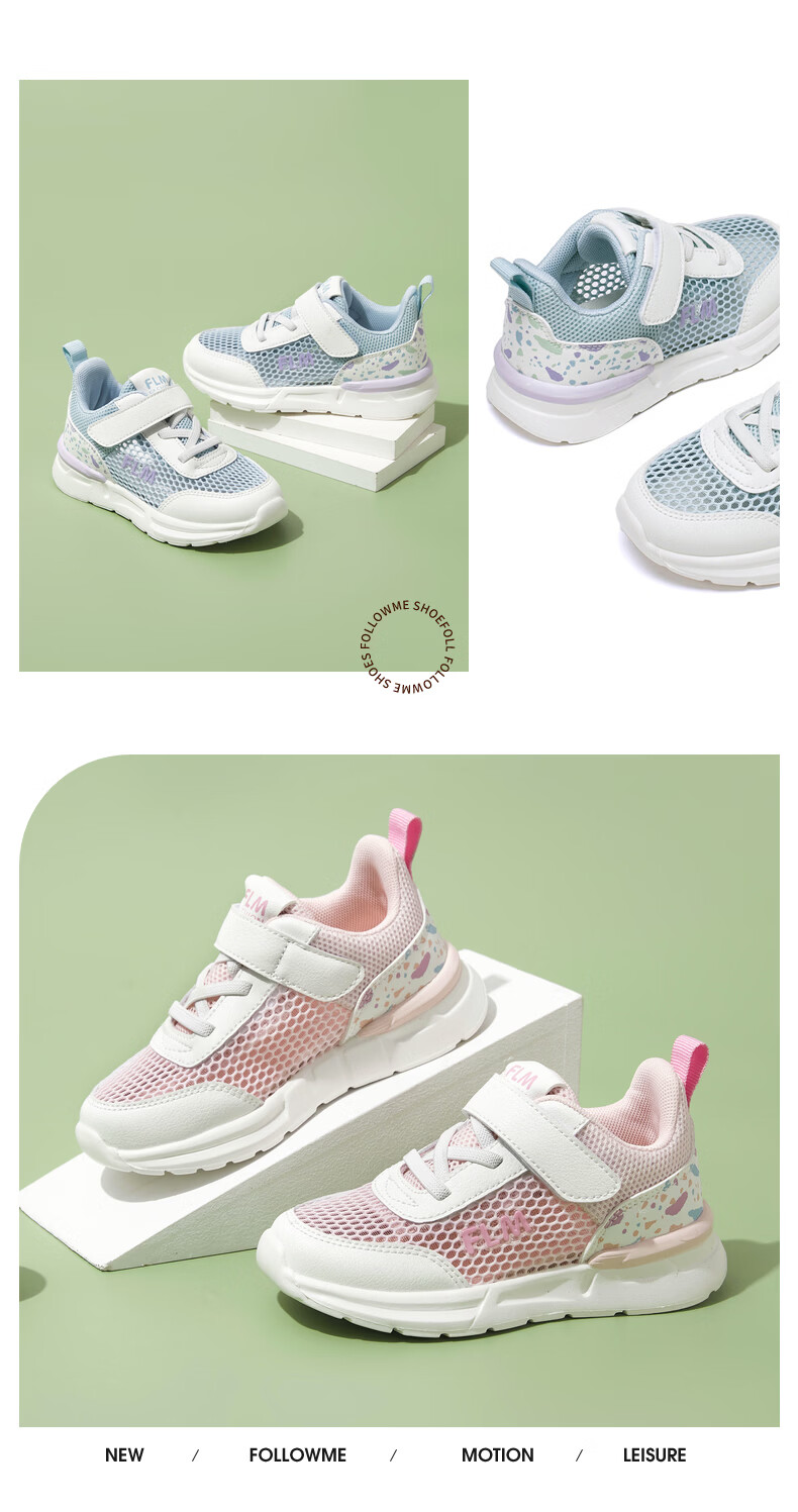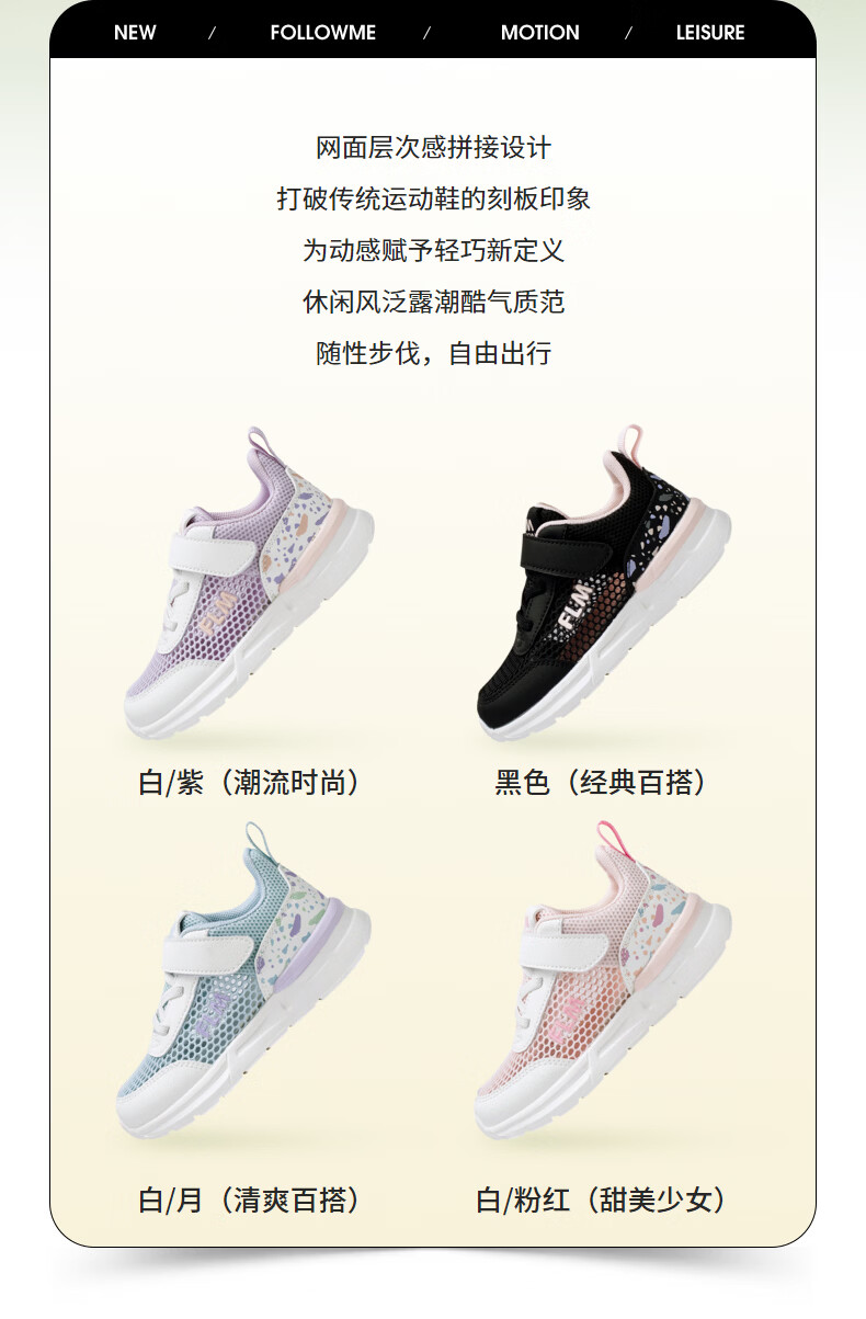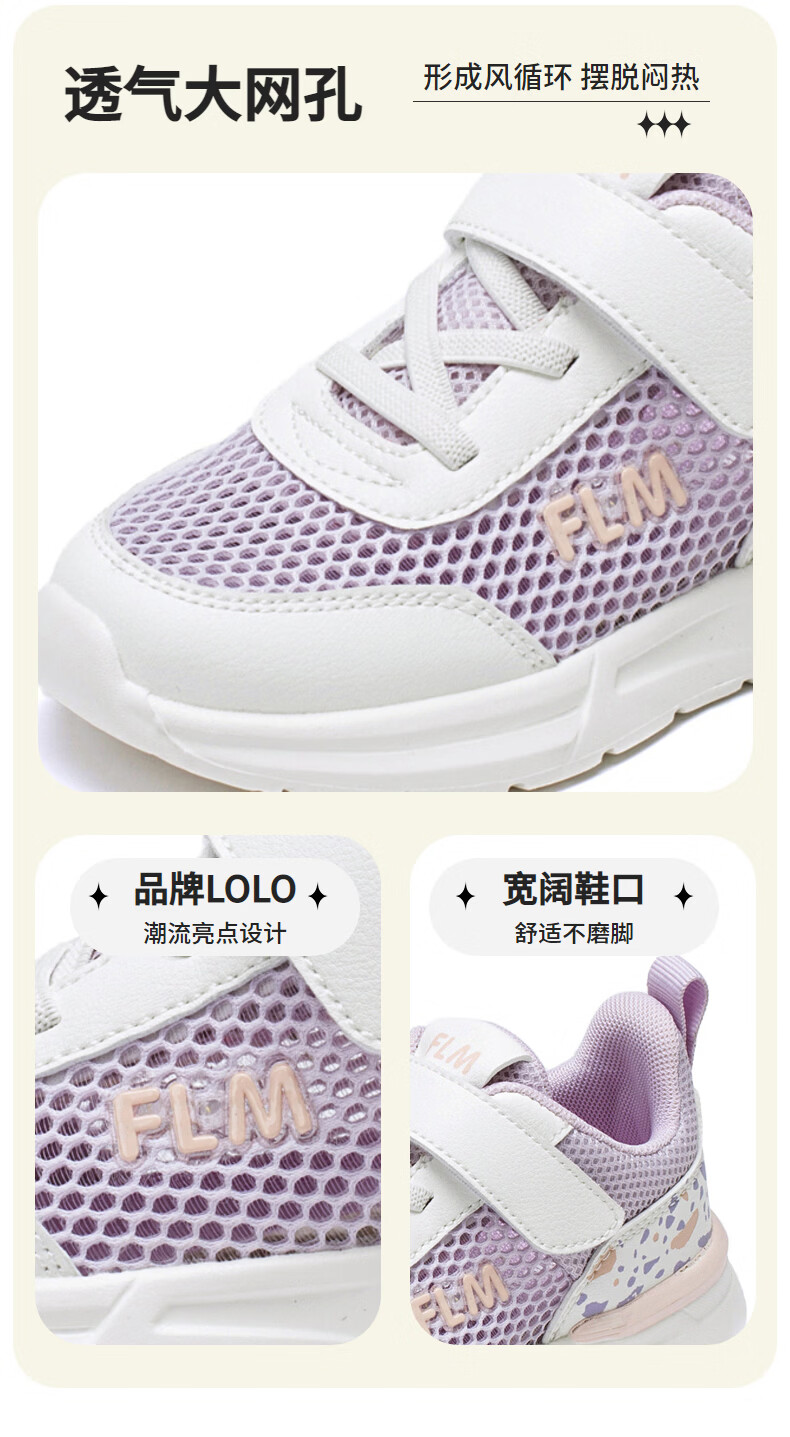 Fuluo Mi Girls' Breathable Mesh Medium and Large Children's Sports and Casual Shoes Comfortable Mesh Running Shoes Versatile Student White Shoes Black 26