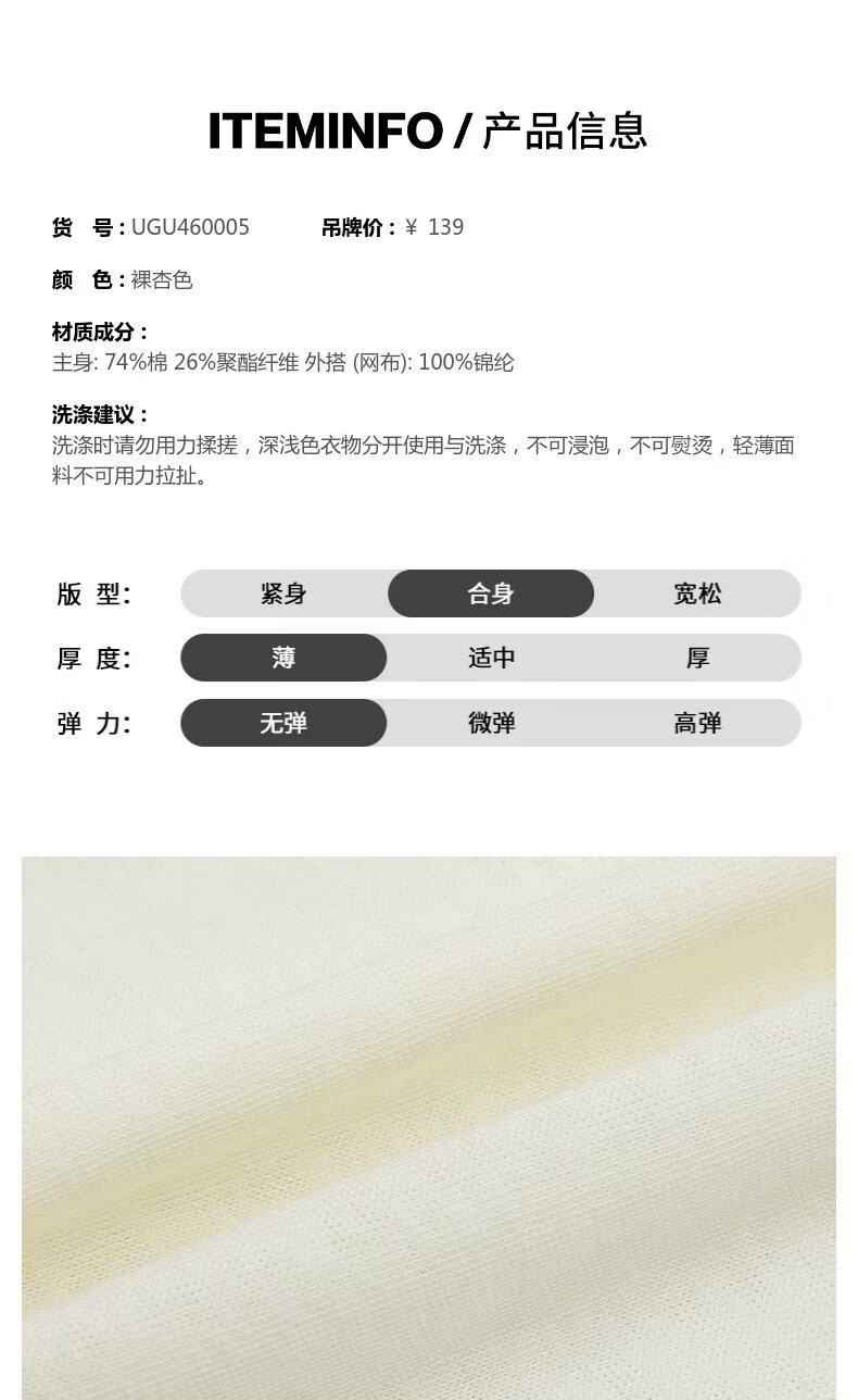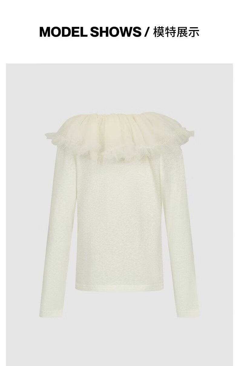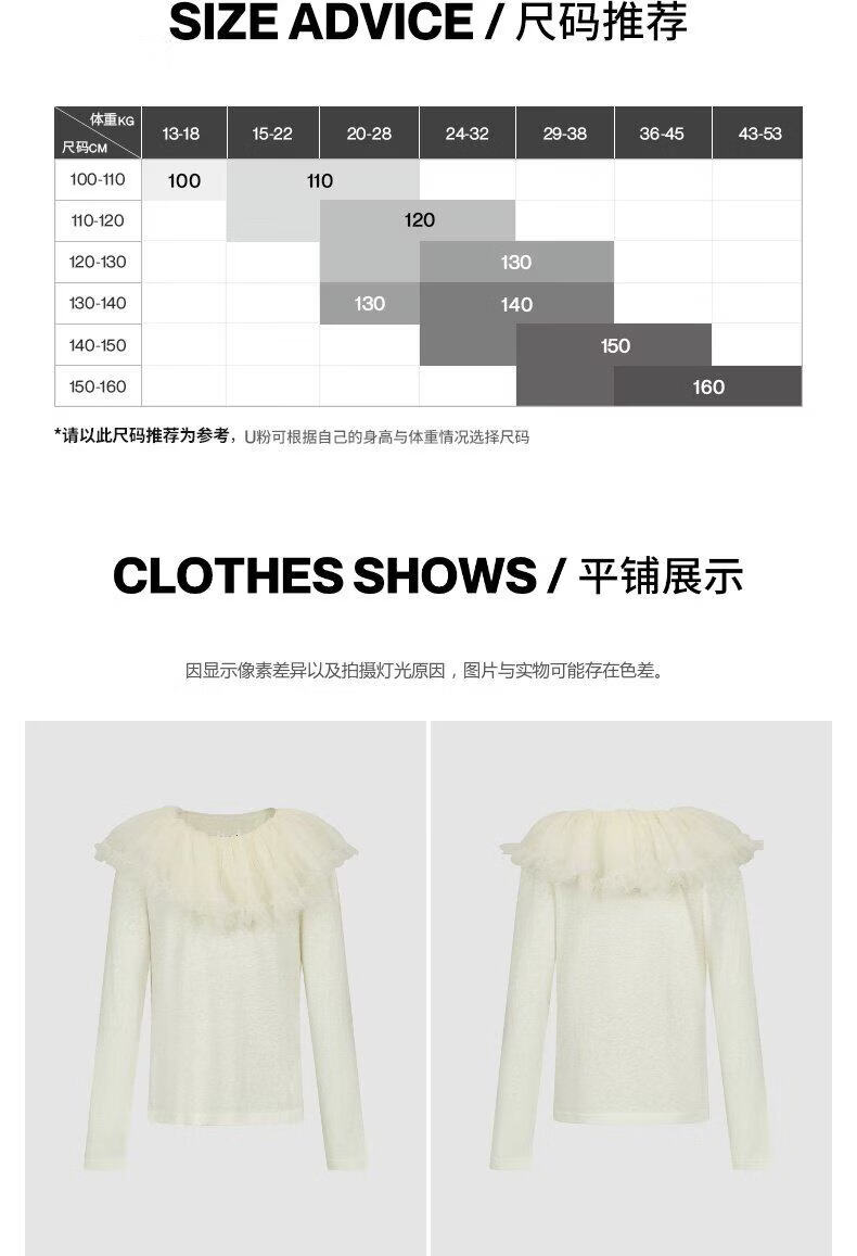UR2026 spring new children's clothing girls urban elegant simple lace gauze collar T-shirt UGU460005 nude apricot 110
