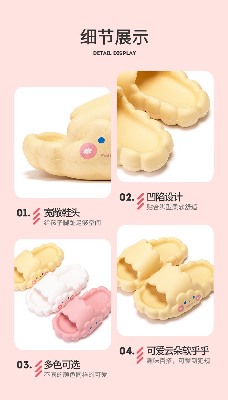 Fuluo Mi Cute Slippers Girls Comfortable Soft Soled Sandals Home Slippers Pink 25