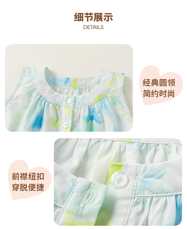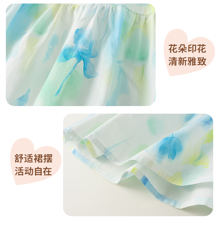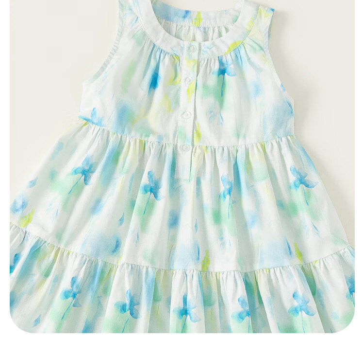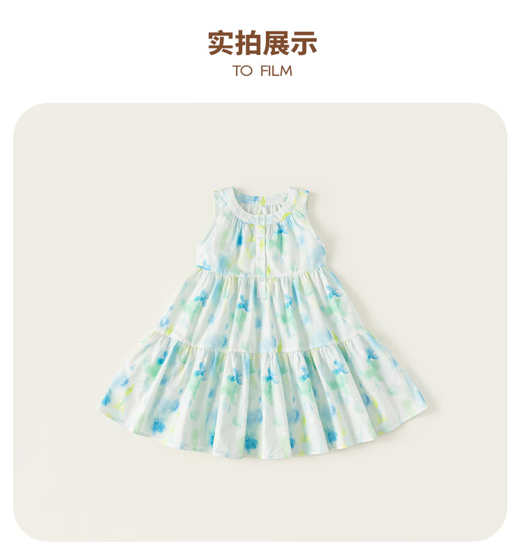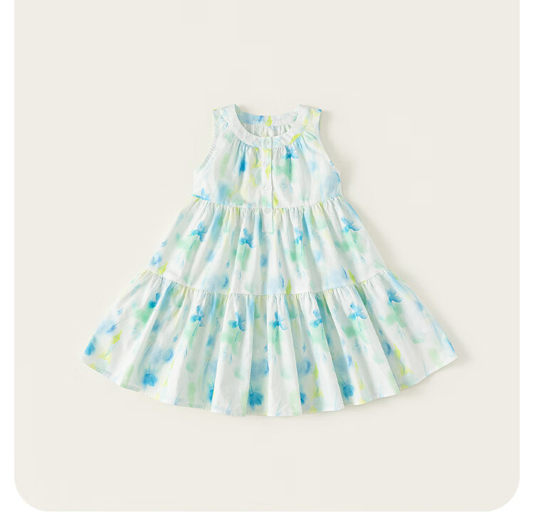 INSBOBO Children's Clothing Girls Dress 2026 Summer New Girls Printed Skirt Children's Tank Top Summer Dress Blue Green 110