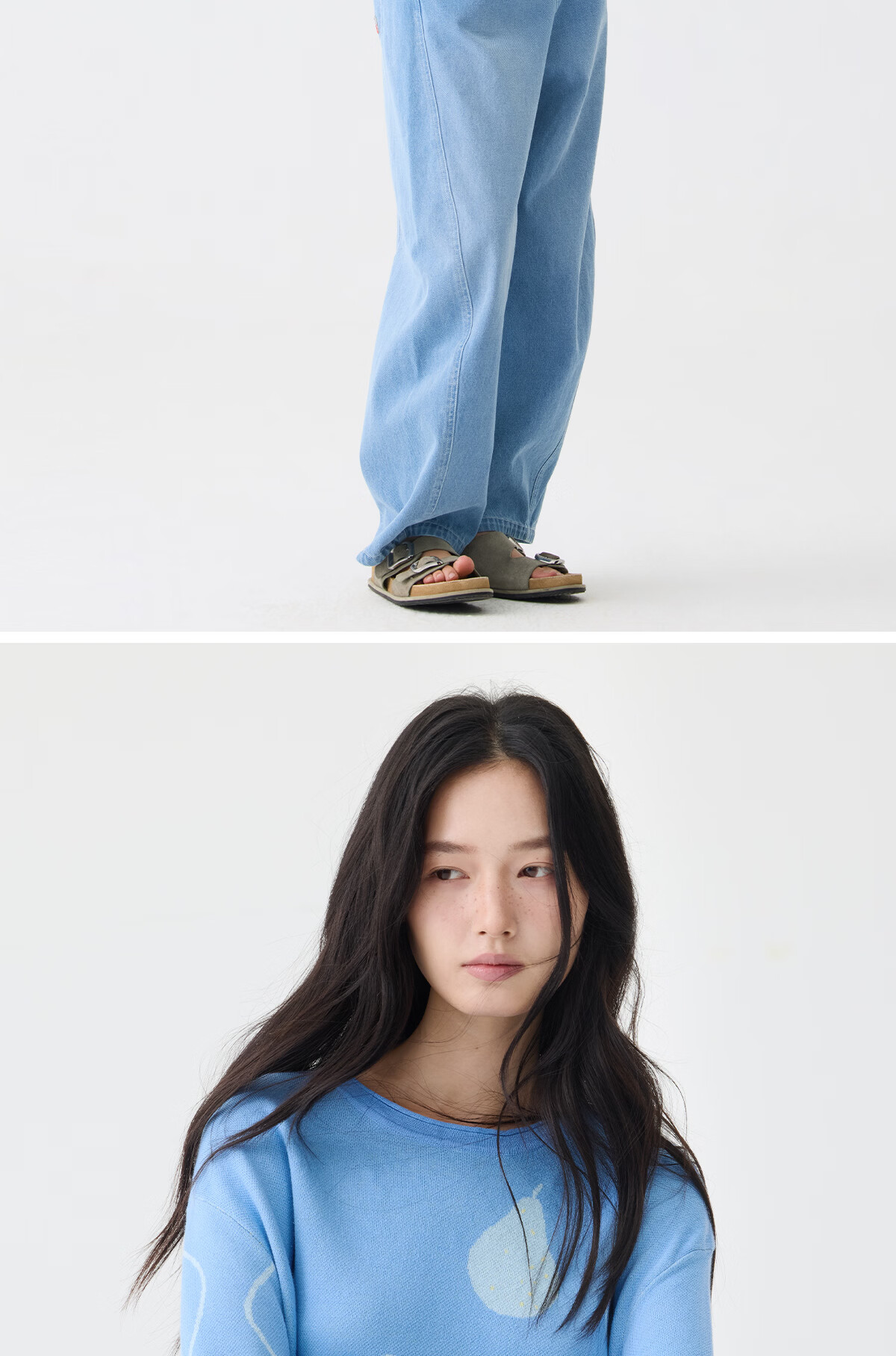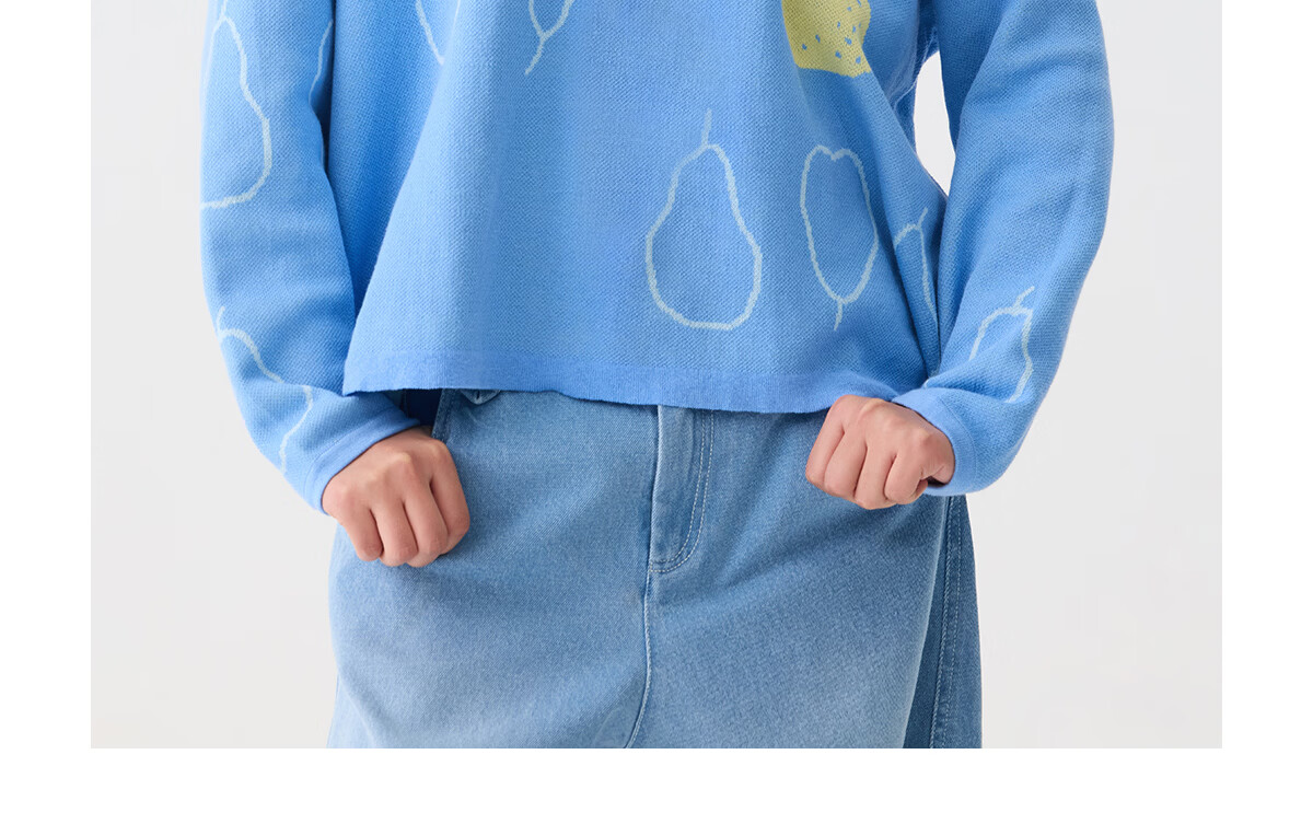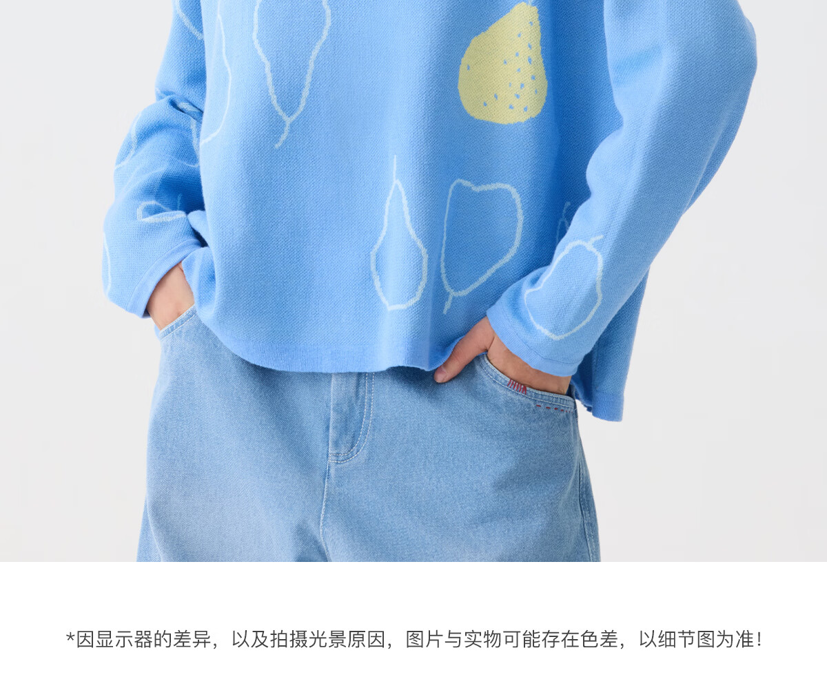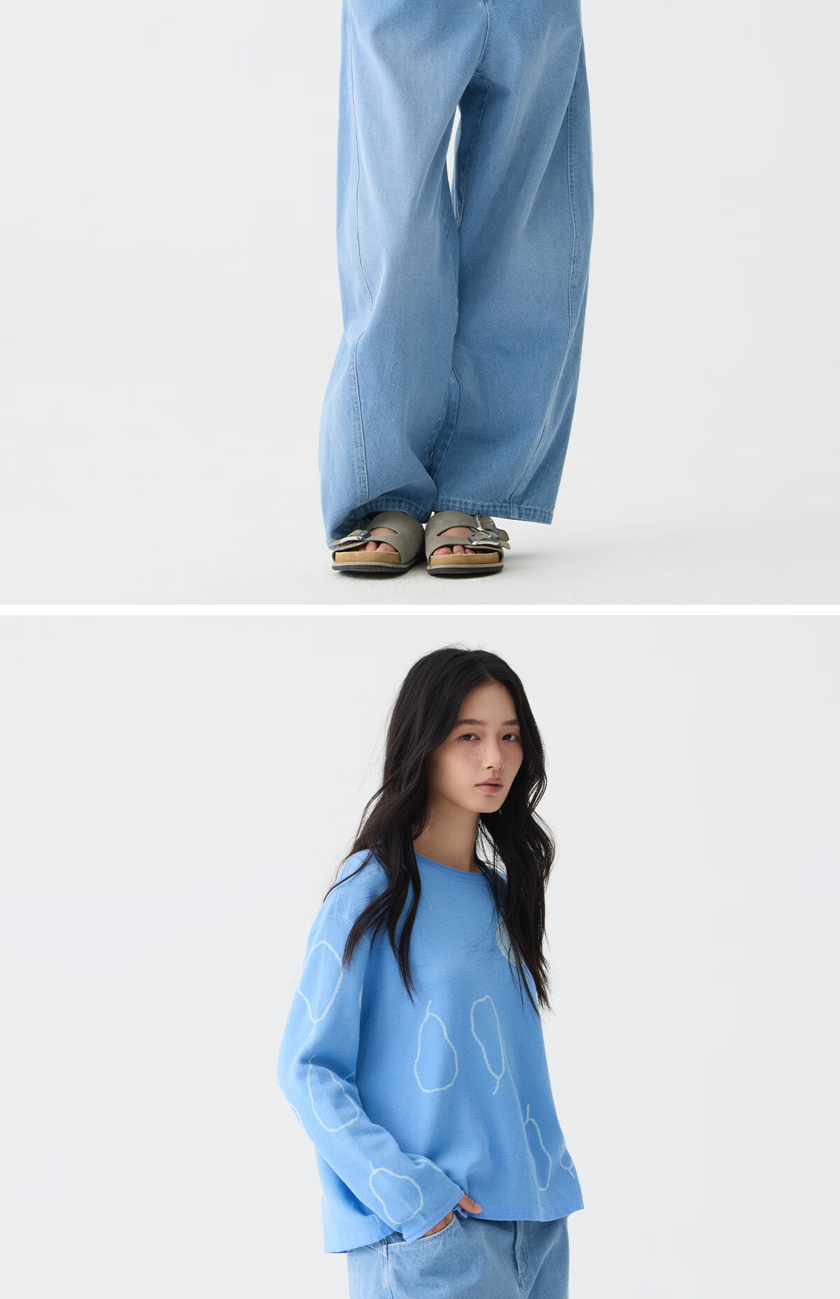 Siqin Siqin 2026 Spring New Lake Blue Cotton and Linen Jacquard Sweater Round Neck Loose Sweater Temperament Women BFCB00948 Lake Blue M