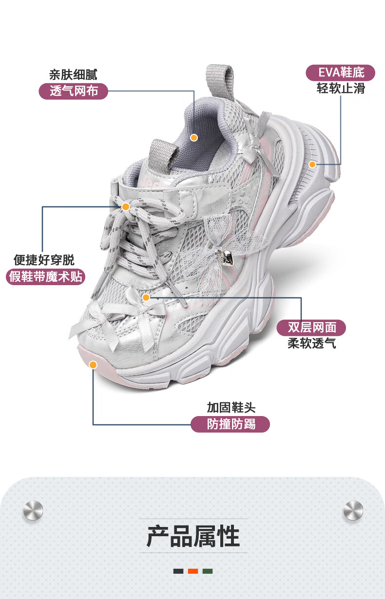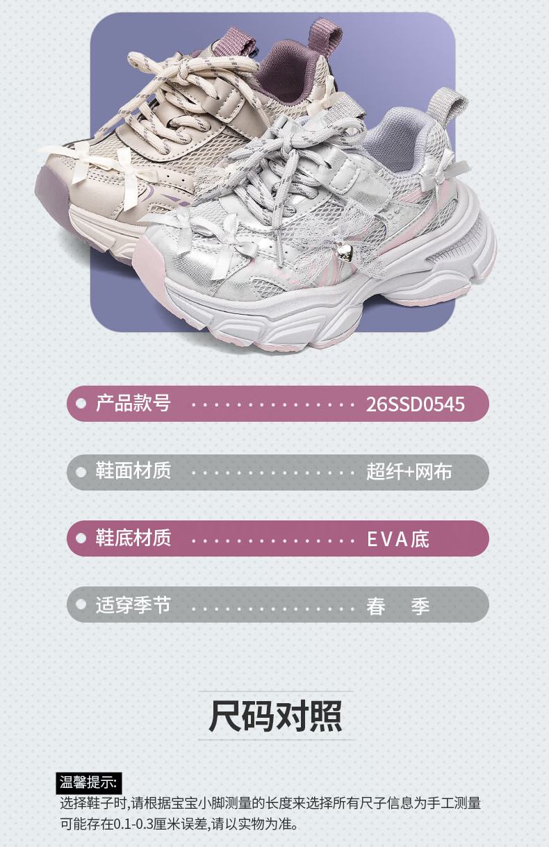 Jeep children's sports shoes 2026 spring new thick-soled dad shoes mesh breathable functional running shoes for boys and girls Mi Purple 26 Shoe inner length 16.6cm
