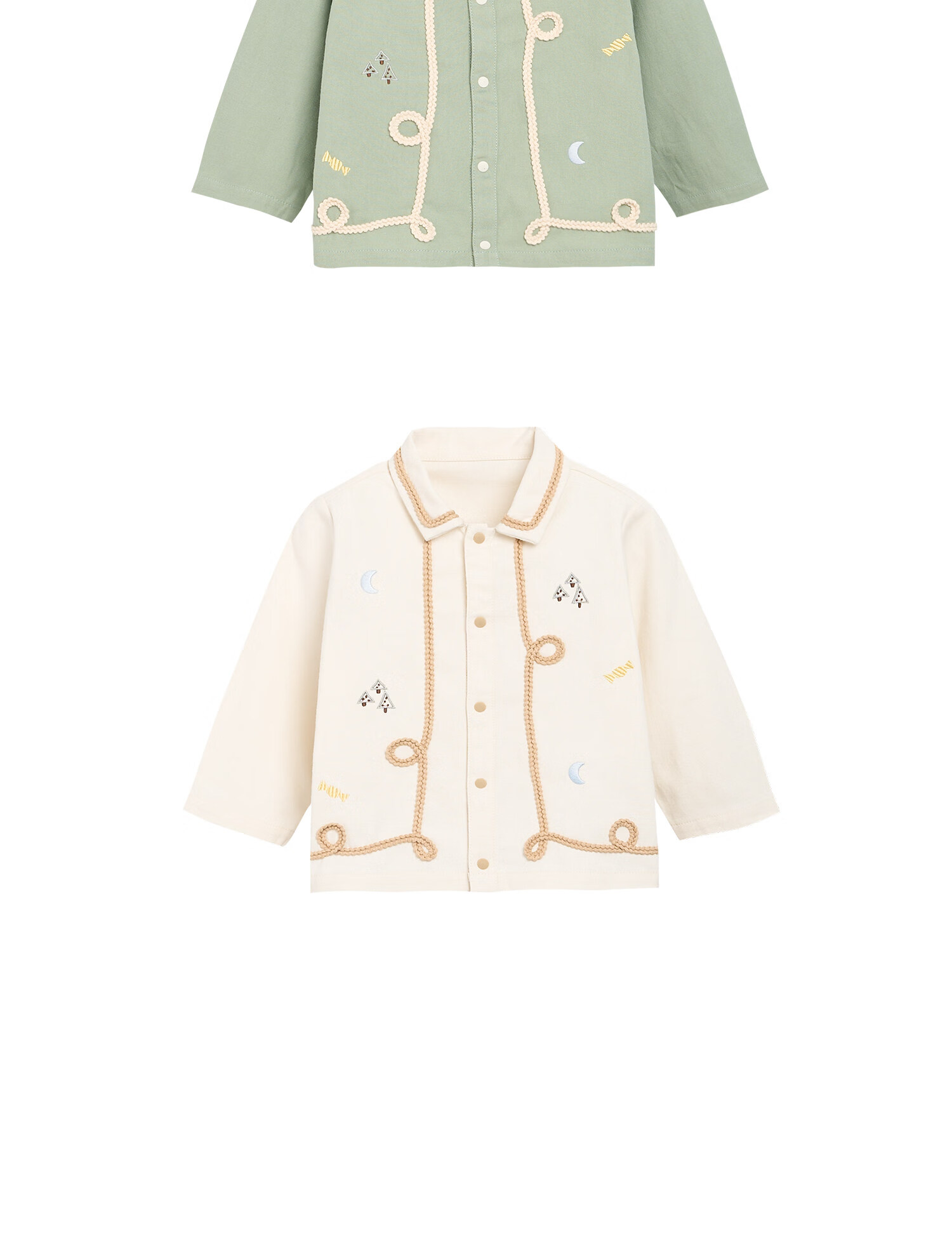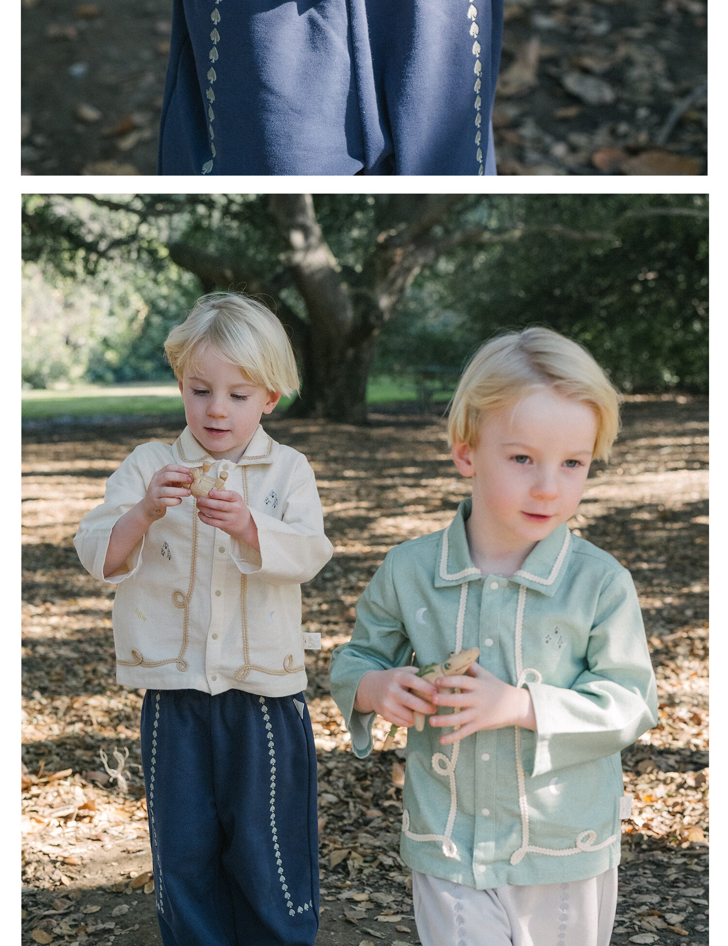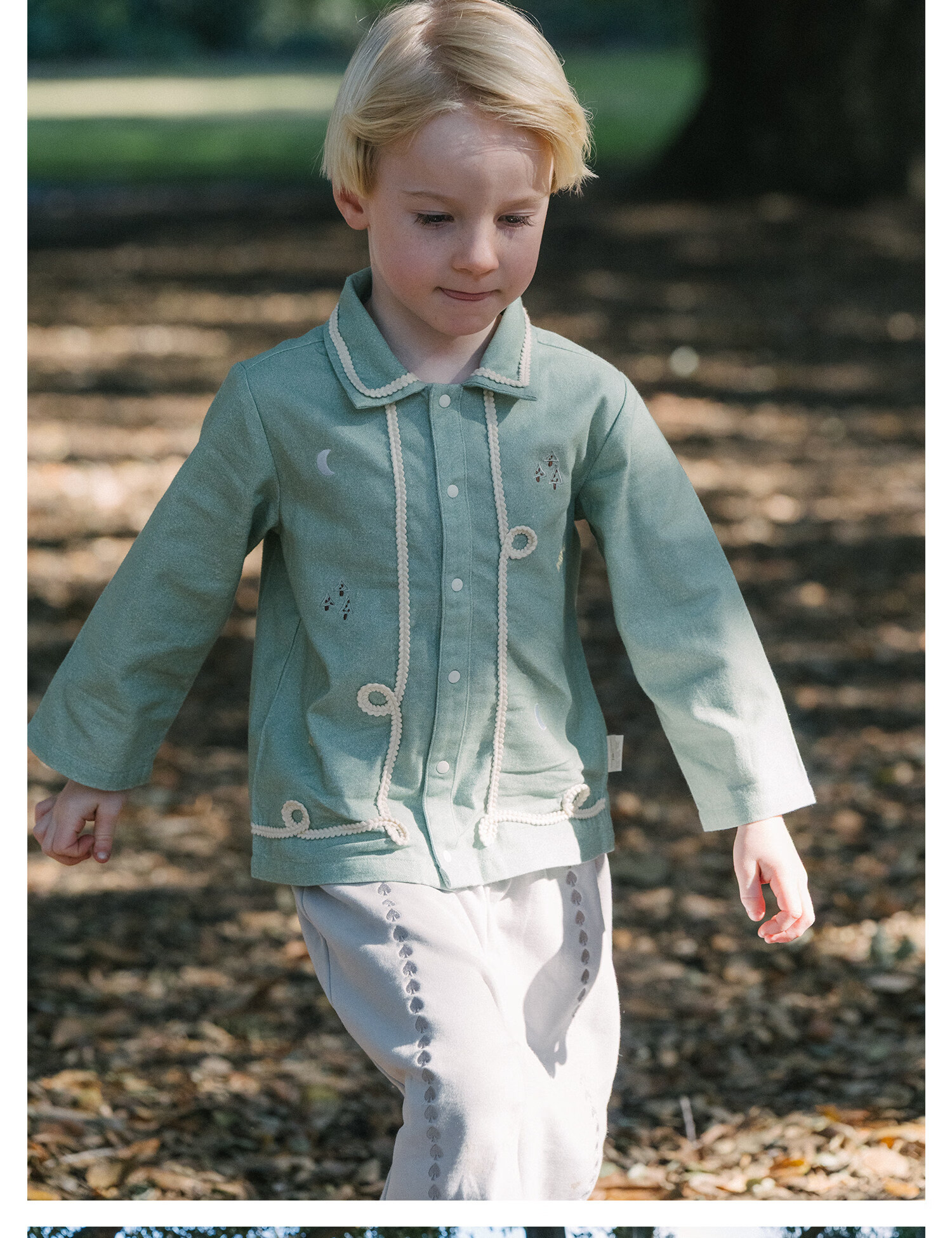 White wheat flannel children's 26 spring new long-sleeved shirt boys and girls pure cotton embroidered shirt blue green 80