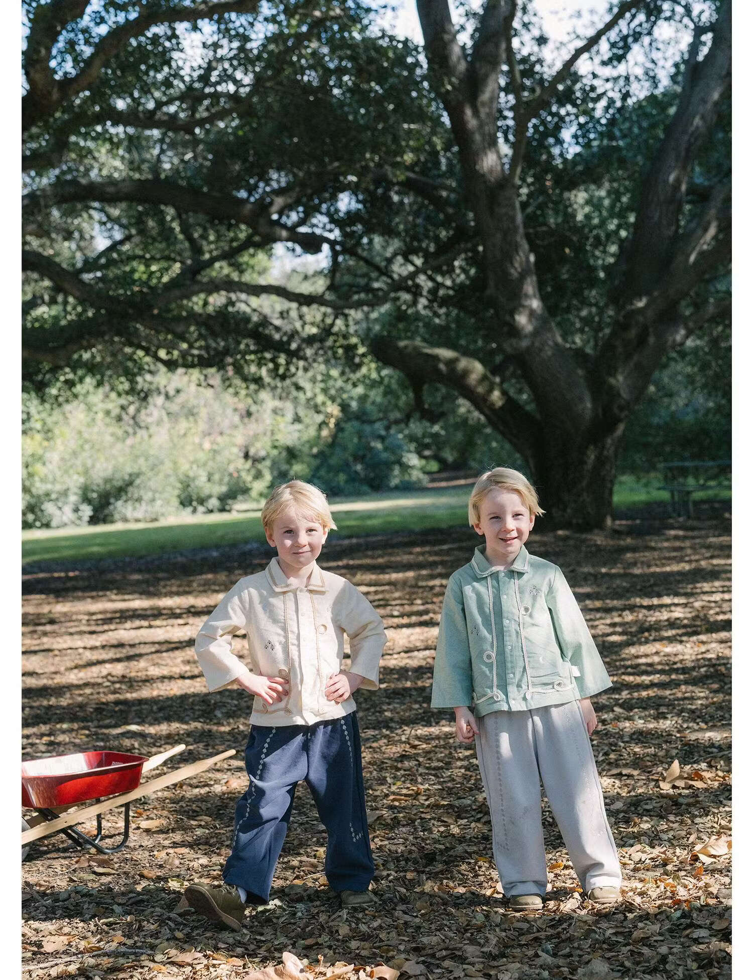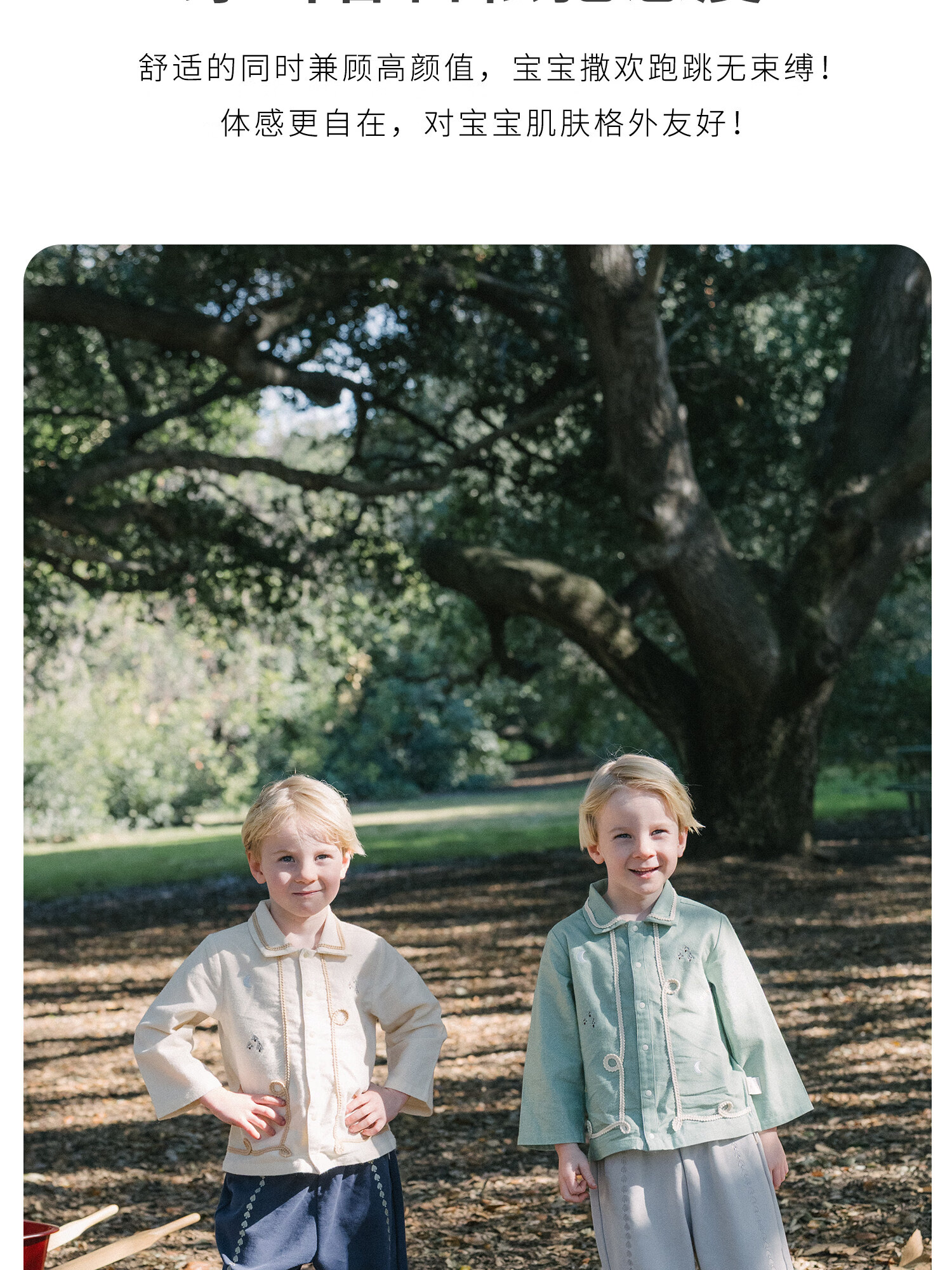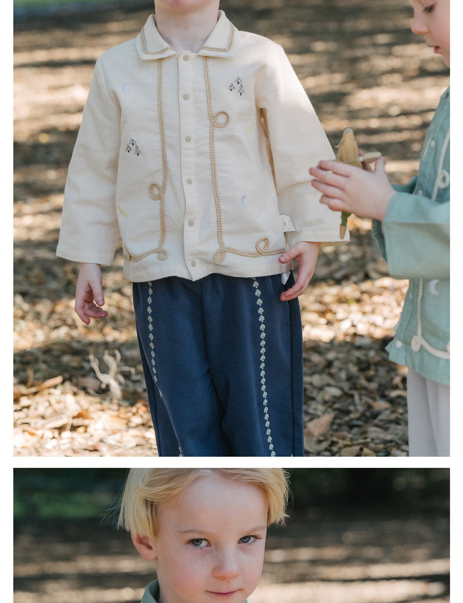 White wheat flannel children's 26 spring new long-sleeved shirt boys and girls pure cotton embroidered shirt blue green 80