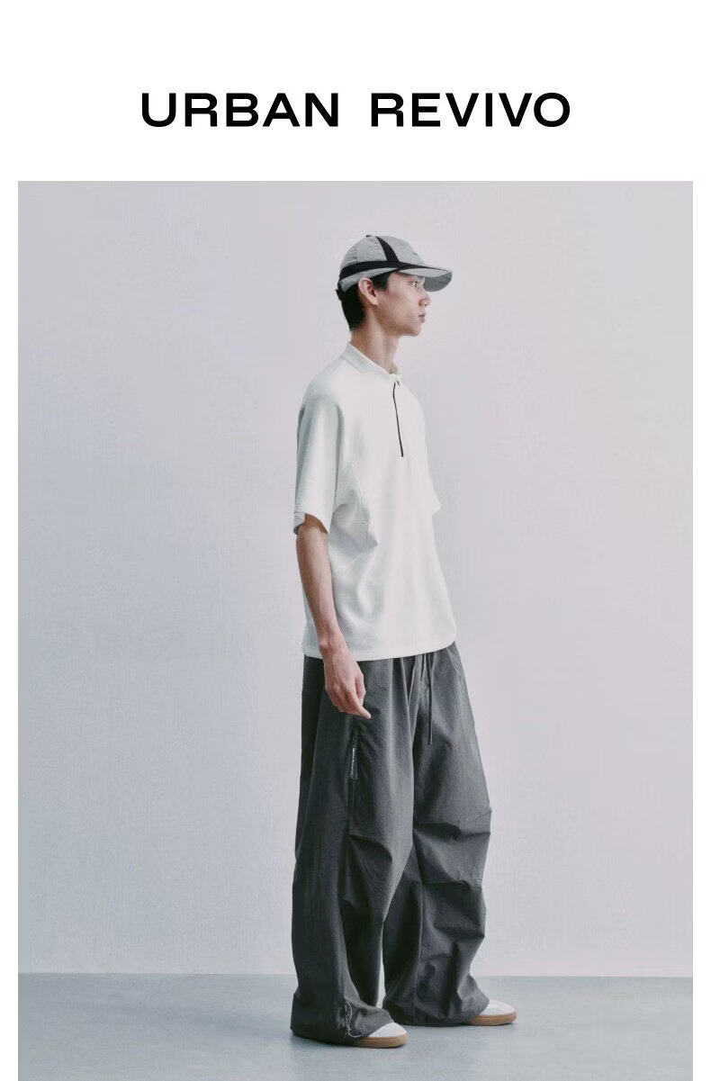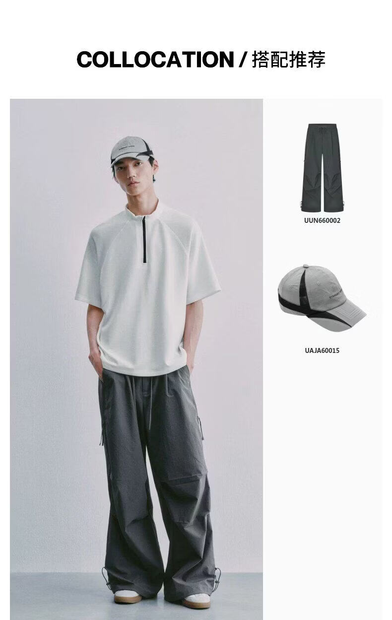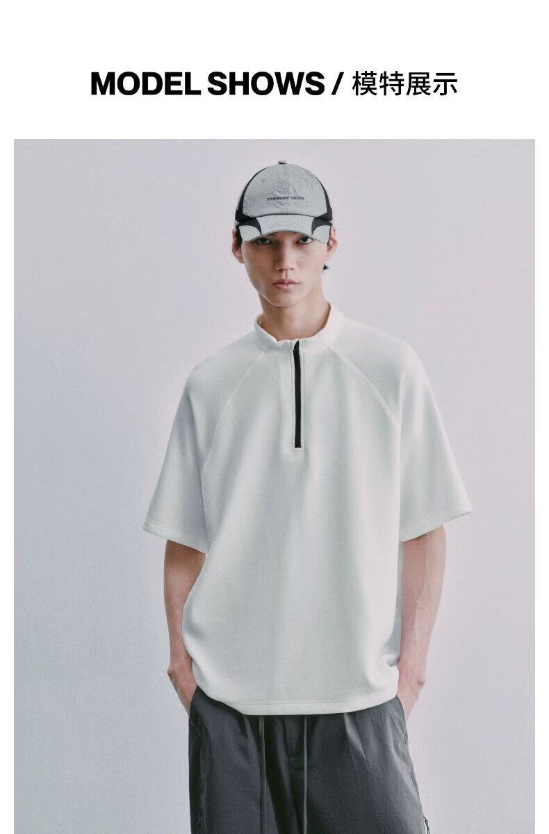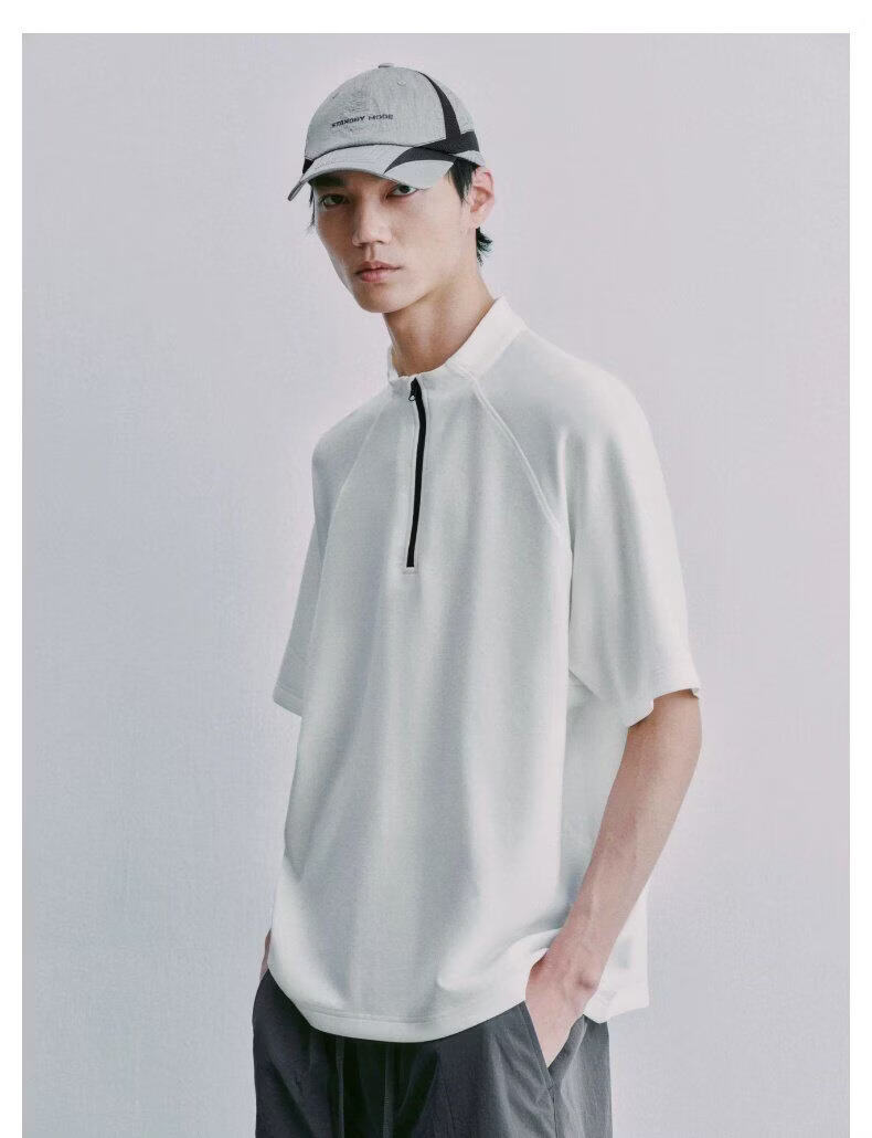 UR2026 Spring New Men's Sports Trendy Spliced Raglan Sleeve Half-Zip T-Shirt UUN460003 Original White L