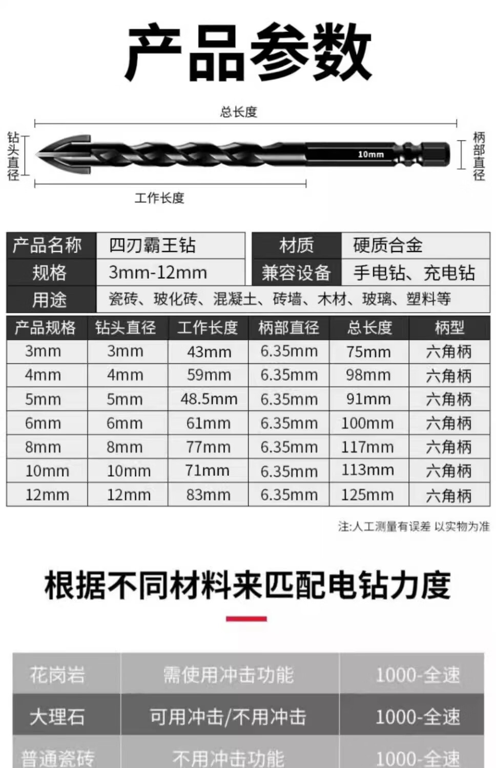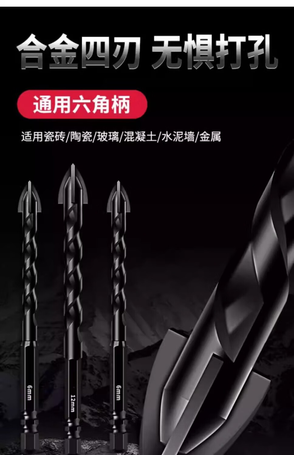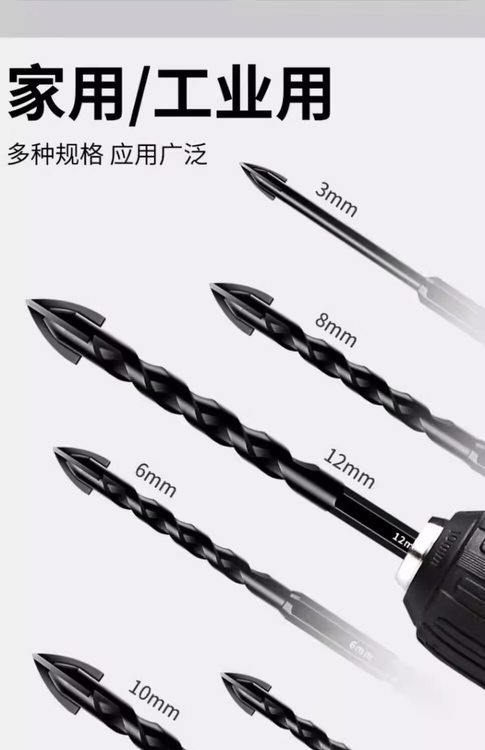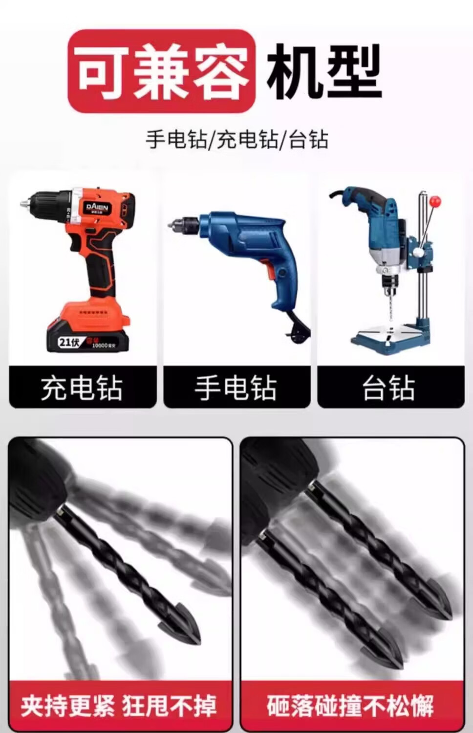 Gobos ceramic tile drilling special four-edged cross diamond alloy triangle cement marble concrete glass 6mm cross drill 2 pieces 6+8mm