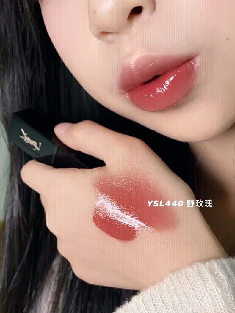 YSL Saint Laurent YSL Black Tube Lip Glaze Love Lip Glaze Matte Lipstick Cosmetics Birthday Gift Love Lip Glaze 440 Wild Rose Color Gift Box