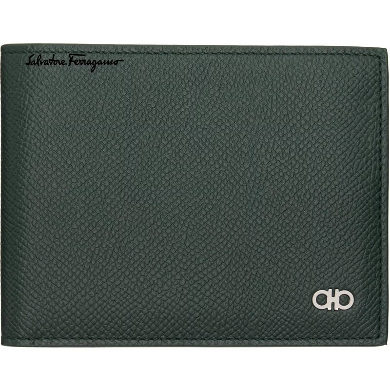 Ferragamo Luxury Men's Green GANCINI Wallet Moss Green One Size