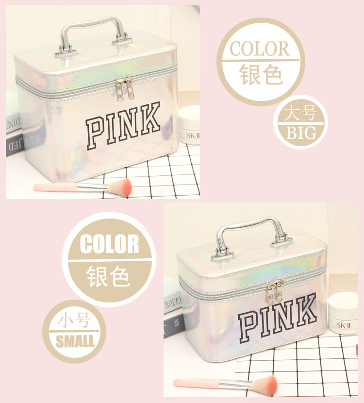 Portable makeup ins trend super popular cute female hand storage box product capacity box makeup box internet celebrity temperament single layer PK silver