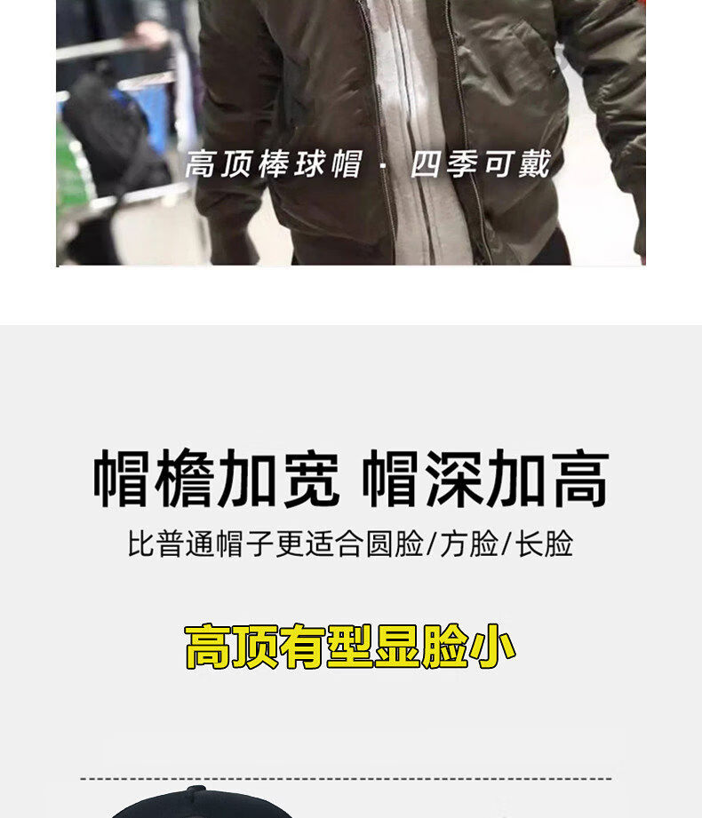 Jeff's Hat Men's High Top Stylish Face-Revealing Small Ball Cap Head Waist Trendy Brand Spring and Autumn Wide Brim Peaked Hat Hard Top Black Black Label One Size Standard Size 5560cm