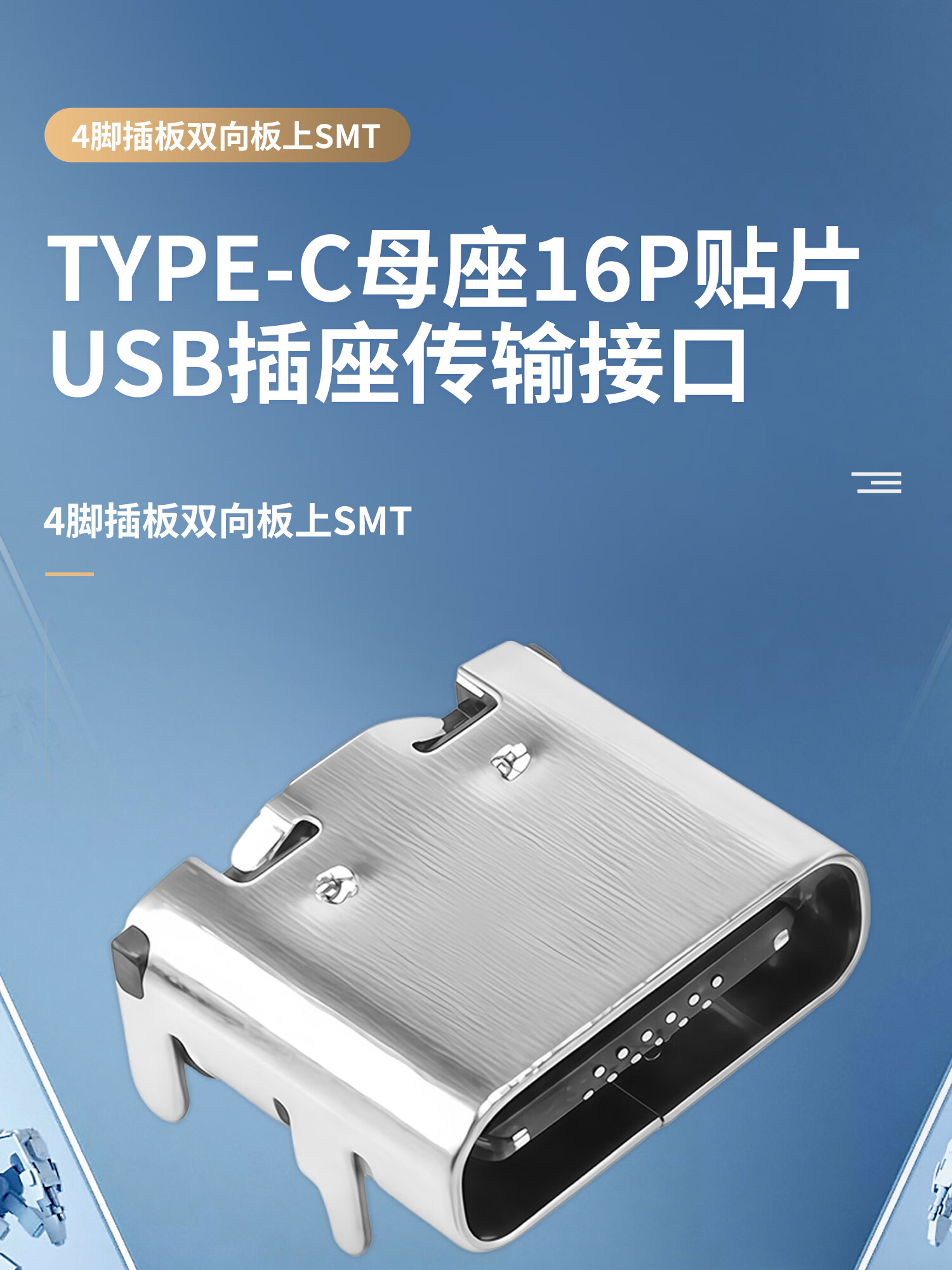 USBDM Type-c female base 16P patch USB connector socket HD transmission interface 4-pin plug-in board two-way board SMT suitable for mobile phone and tablet digital device repair Typec base-16P tape installation stainless steel shell without shrapnel