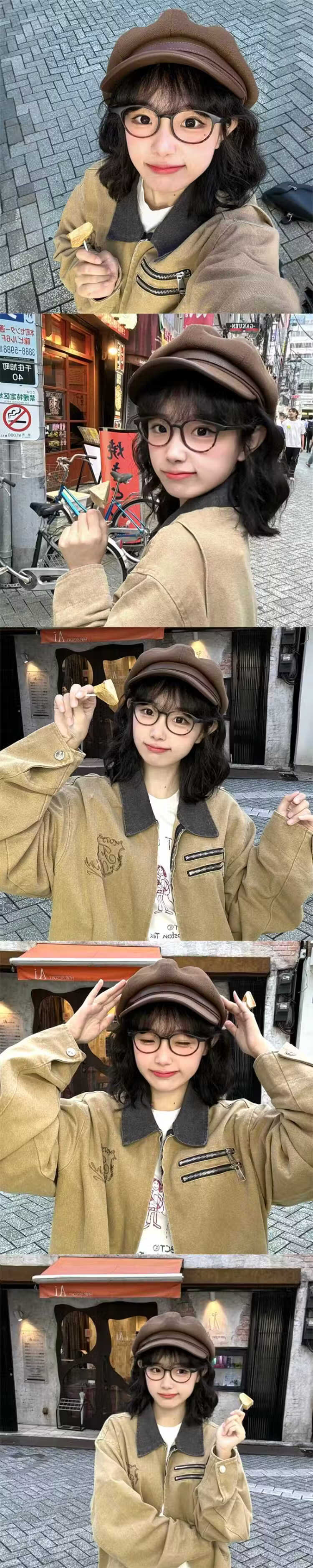 Tokishima beret women's peaked cap women's summer thin large head circumference ladies cute high-looking octagonal hat literary and artistic coffee color one size fits all adjustable