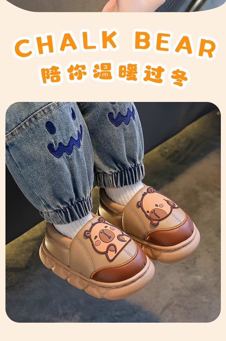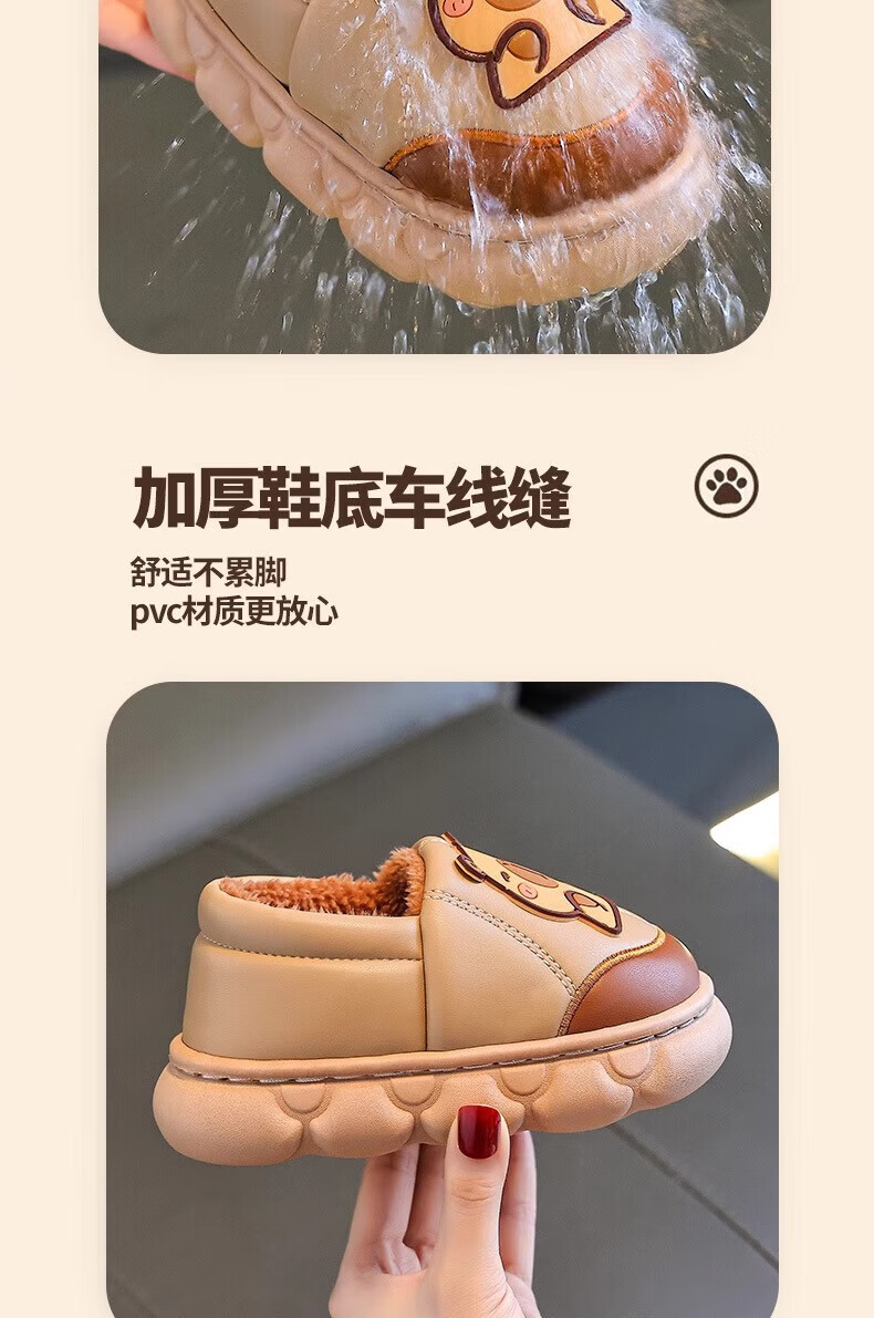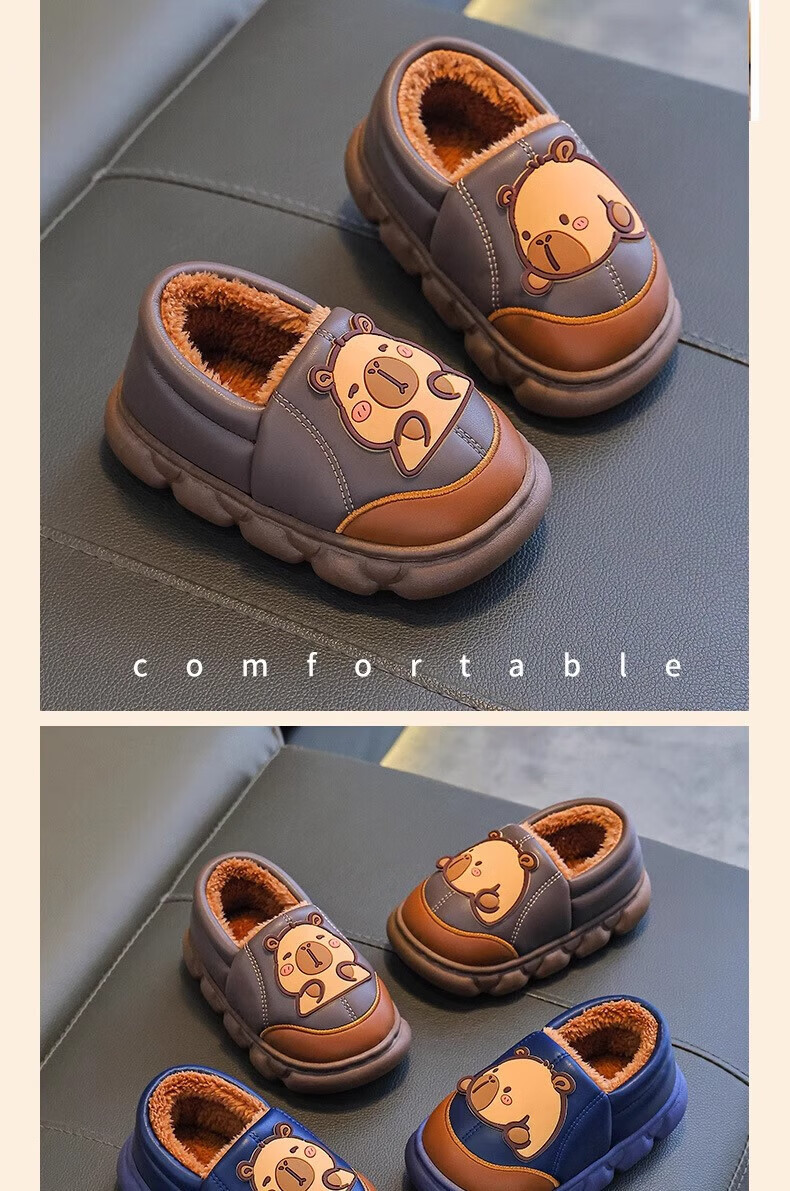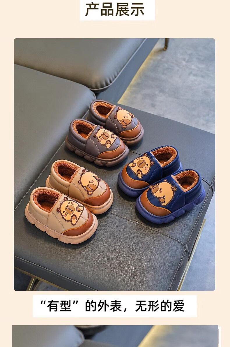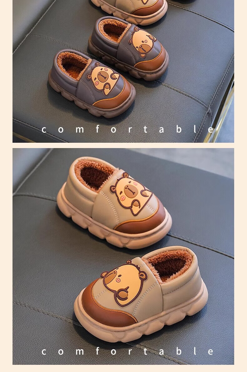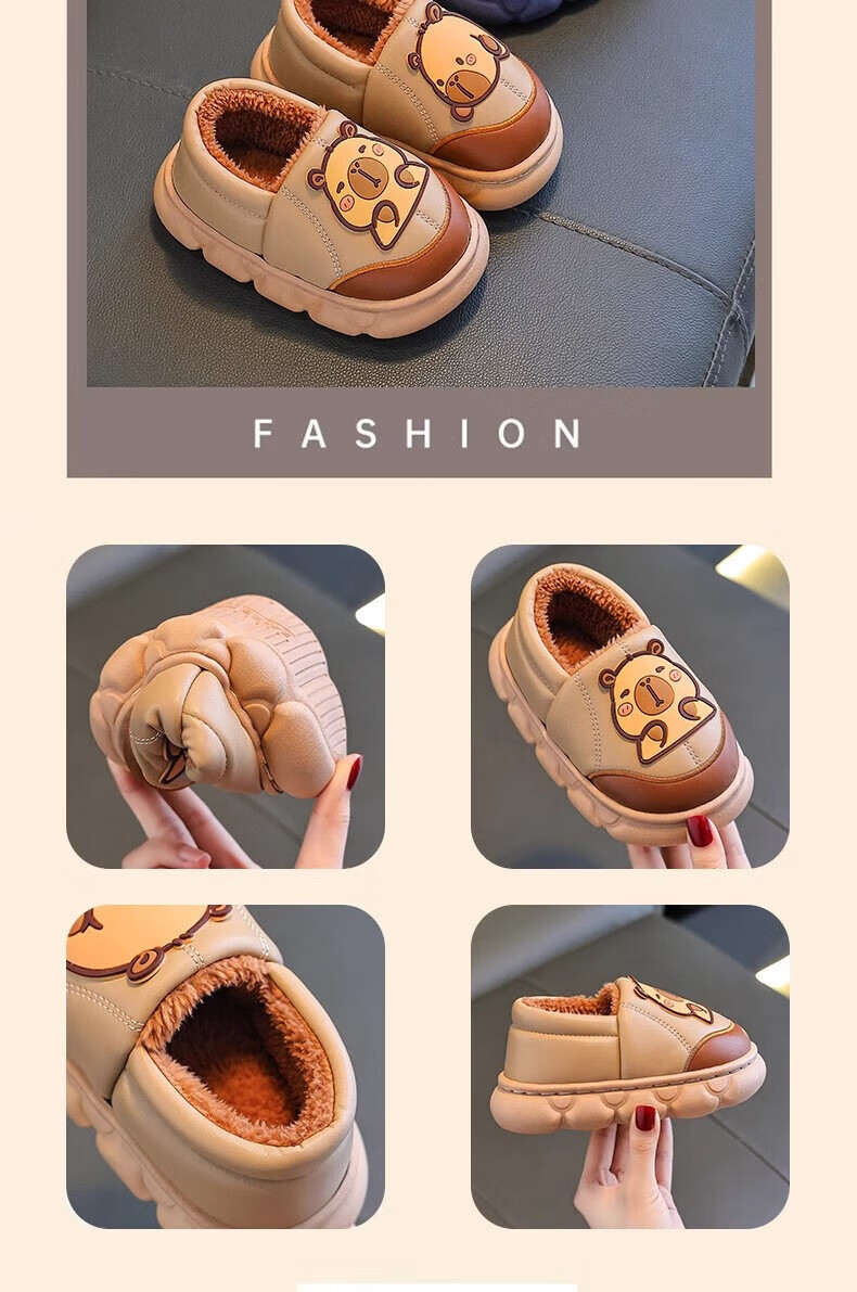 Shiniao Kapibala Children's Cotton Slippers Autumn and Winter Warm Plus Velvet Baby Boys and Girls Indoor Non-Slip Waterproof Slippers Light Coffee (Heel) 24.5 (Shoe Inner Length 15CM Suitable for Foot Length 14CM)