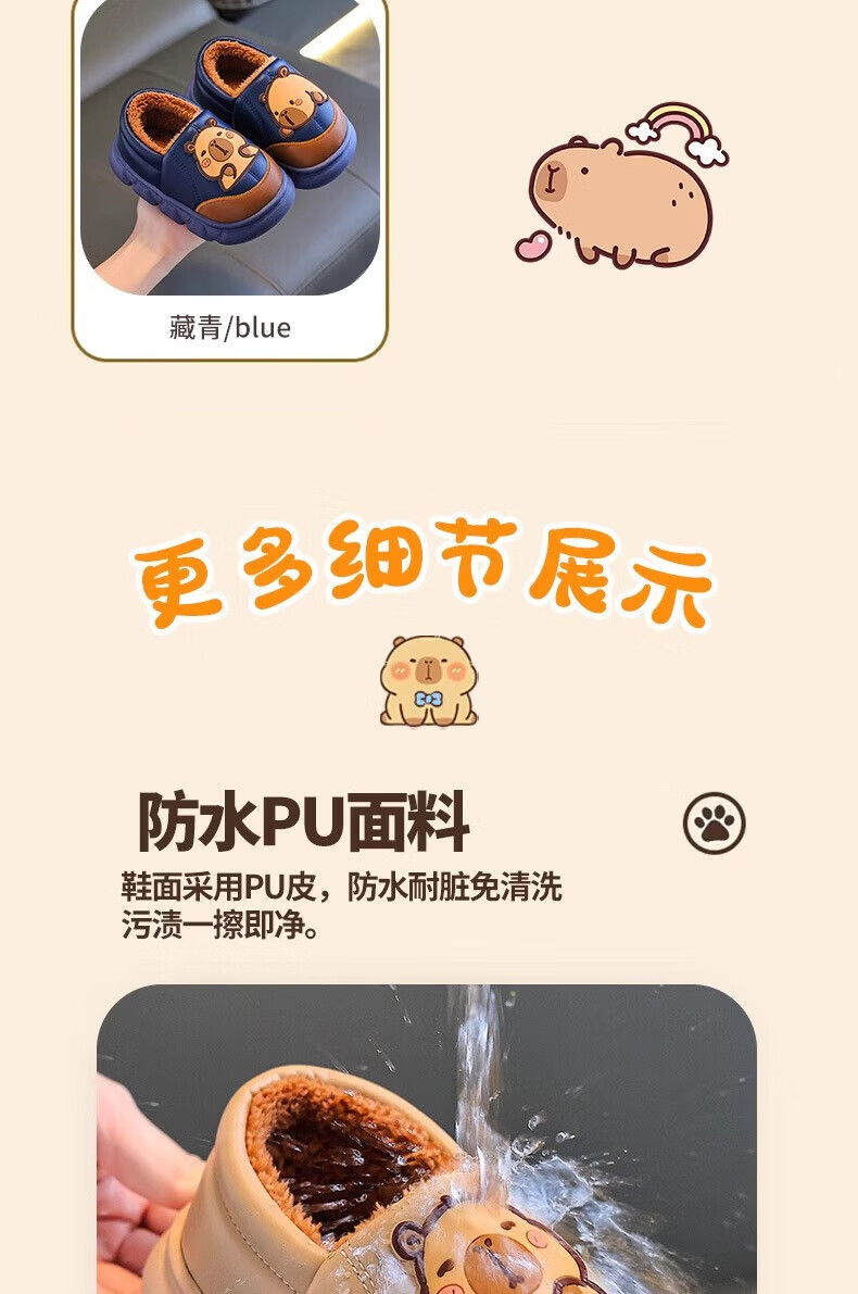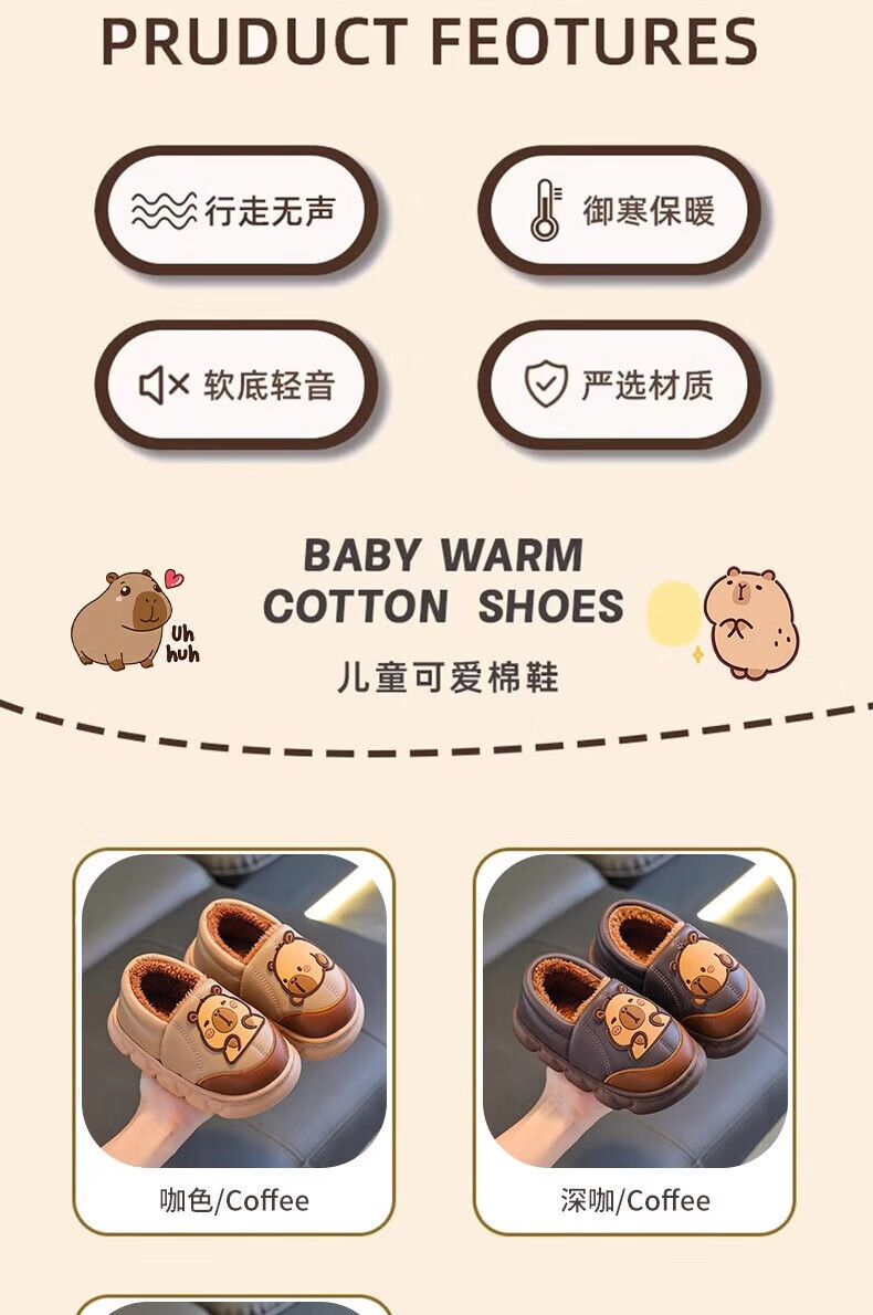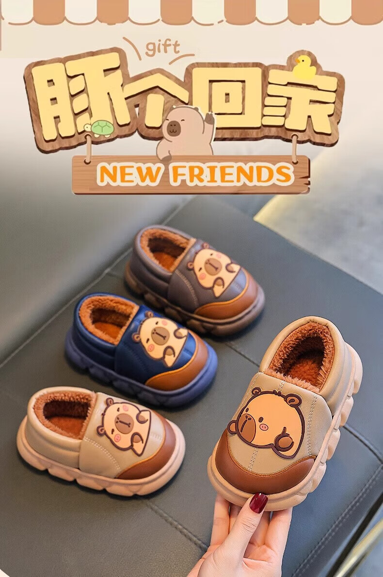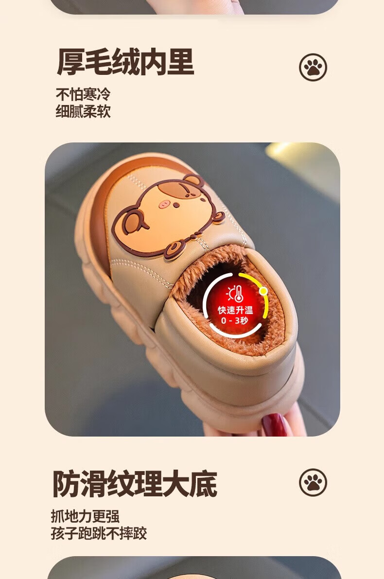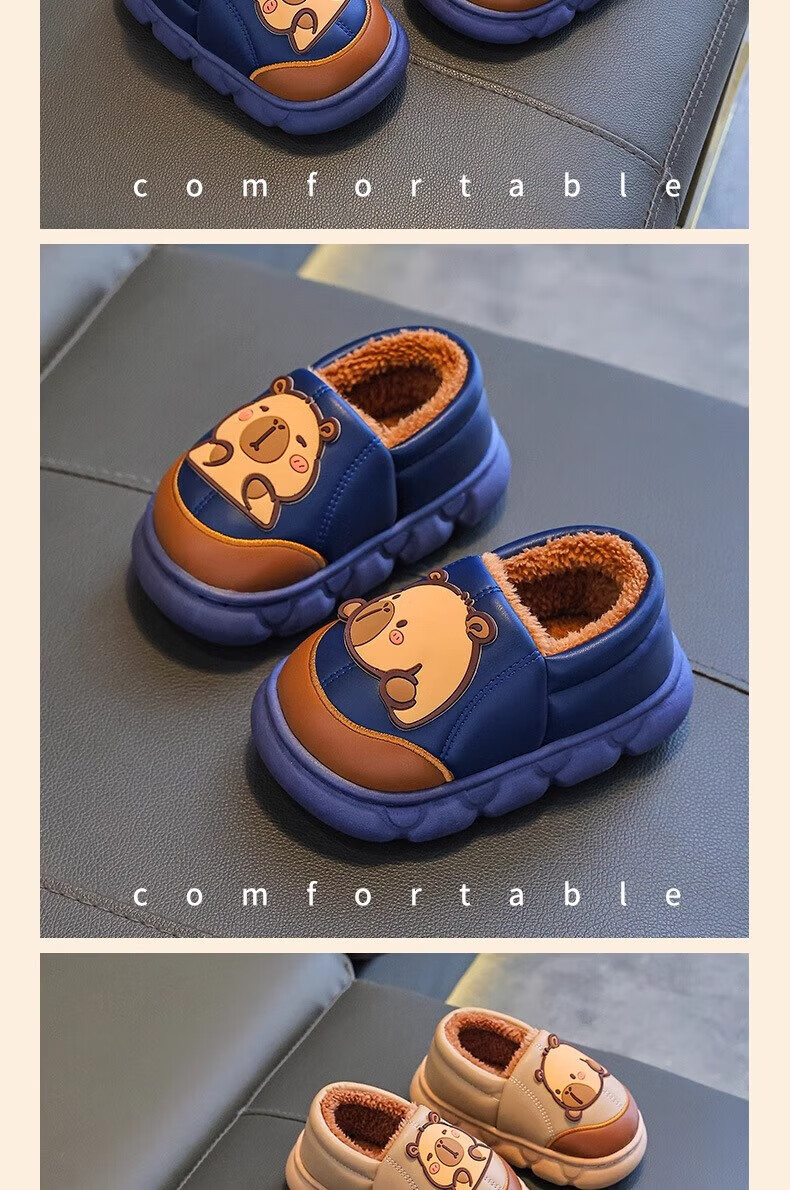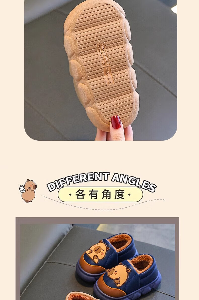 Shiniao Kapibala Children's Cotton Slippers Autumn and Winter Warm Plus Velvet Baby Boys and Girls Indoor Non-Slip Waterproof Slippers Light Coffee (Heel) 24.5 (Shoe Inner Length 15CM Suitable for Foot Length 14CM)