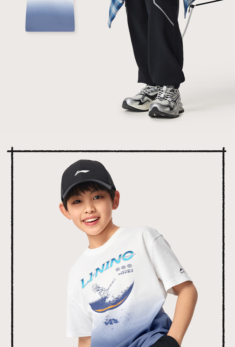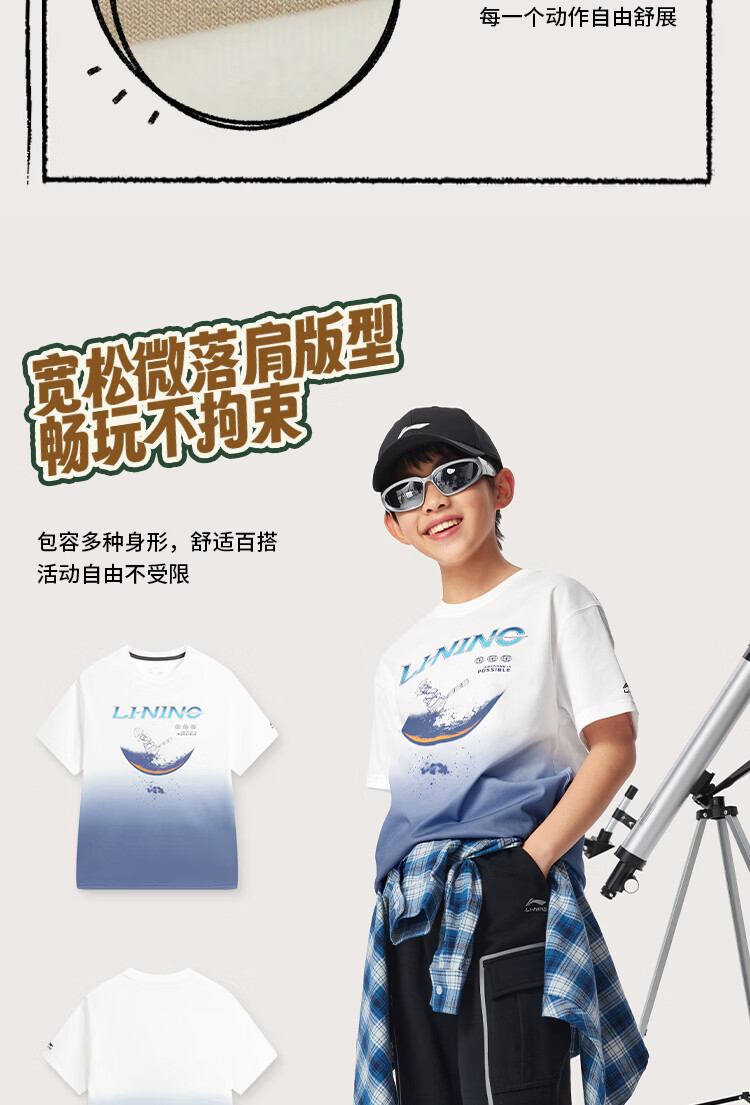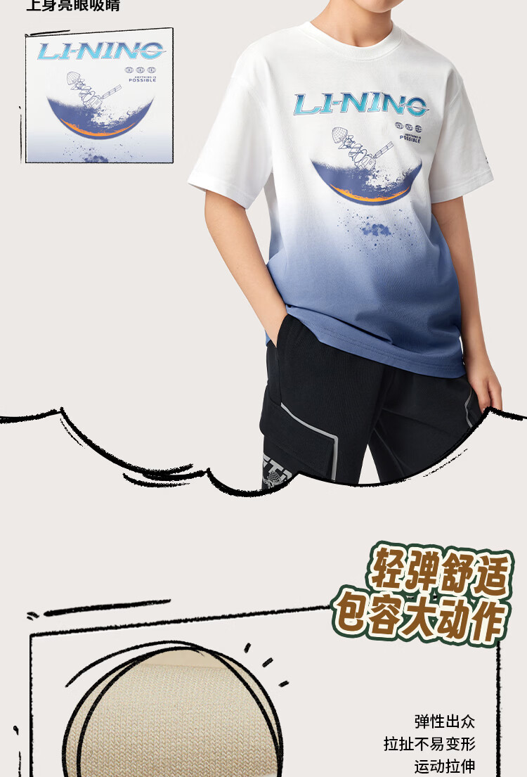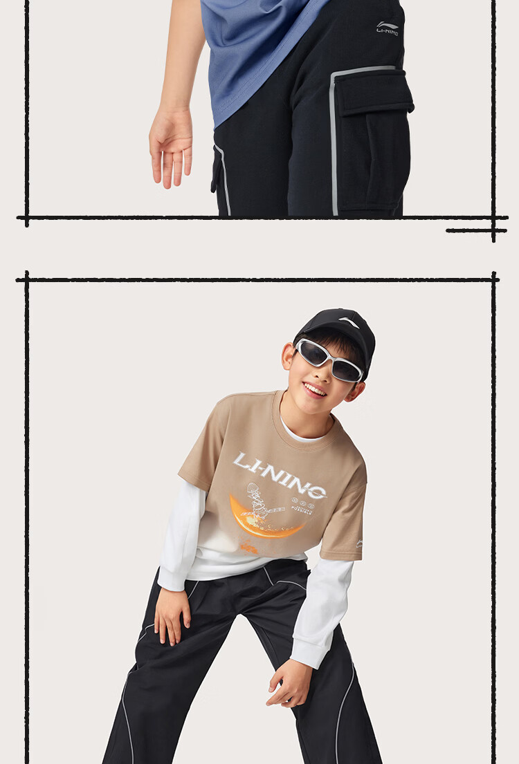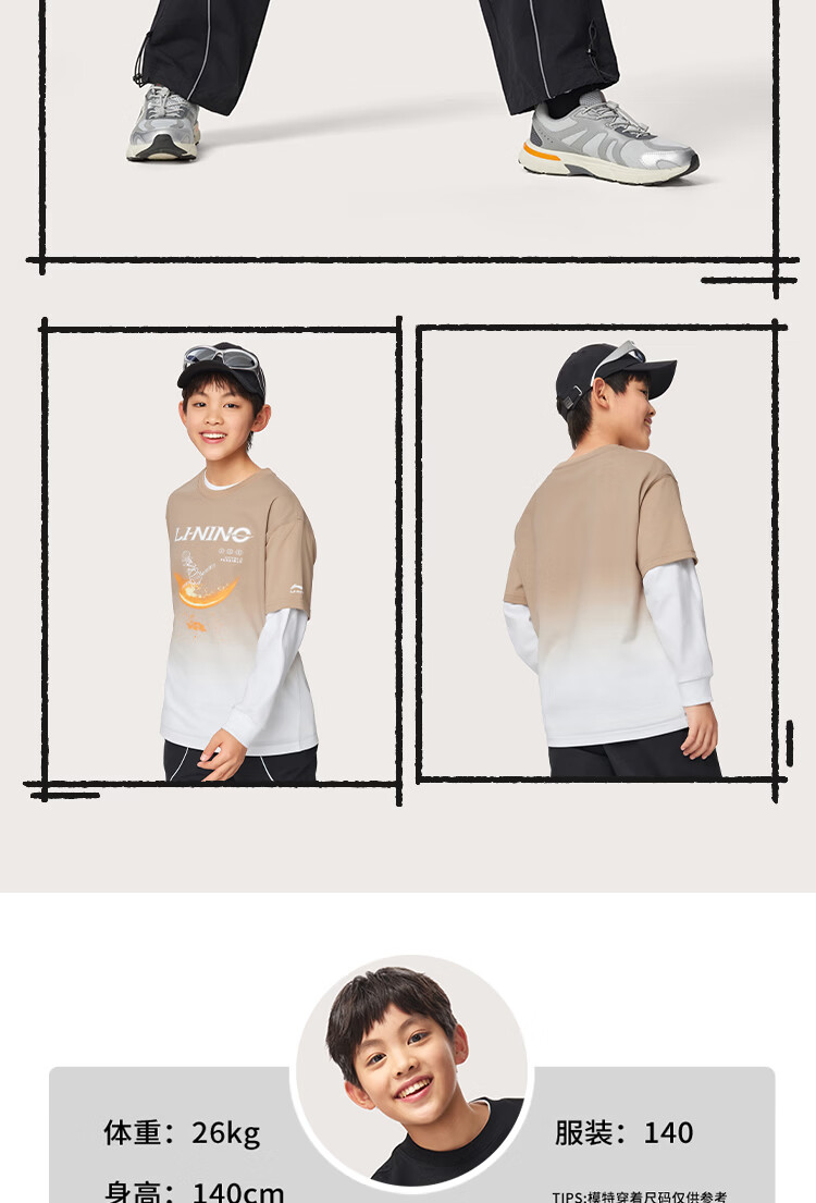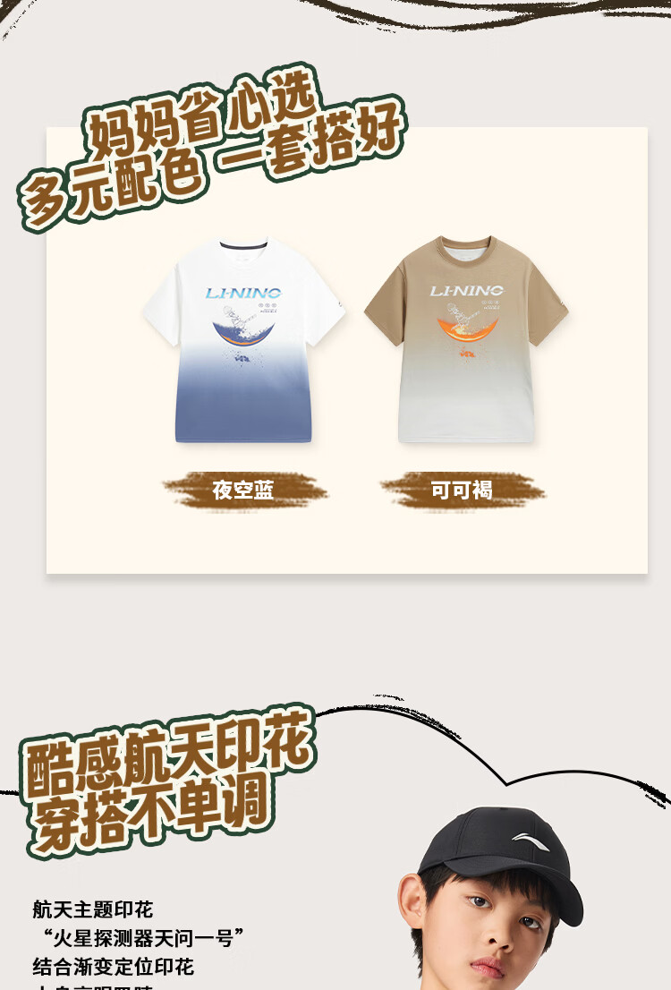 Li Ning children's clothing children's short-sleeved T-shirt for men and women, small and big children, cool, breathable, skin-friendly and comfortable vest cultural shirt YHSW179 Coco Brown-2 110
