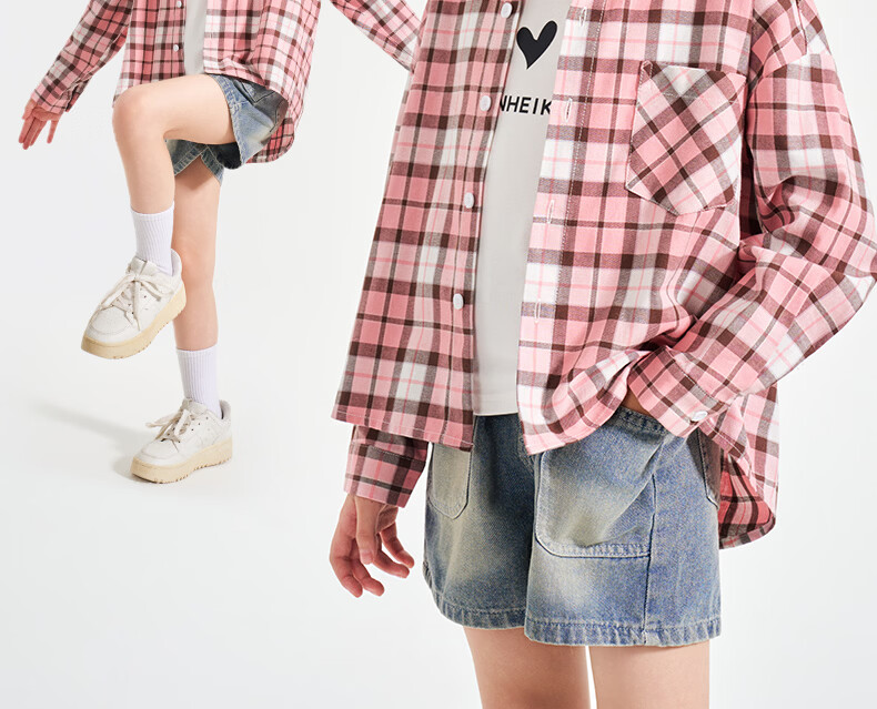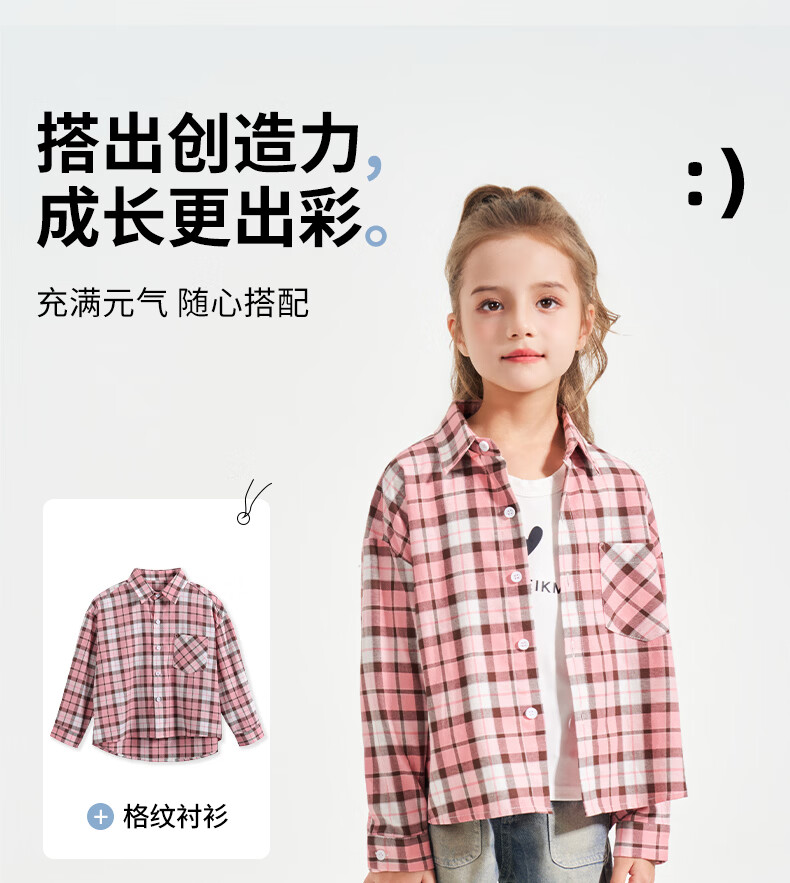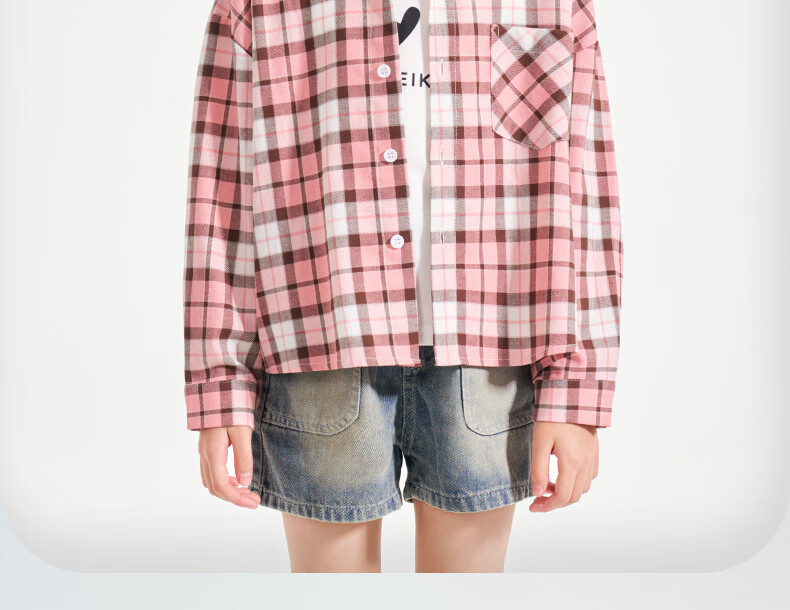 Romon Girls Plaid Shirt Long Sleeve Children's 2026 Girls 100% Cotton Retro Shirt Spring Autumn Jacket Pink Regular Single Shirt 130