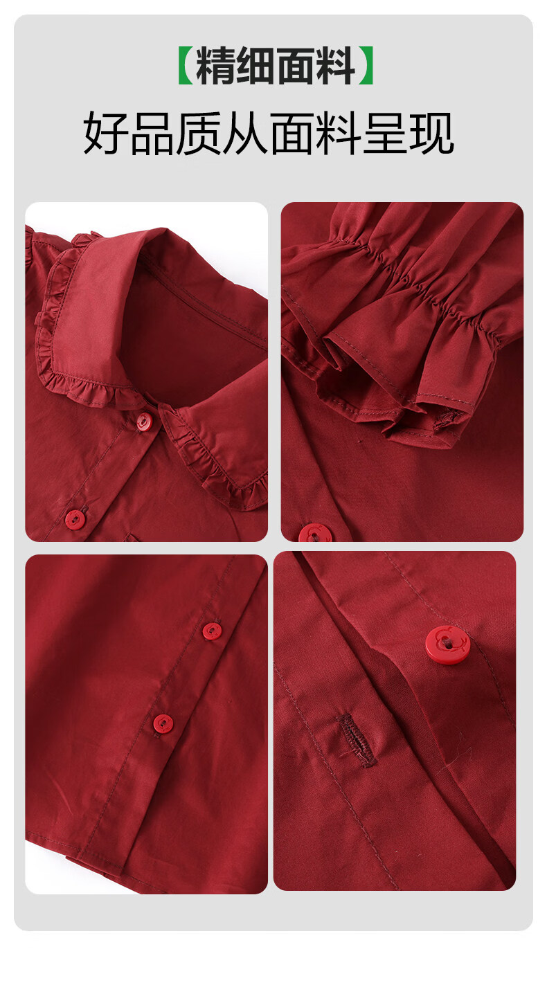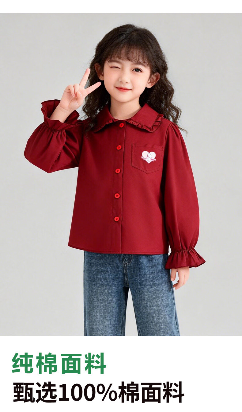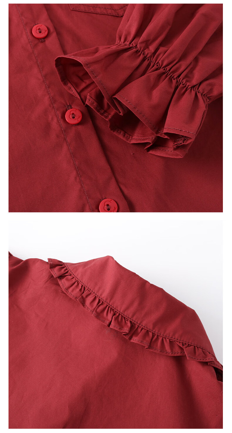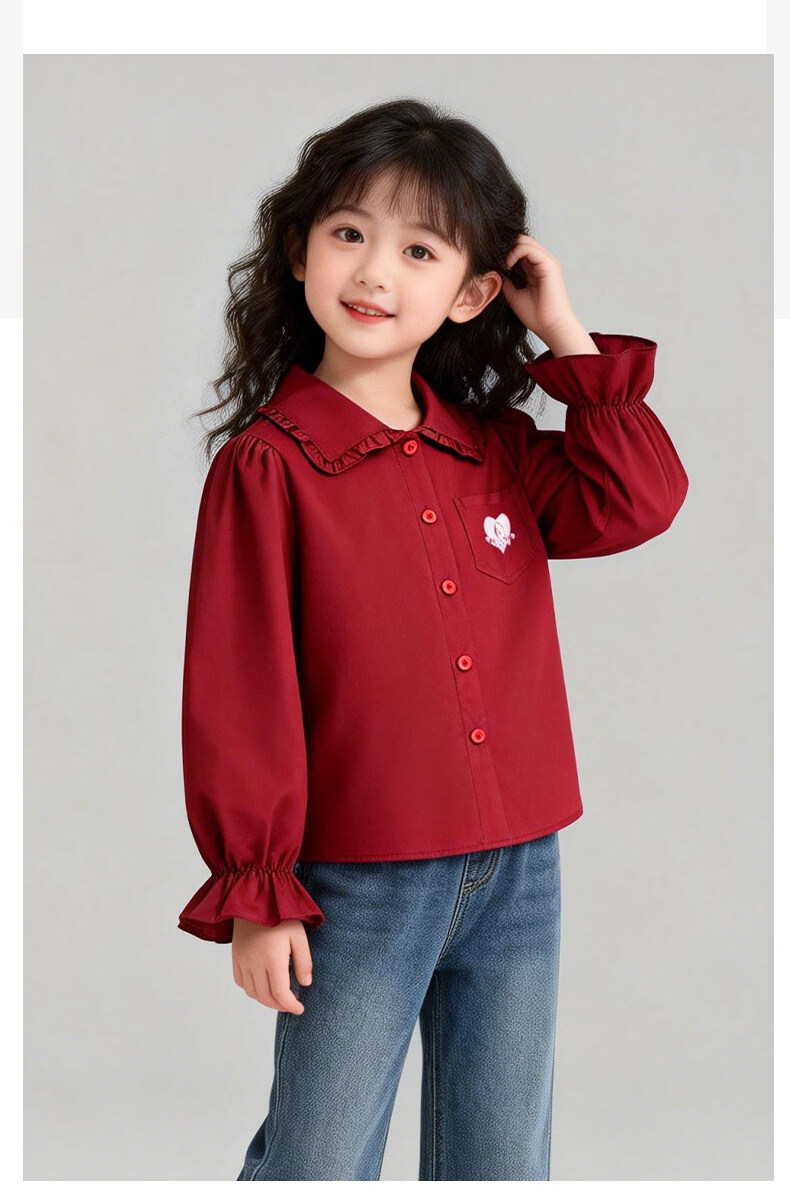 Snoopy Girls Cotton Shirt Spring and Autumn 2026 New Style Girls Long Sleeve Shirt Children's Bell Sleeve Sweet Top Red 130 Recommended Height 121-130cm