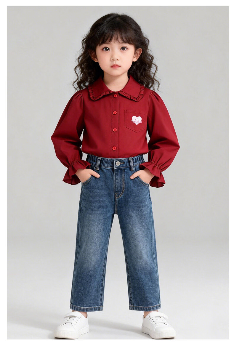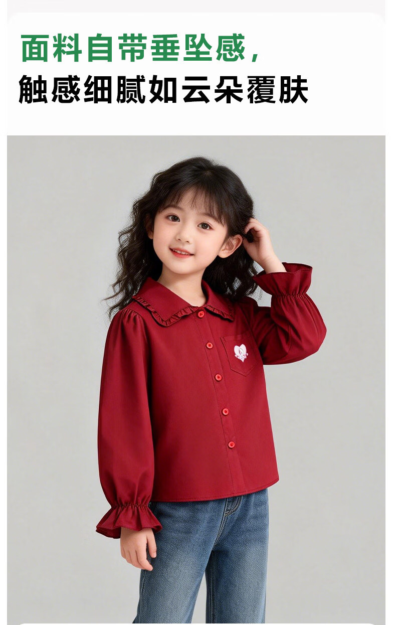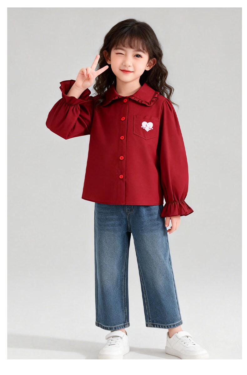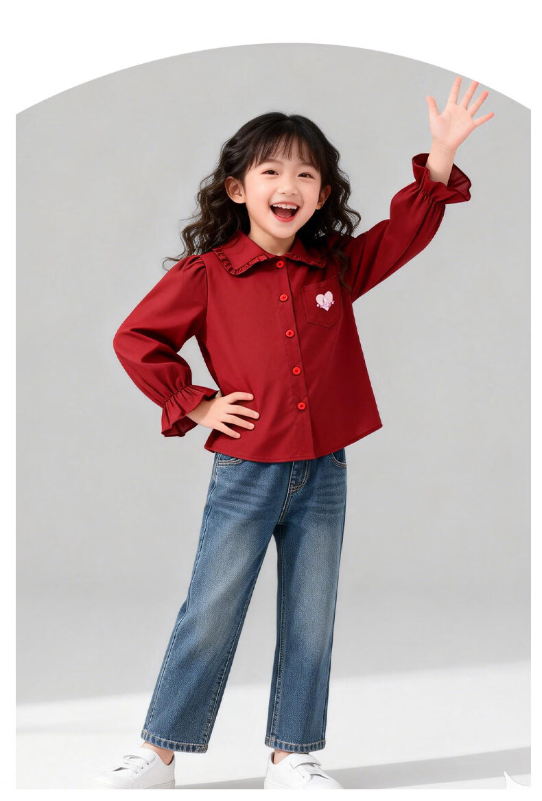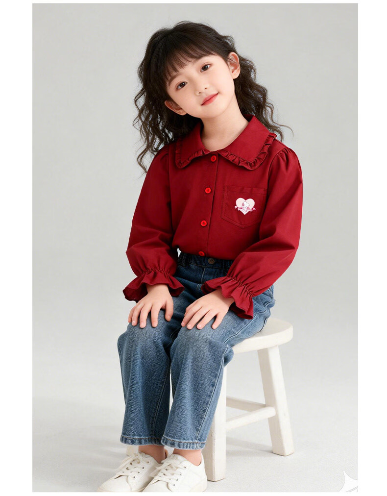 Snoopy Girls Cotton Shirt Spring and Autumn 2026 New Style Girls Long Sleeve Shirt Children's Bell Sleeve Sweet Top Red 130 Recommended Height 121-130cm
