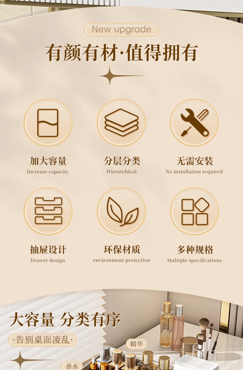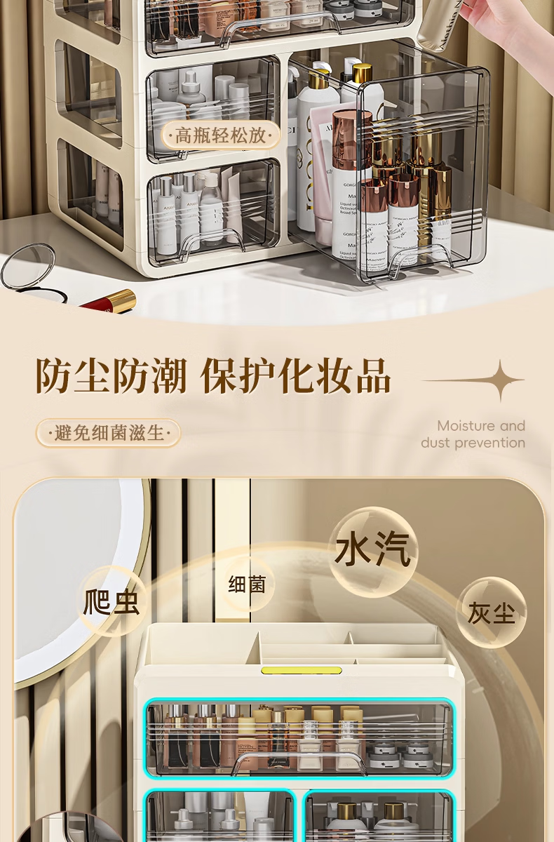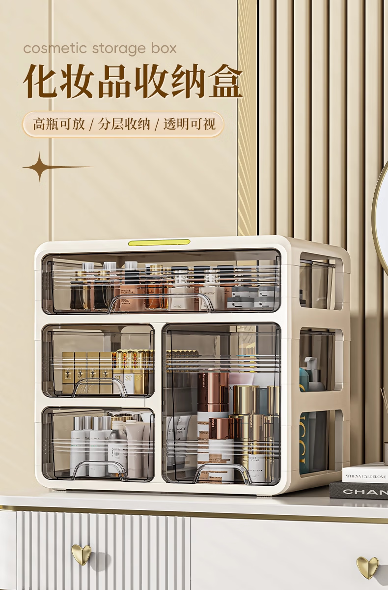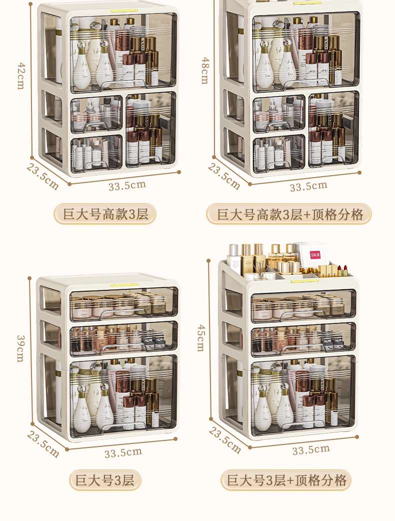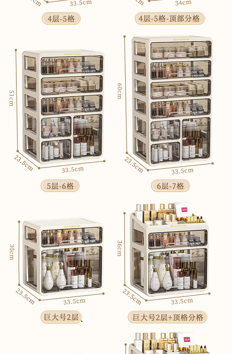 Kyokawa Asahi Drawer Cosmetics Storage Box Desktop Dressing Table Large Capacity Skin Care Product Lipstick Cabinet Organizer Box Storage Rack Upgraded Tall Bottle Style Cream White 3-layer + Top Compartment Style