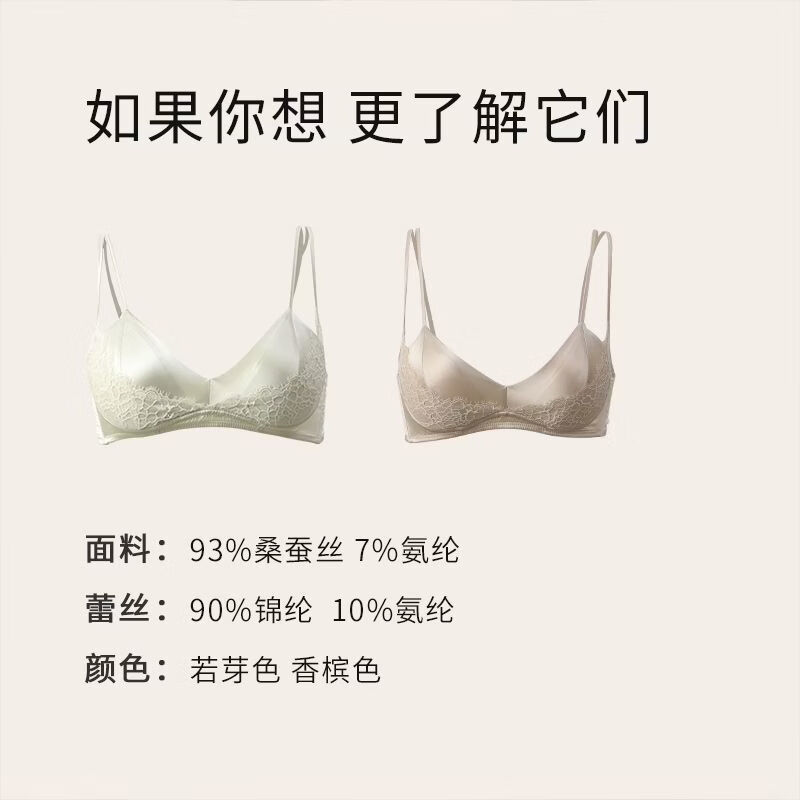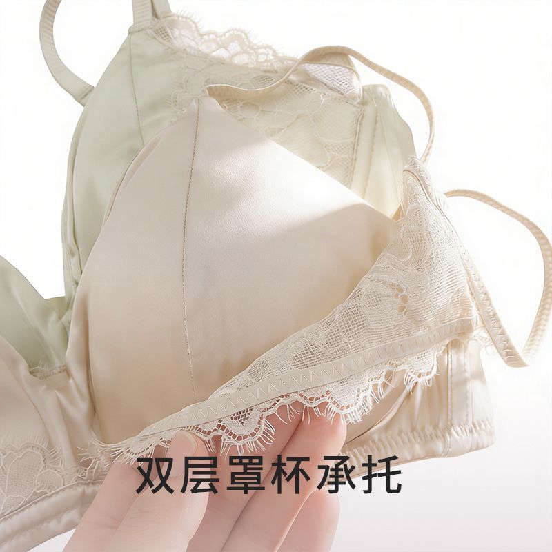 JINSANT Jinsanta mulberry silk sewn bra double-cup anti-sag lace breathable push-up bra Bud Green S