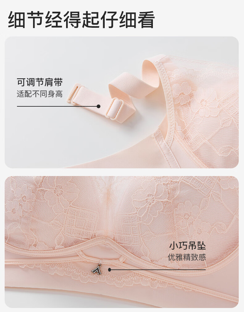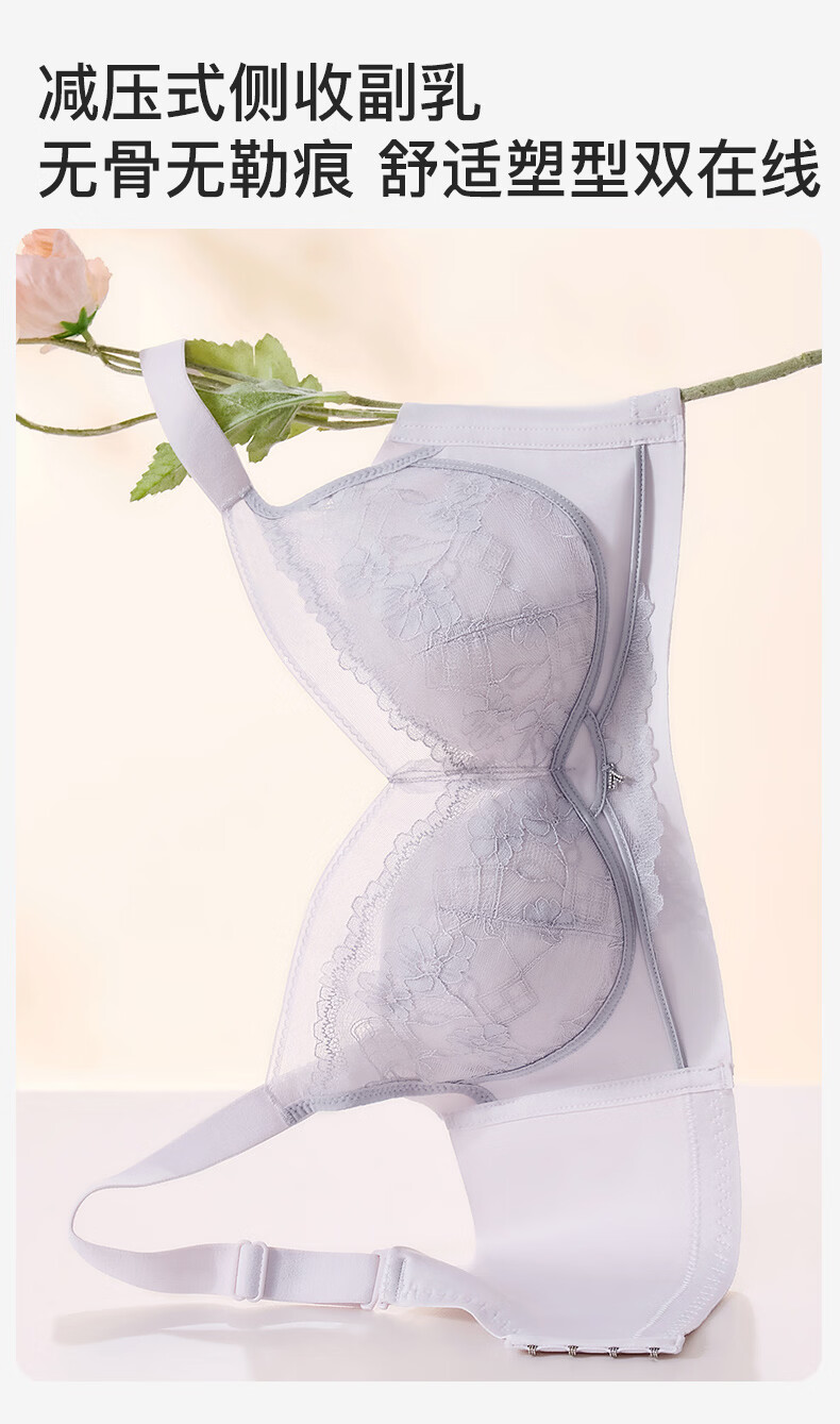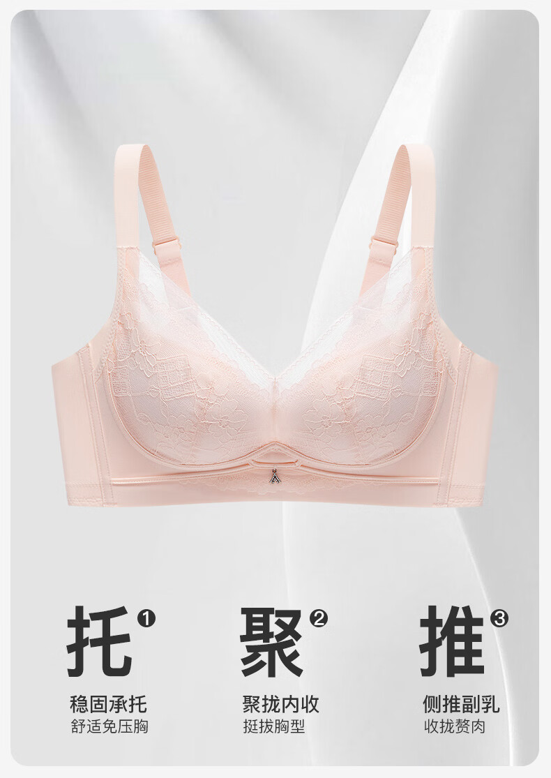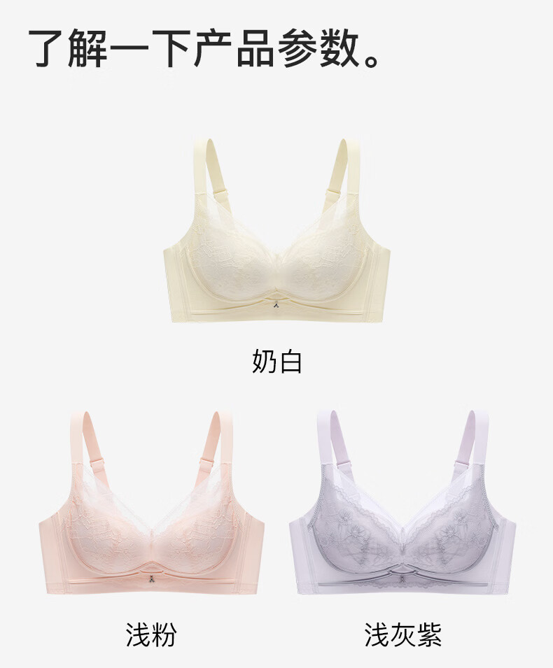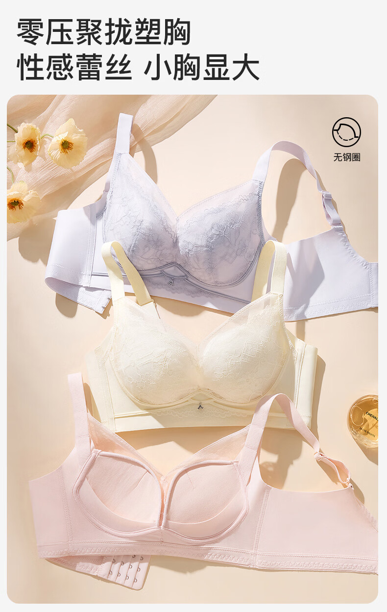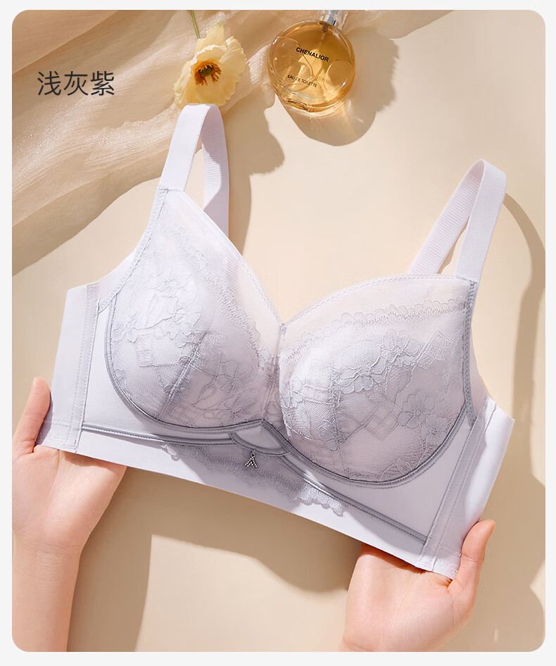 Fenton underwear for women 26 new style 10A antibacterial mugwort skin-nourishing small breast push-up and lift sexy lace wire-free bra light gray purple 80A