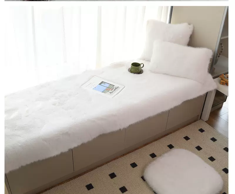 Yusenyi 2025 new bay window mat window sill mat fox plush bay window mat master bedroom balcony mat customizable tatami mat white imitation fox fur silicone bottom 70x180cm