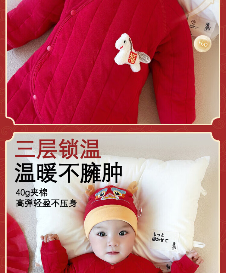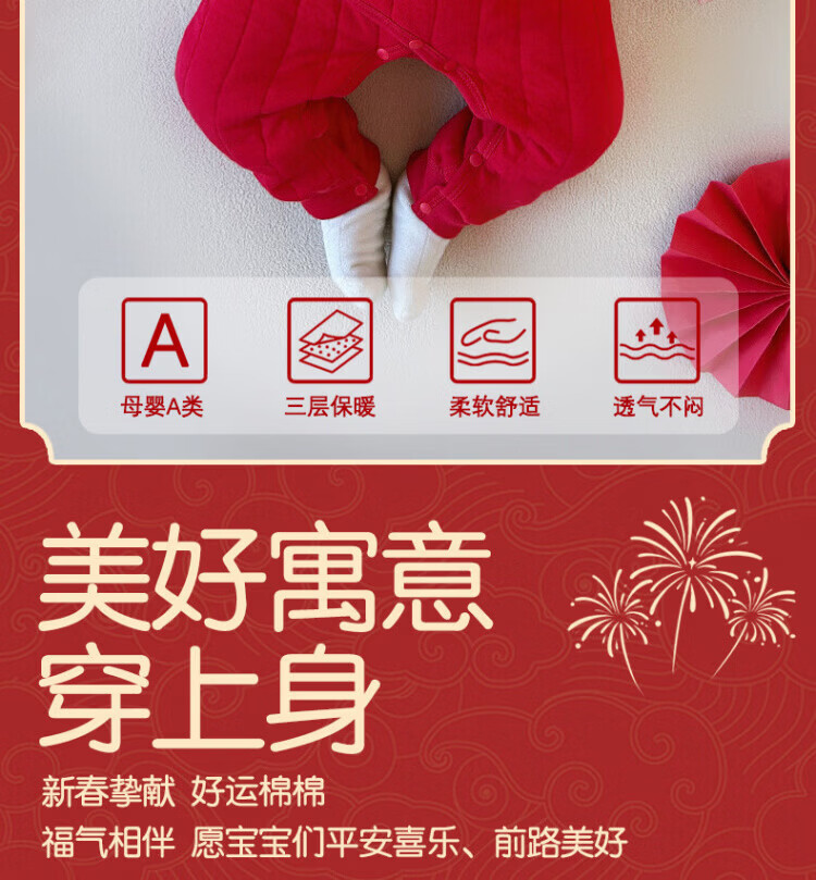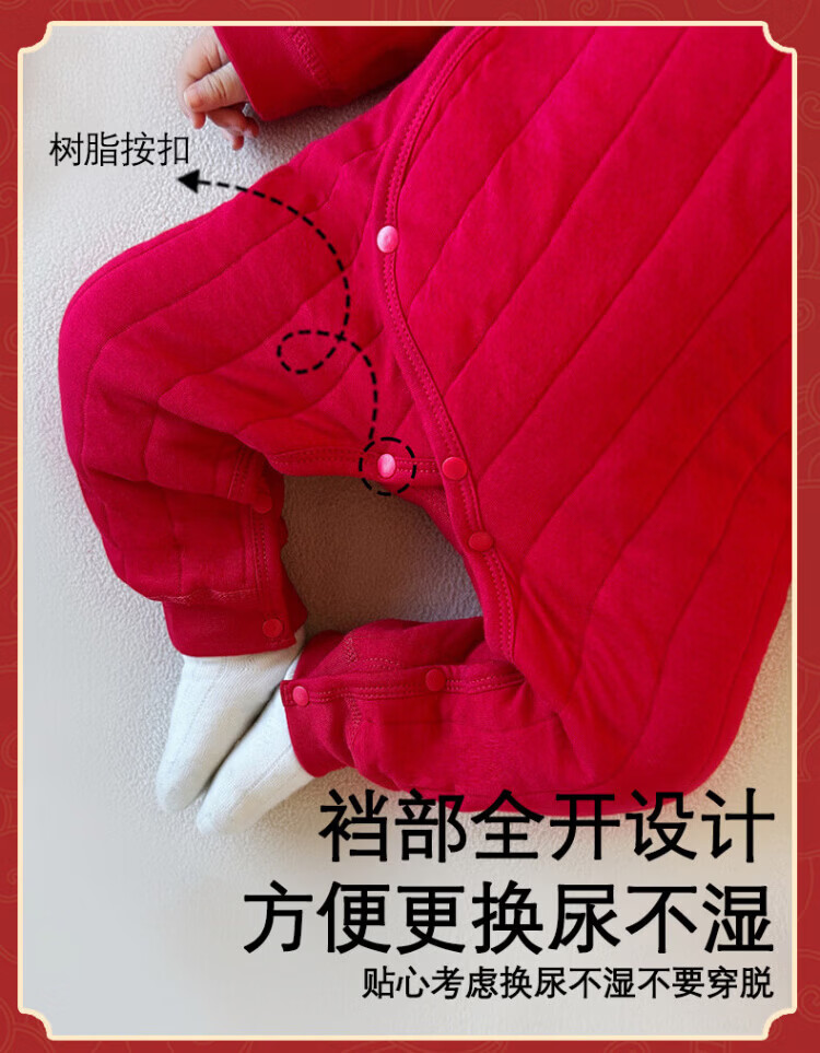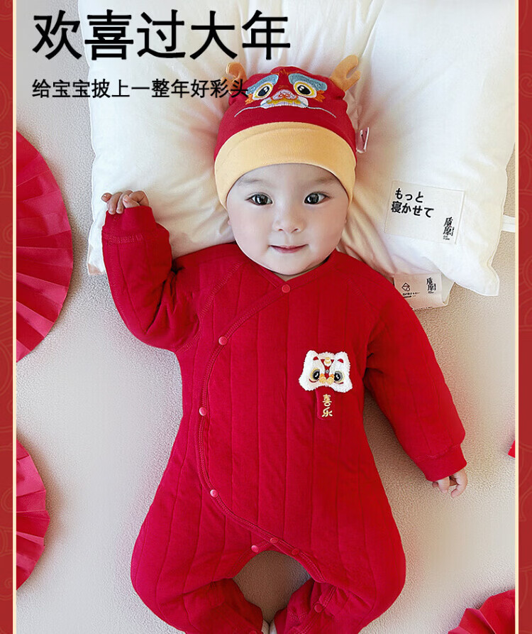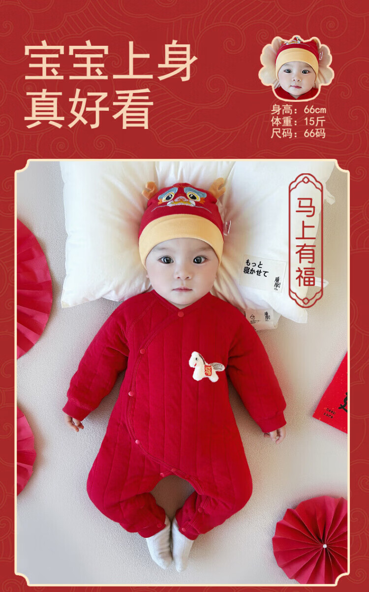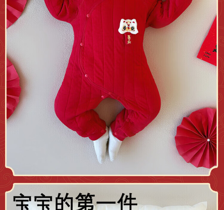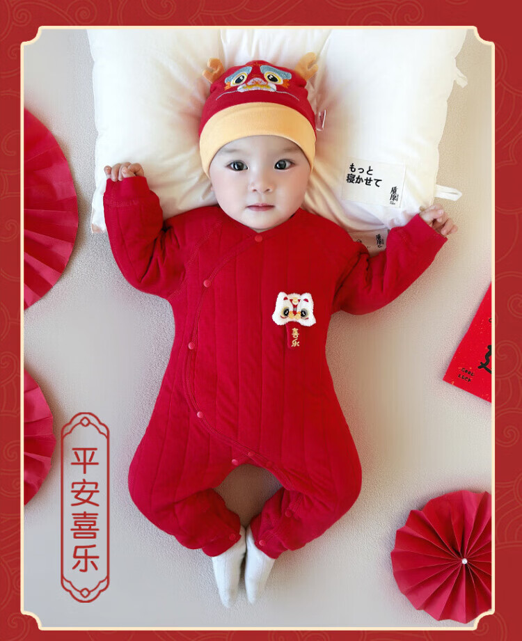 Baby one-piece clothespin cotton bright red New Year's Eve baby full moon 100-day banquet New Year's greetings suit New Year Autumn and Winter Good luck + peace and joy soon 73 cm