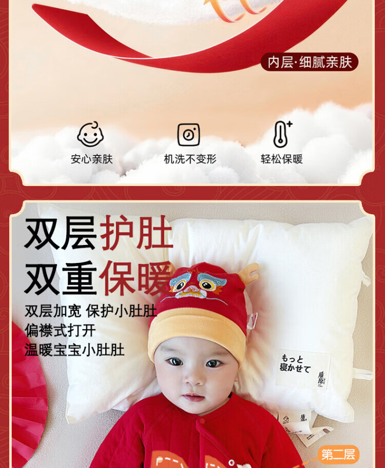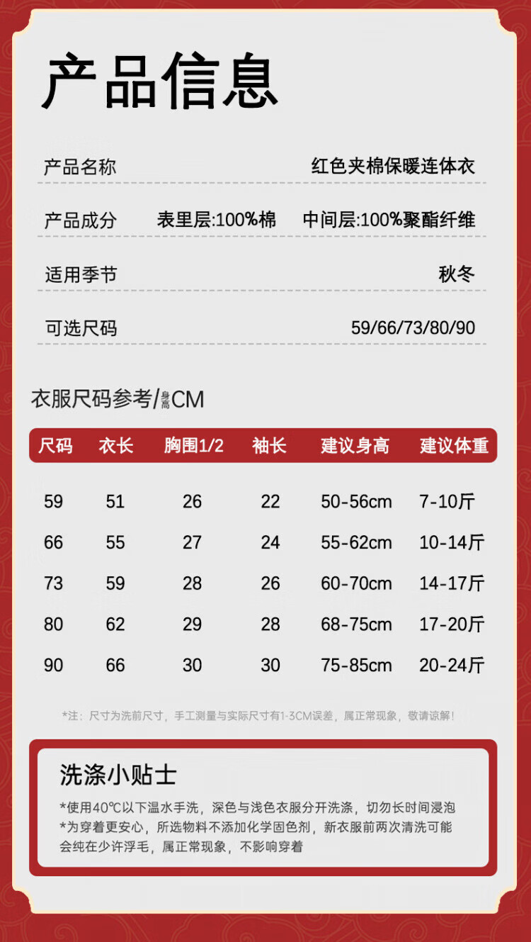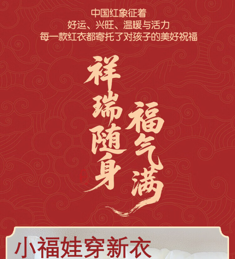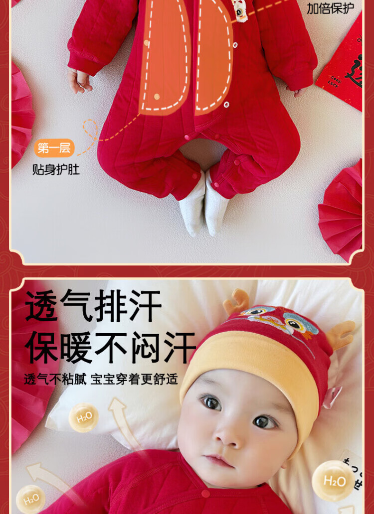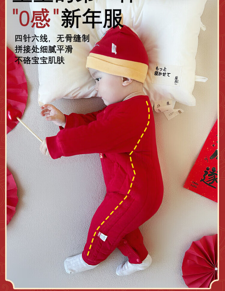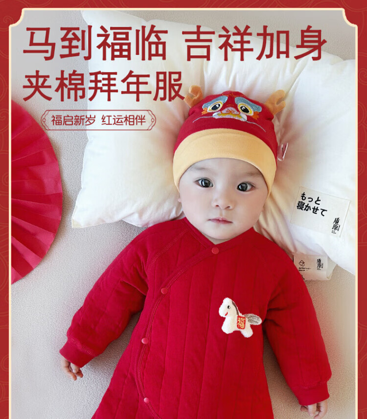 Baby one-piece clothespin cotton bright red New Year's Eve baby full moon 100-day banquet New Year's greetings suit New Year Autumn and Winter Good luck + peace and joy soon 73 cm