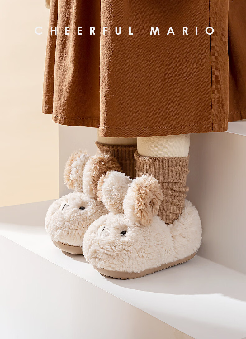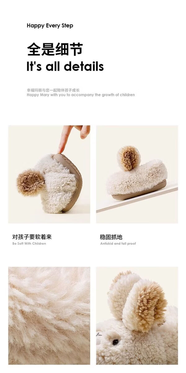 Children's Cotton Slippers Winter Children's Home Shoes Baby Cotton Shoes Bag Heels Toddler Girls Indoor Furry Slippers Autumn and Winter Pink Rabbit Cotton Slippers 15 Inner Length 15cm 15 Suitable for Foot Length 13.5cm