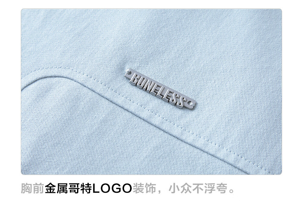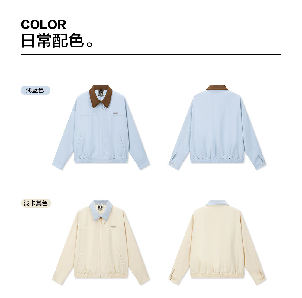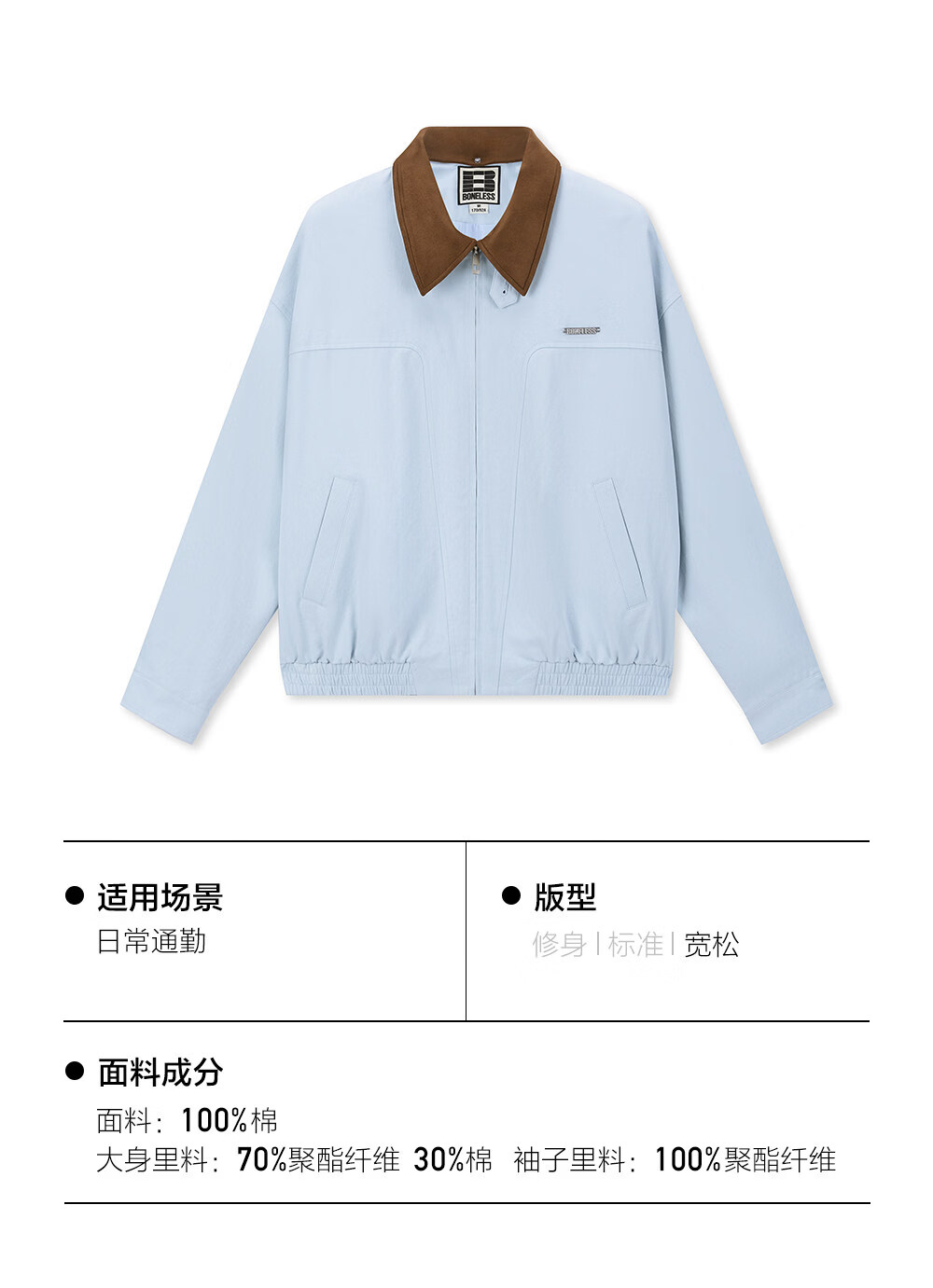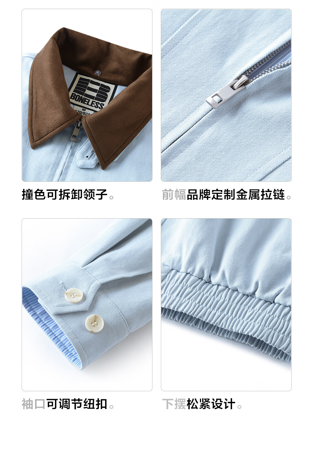 BONELESS Harrington detachable collar jacket basic versatile loose metal iron brand washed simple lapel jacket light blue S