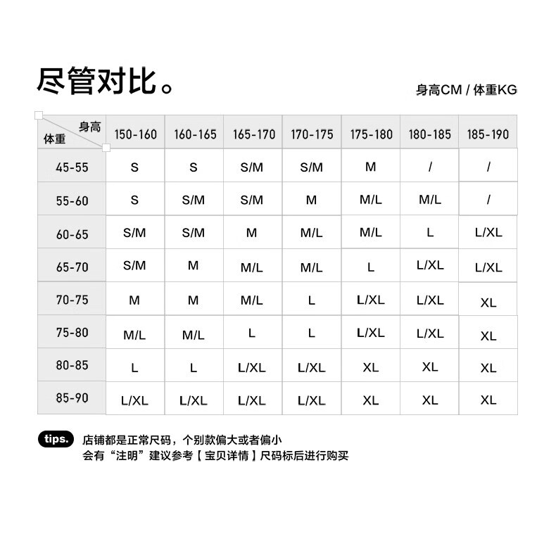 China (cm) 160-165/84-86 165-170 / 88-90 167-172 / 92-96 168-173 / 98-102 170-176 / 106-110