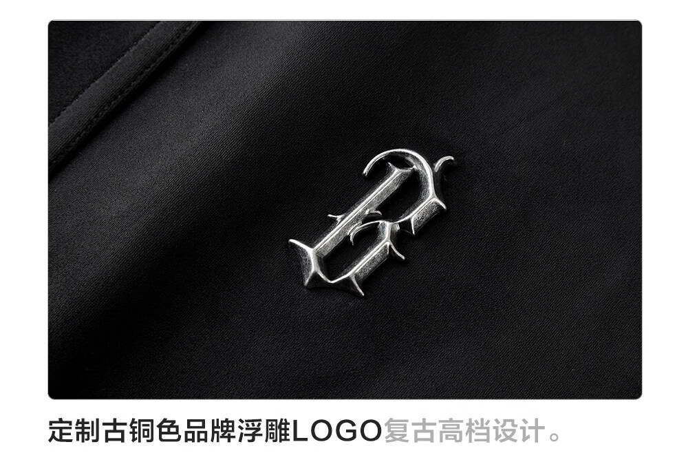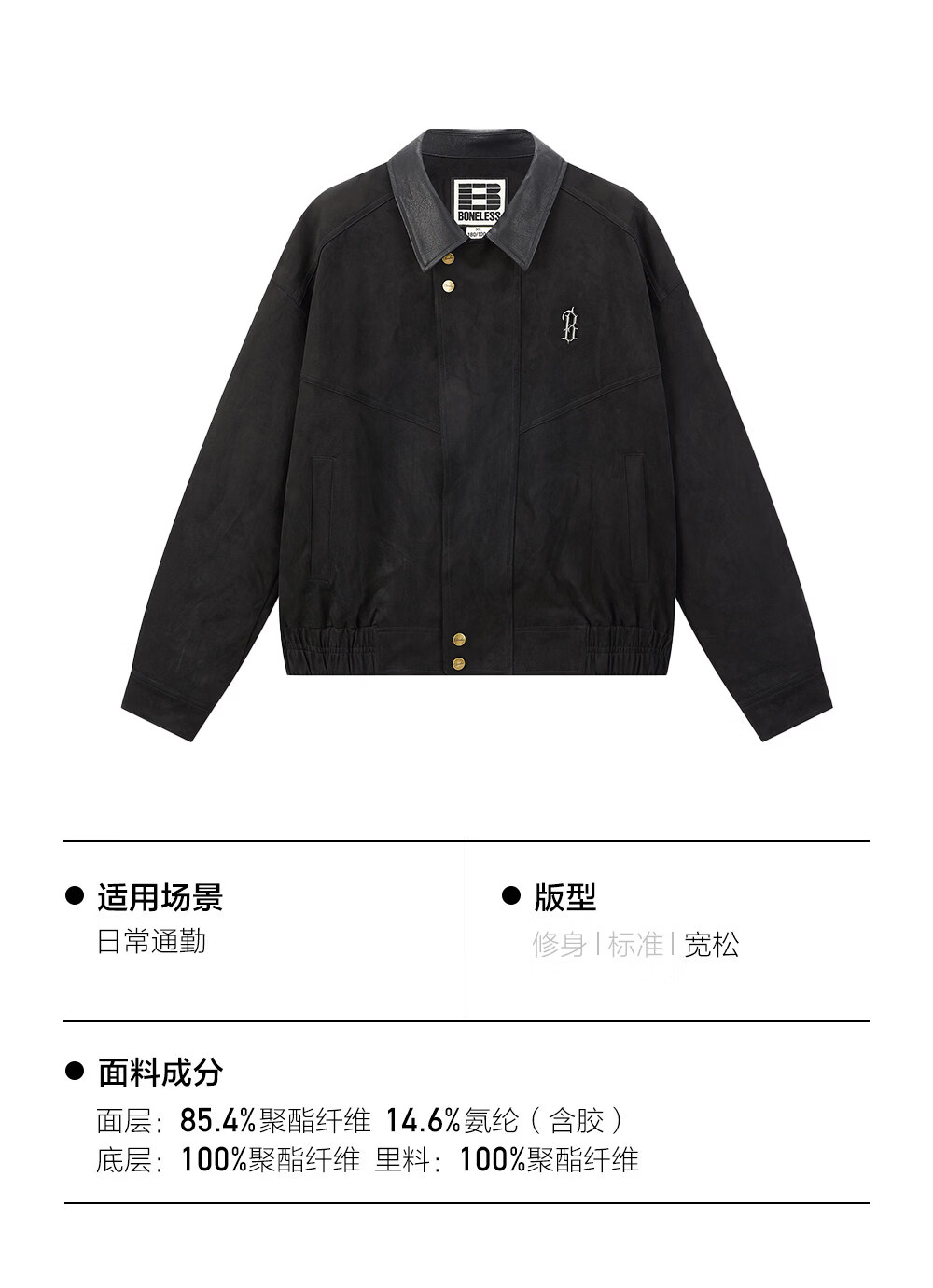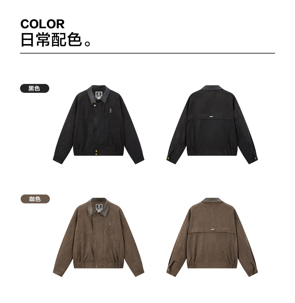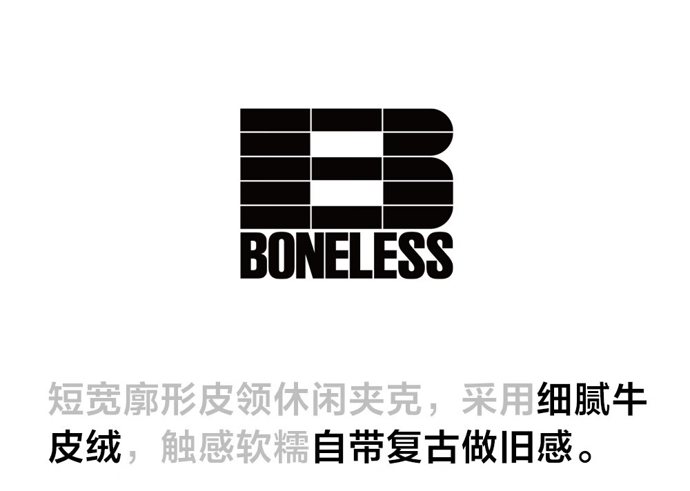 BONELESS imitation cowhide velvet and leather lapel casual jacket retro loose contrast color versatile metal label jacket trendy coffee S