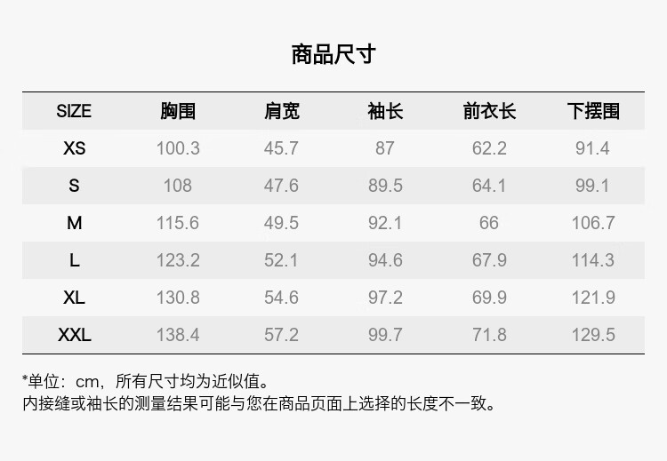 China (cm) 160-165/84-86 165-170 / 88-90 167-172 / 92-96 168-173 / 98-102 170-176 / 106-110