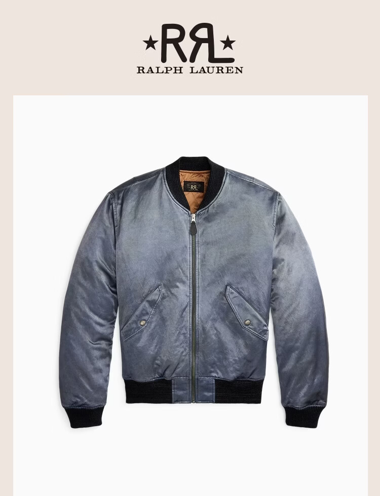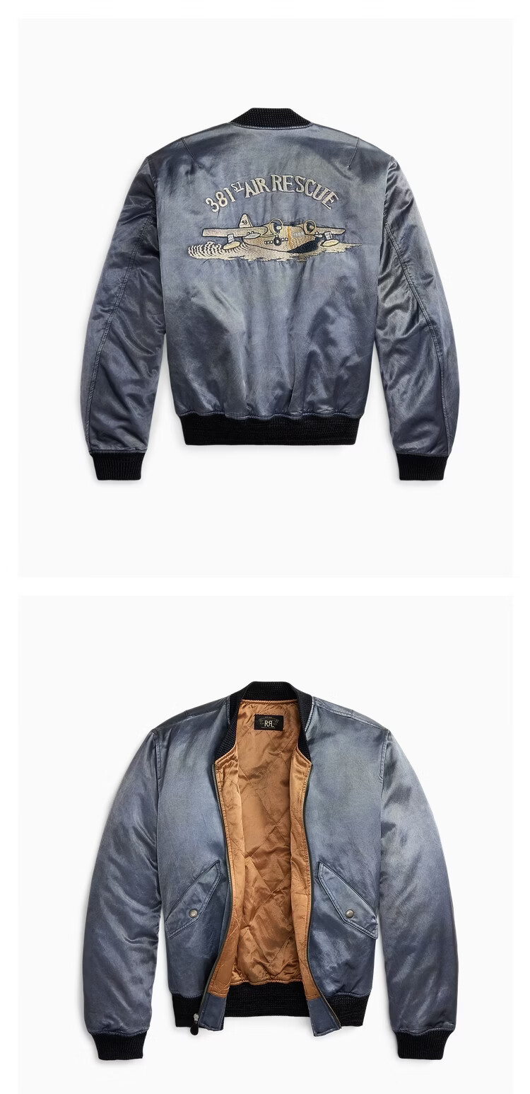 RRL Men's Spring 26 Embroidered Satin Bomber Jacket RL95776 400-Vintage Blue S