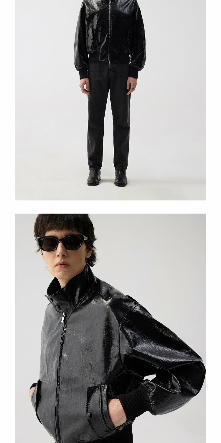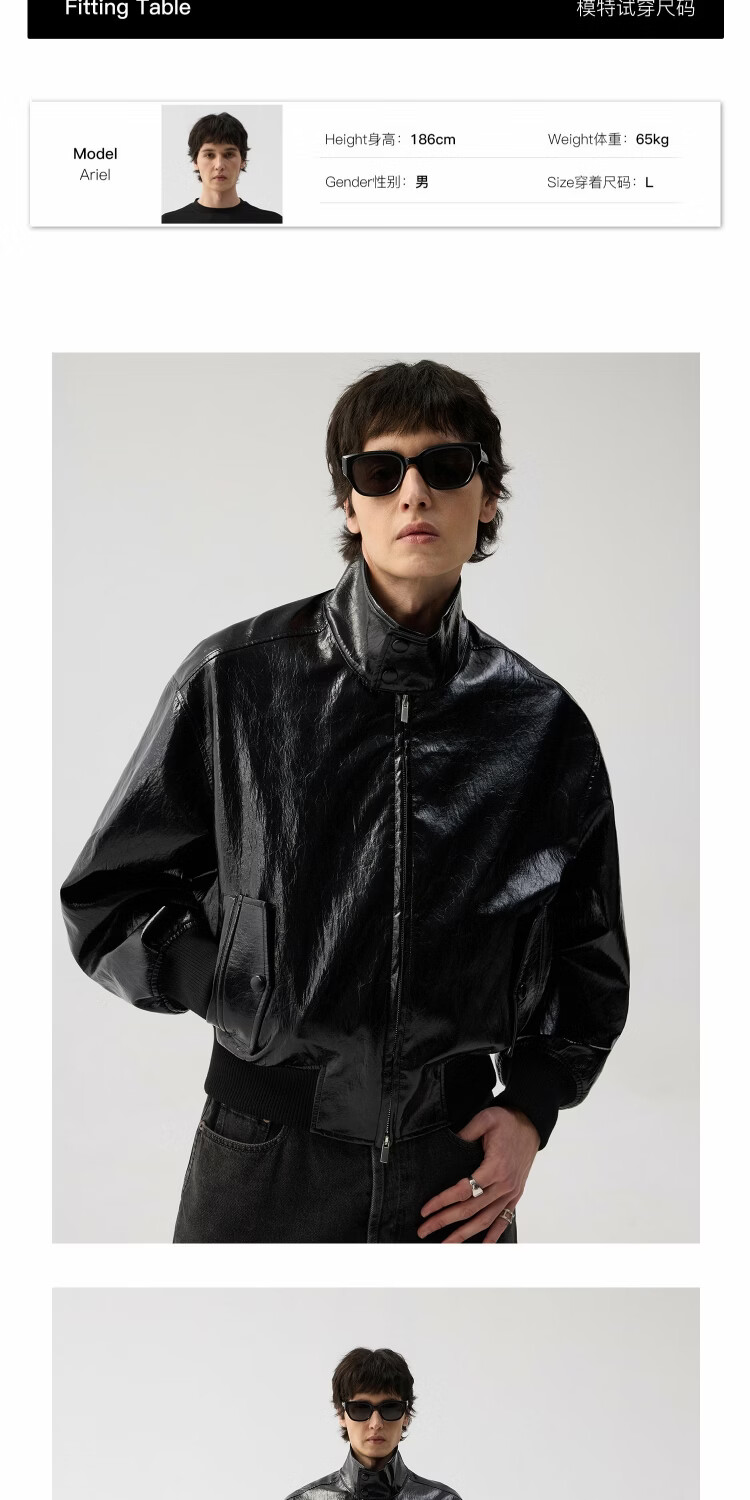 TERRAINCOGNITA 26SS pleated mirror metal fiber MA1 high collar jacket simple daily commuting casual jacket black S