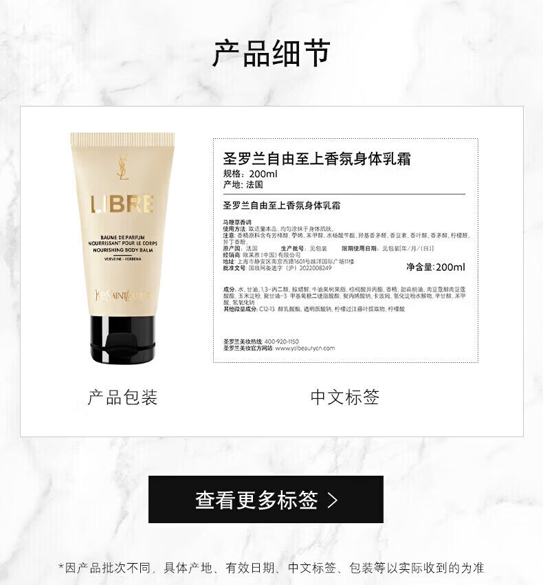 YSL Saint Laurent Reversal Paris/Eau de Liberty Body Lotion 50ml Fragrant Moisturizing High-end Gift Box Accessories Black Opium Body Lotion 50ml 50ml
