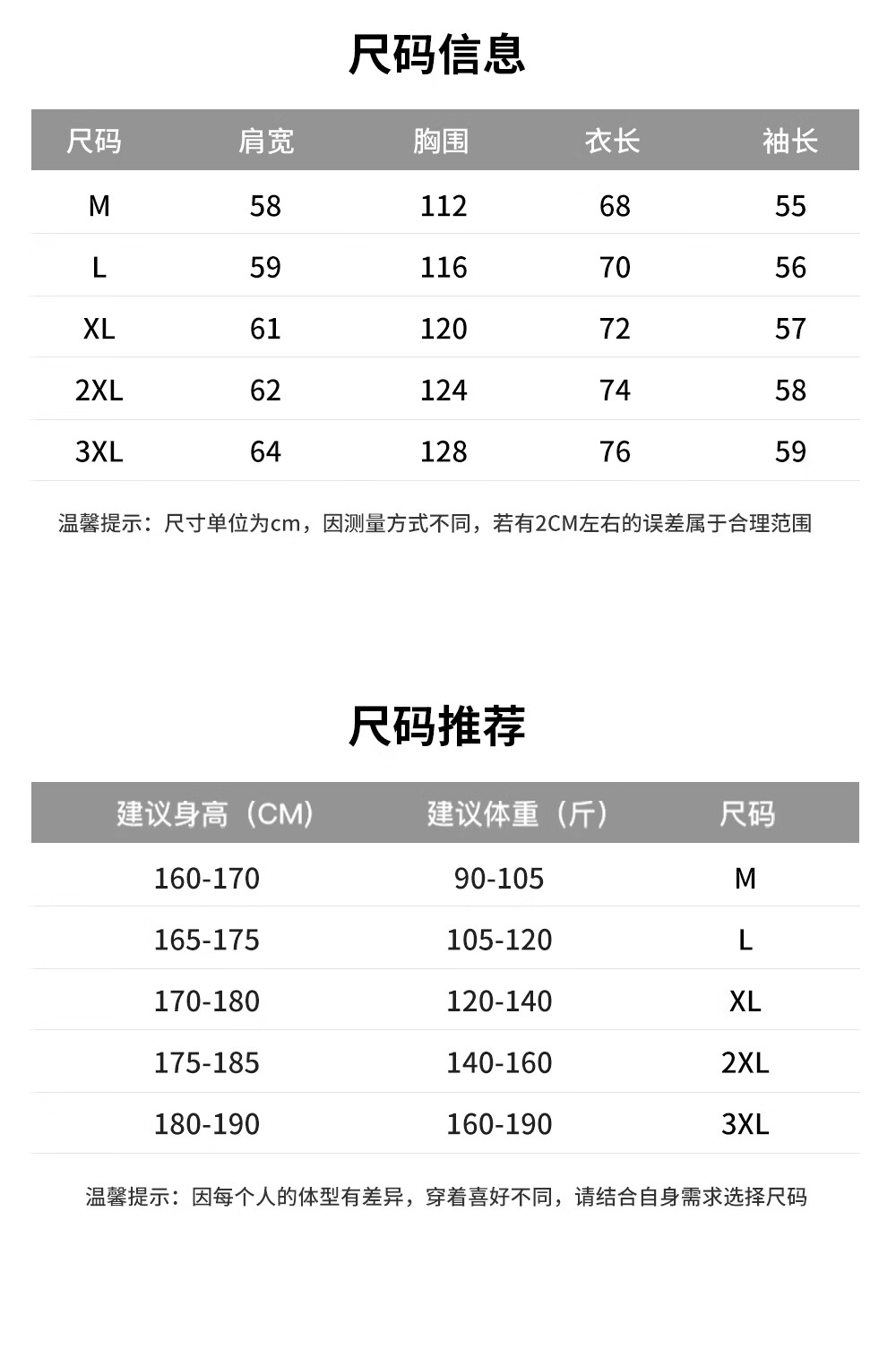 China (cm) 160-165/84-86 165-170 / 88-90 167-172 / 92-96 168-173 / 98-102 170-176 / 106-110