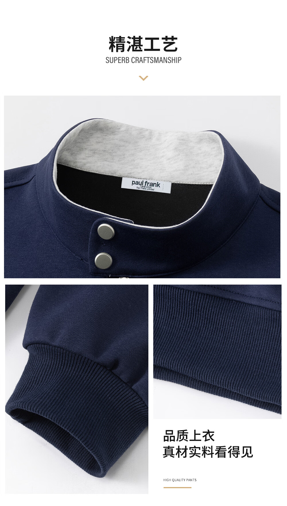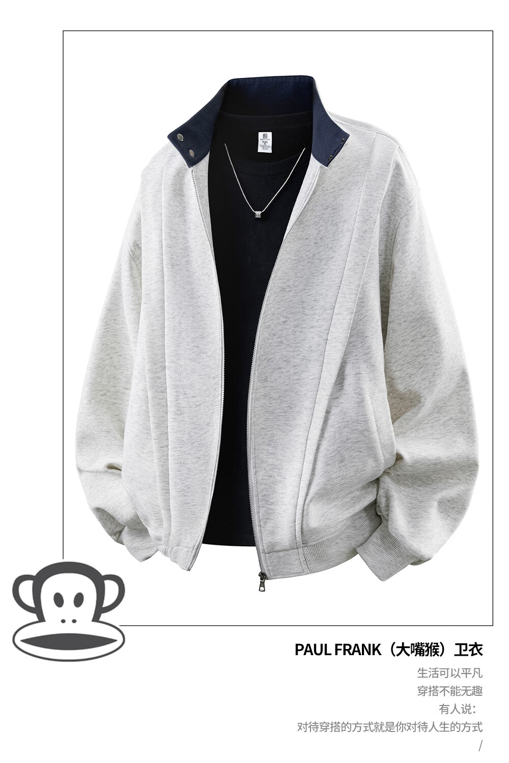Big Mouth Monkey (paul frank) American contrasting color stand-up collar cardigan sweatshirt for men spring and autumn new fashion brand loose casual versatile comfortable sports top white floral gray spring new product M recommended 90-110Jin Jin equals 0.5 kg