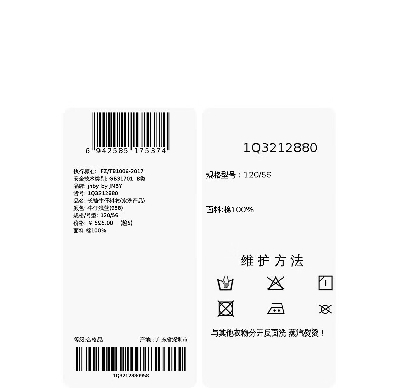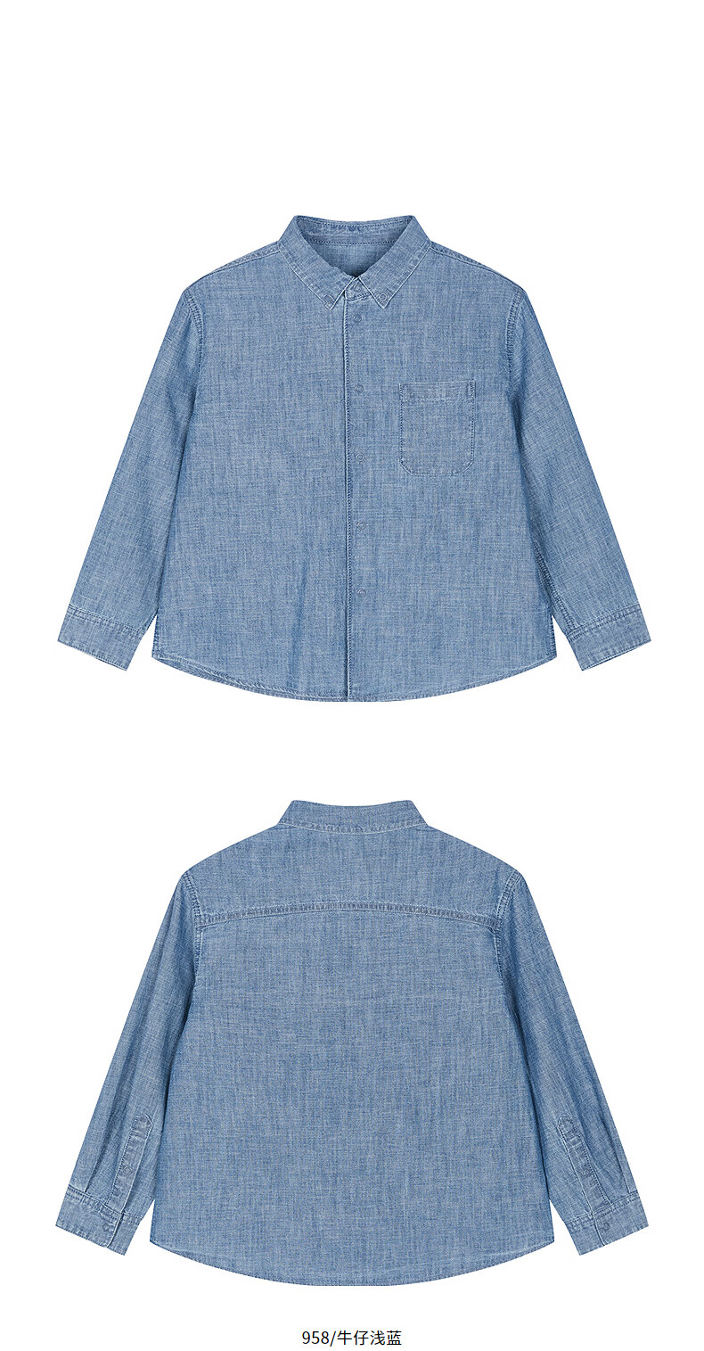 Jnby by JNBY New Jiangnan Buyi children's clothing long-sleeved denim shirt H-shaped loose solid color 26 spring boys 1Q3212880 958/denim light blue 110 cm
