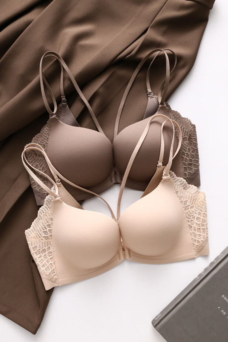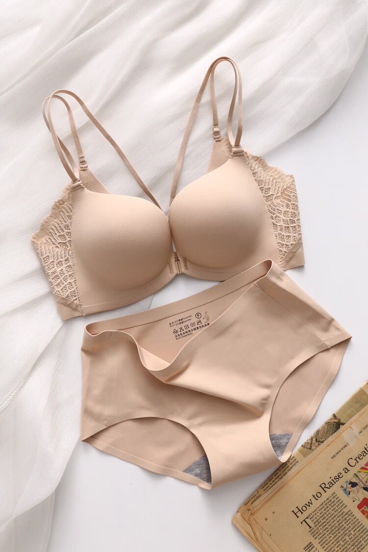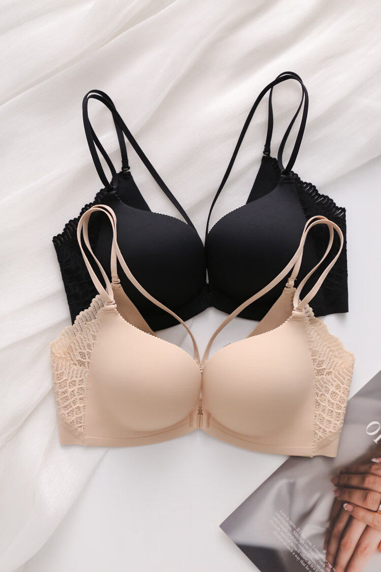 Eresg Light Luxury Brand Underwear Beauty Back Double Thin Shoulder Straps Front Button Underwear Set No Wire Underwear Women Small Breasts Show Big Black Suit M Recommendation 3475AB