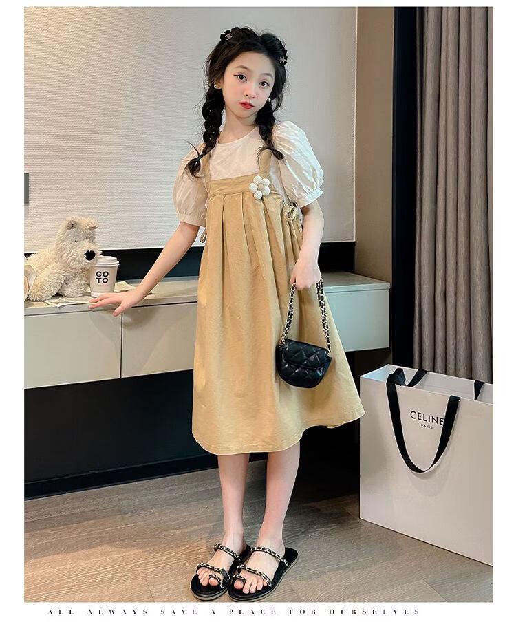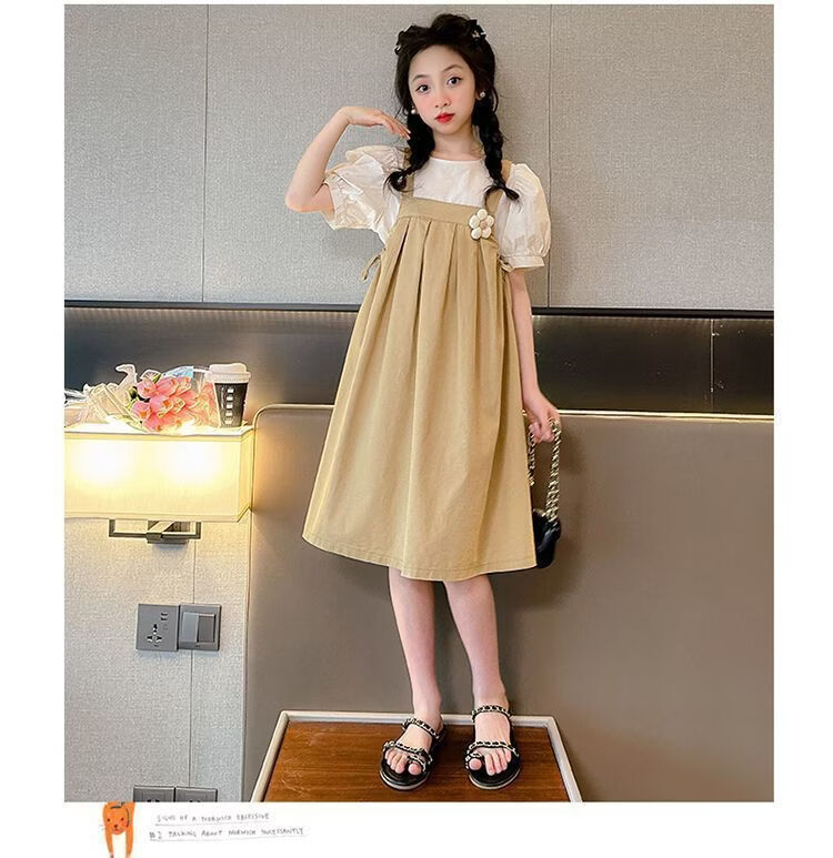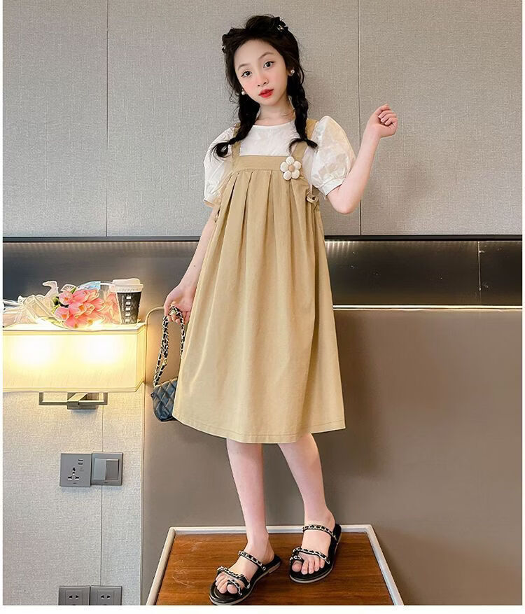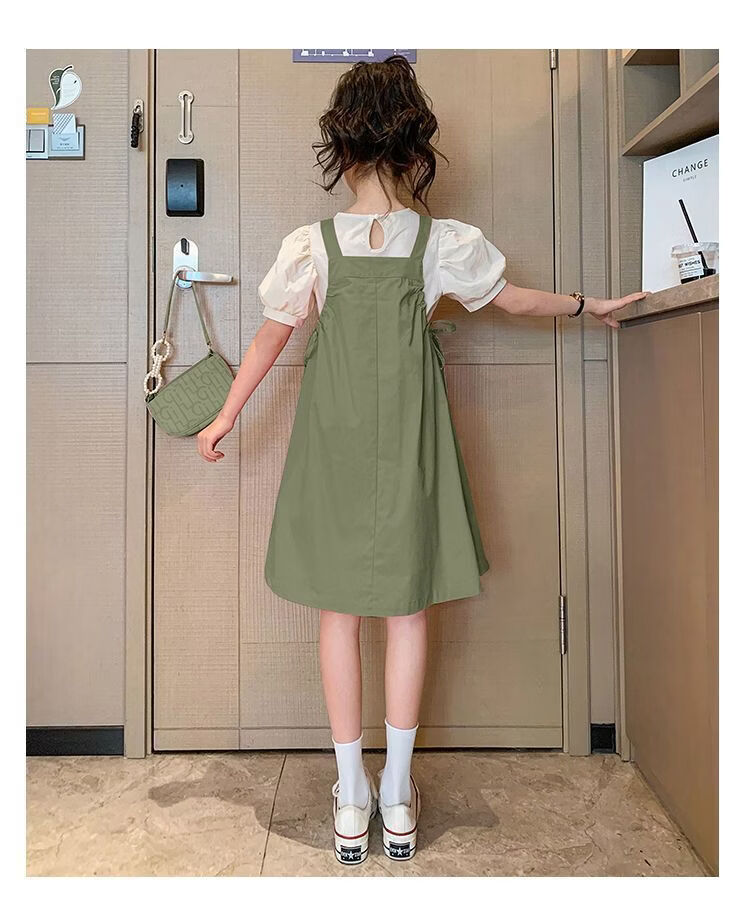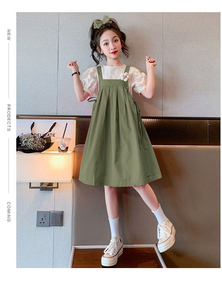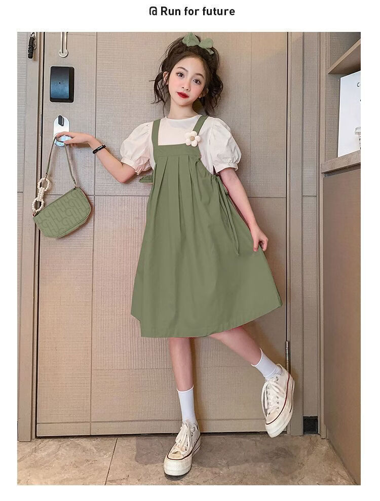 Girls summer dresses 2026 new style children's suspender skirt two-piece set fashionable girl princess dress Korean version green suit 170 cm