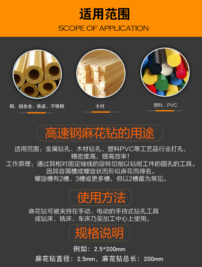 Gaogang extended 300mm straight handle hemp drill bit to drill stainless steel 1 piece black nitride 8 points 0*300mm