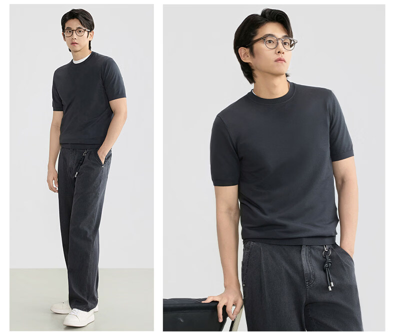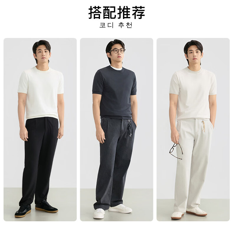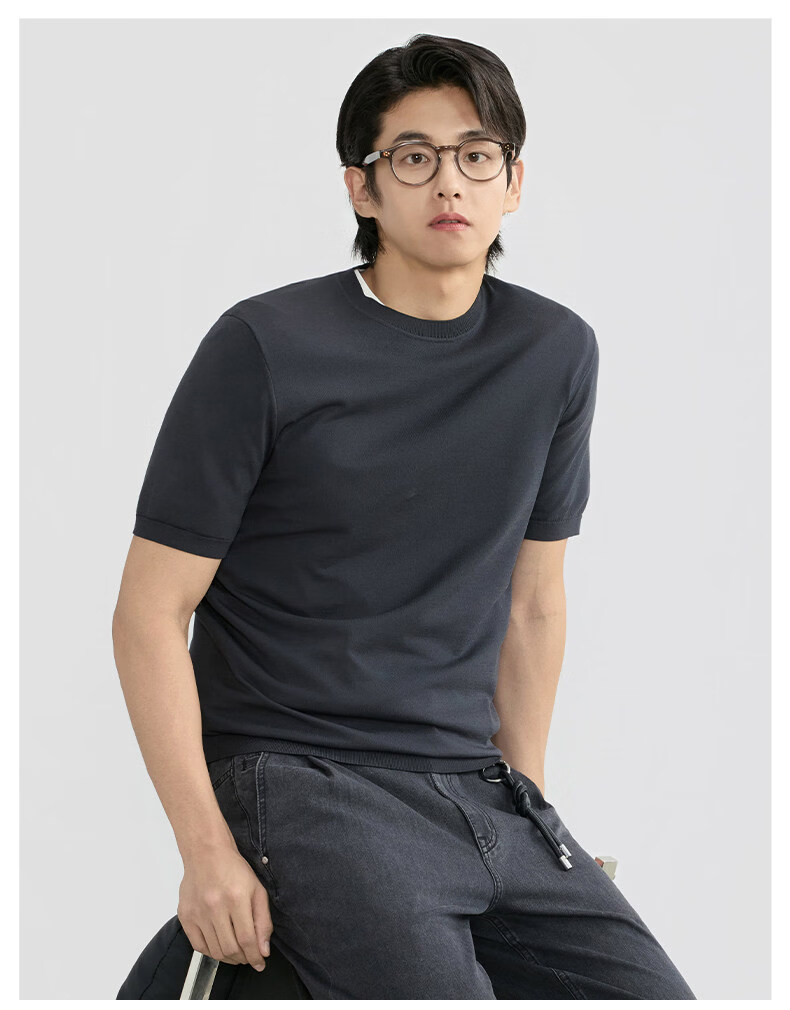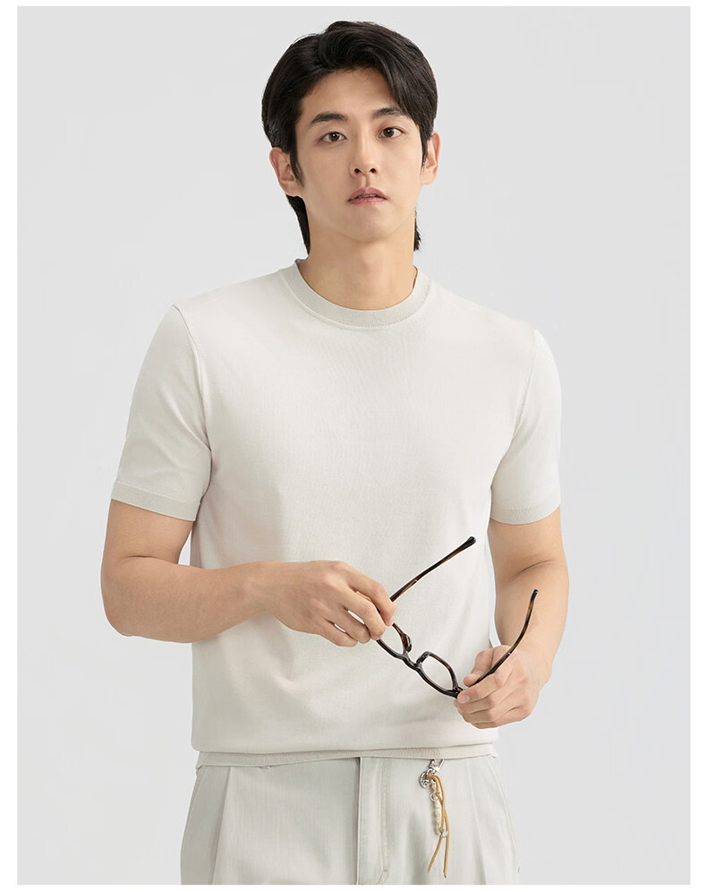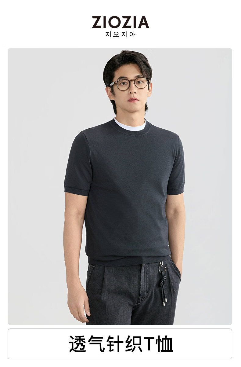 ZIOZIA Comfortable and Breathable Commuting Men's 26 Spring and Summer Style Young and Middle-aged Fitted Shoulder Knitted Short-Sleeved T-shirt White S 165/88A