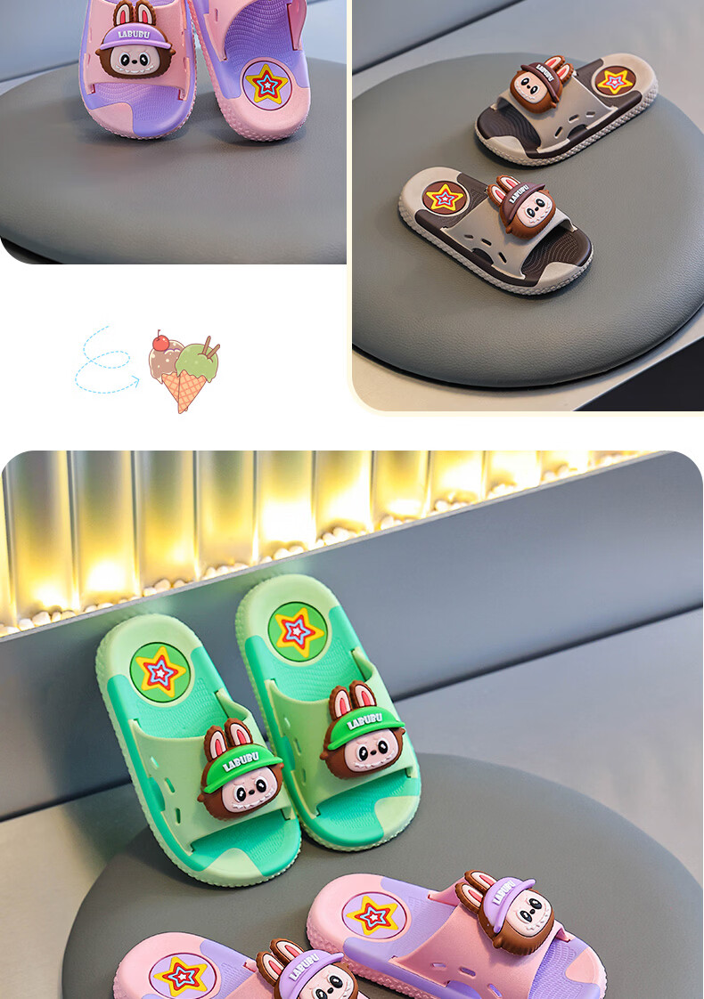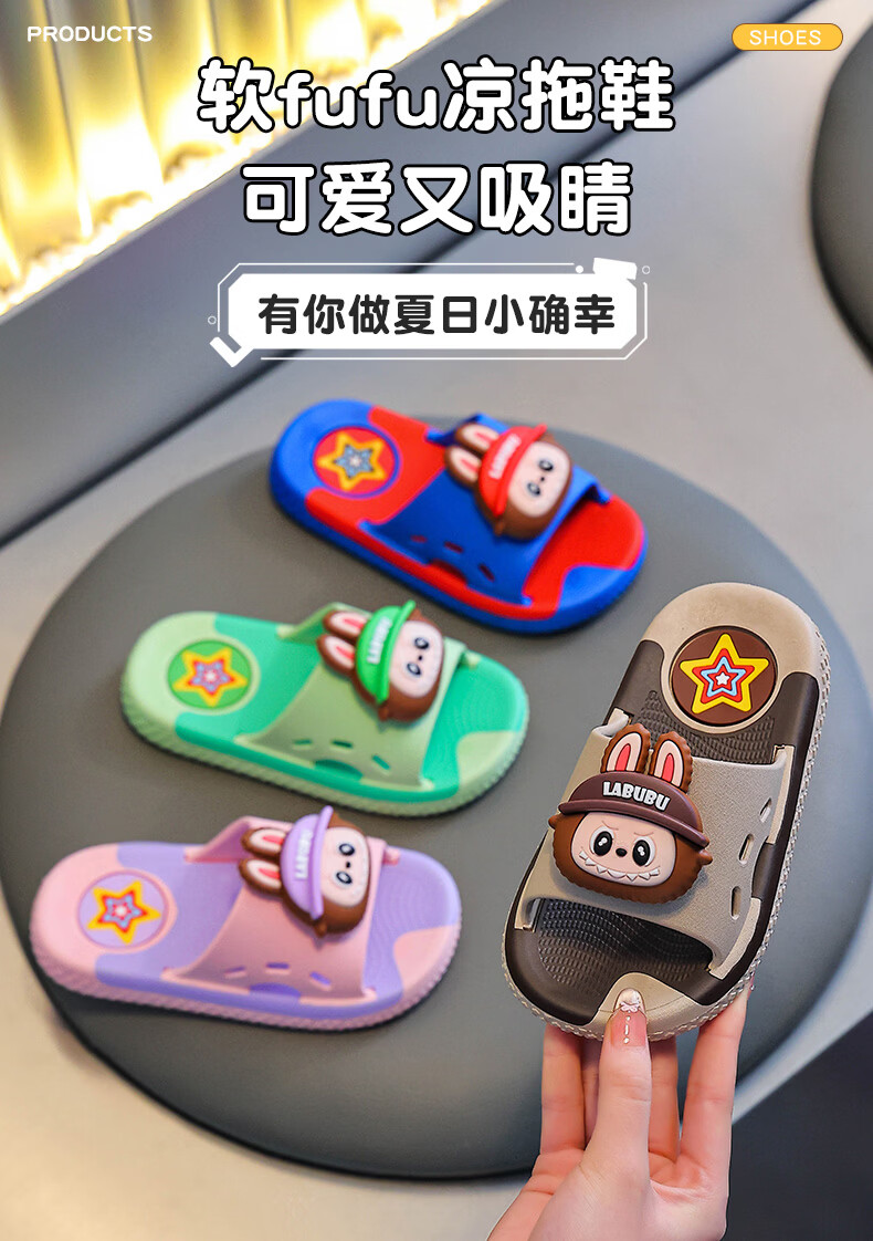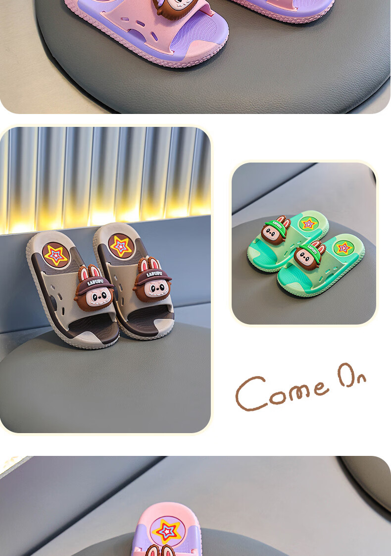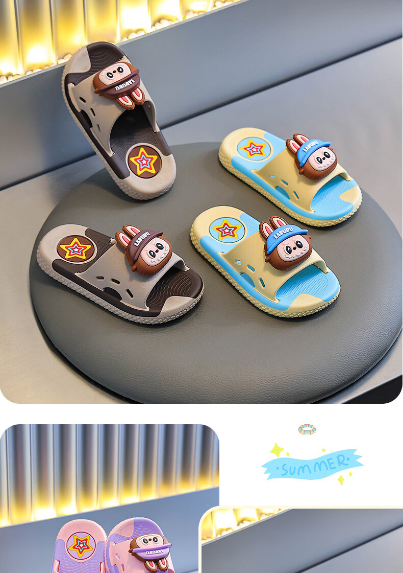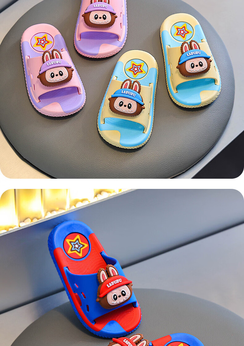 Labubu children's slippers with soft soles for girls and babies, cute children's home indoor boys' cartoon non-slip bath, pink 18.5, inner length 18cm, size 28-29