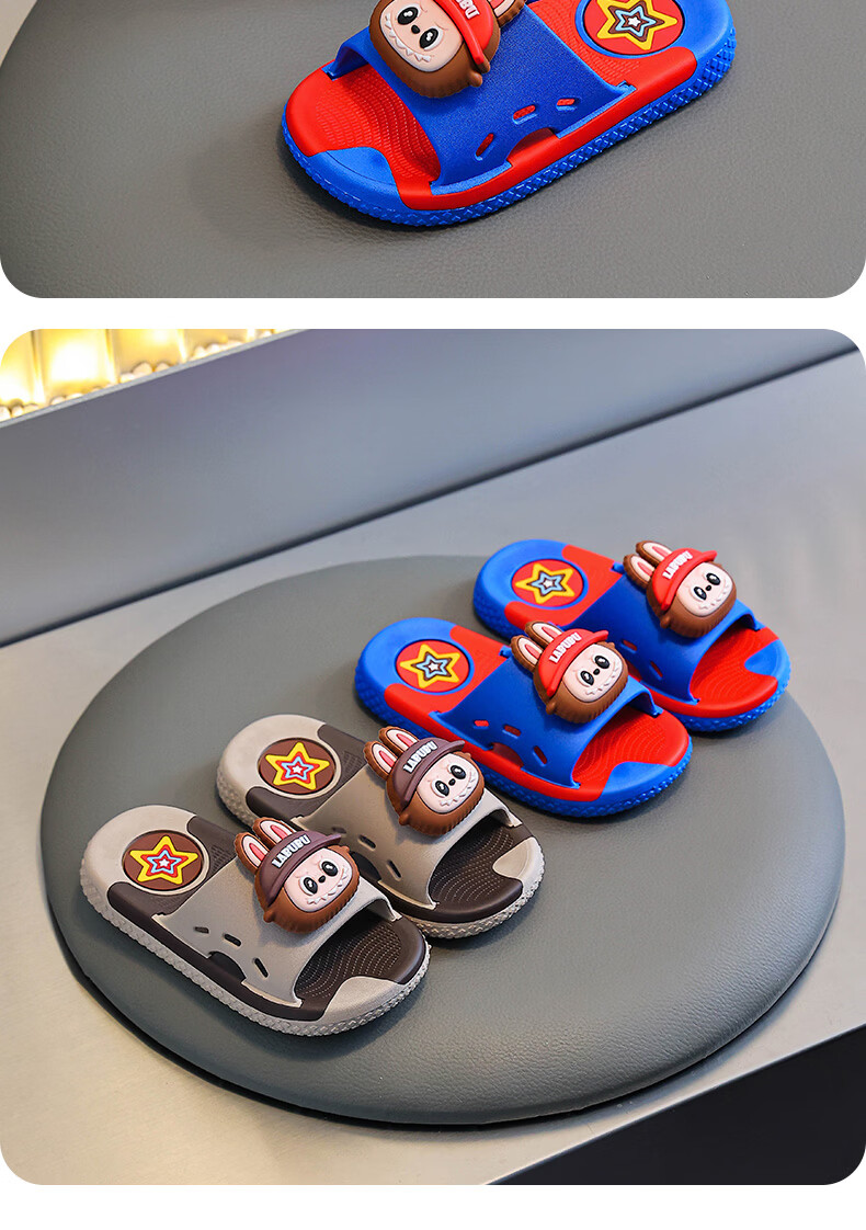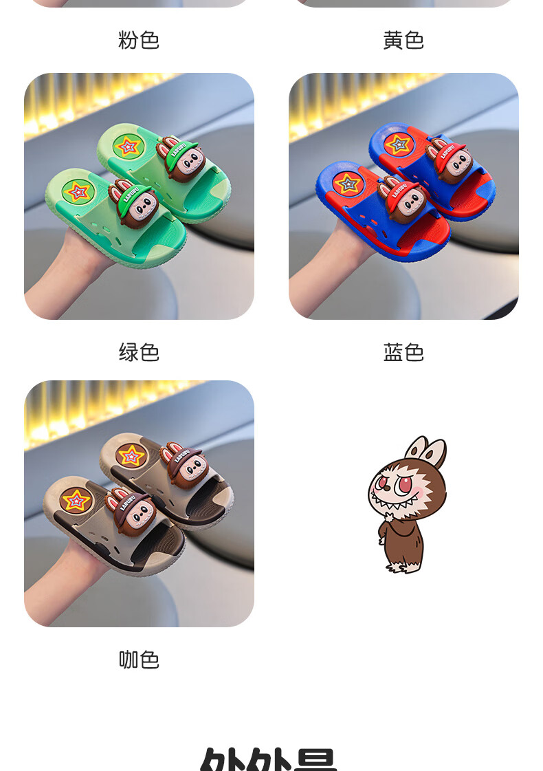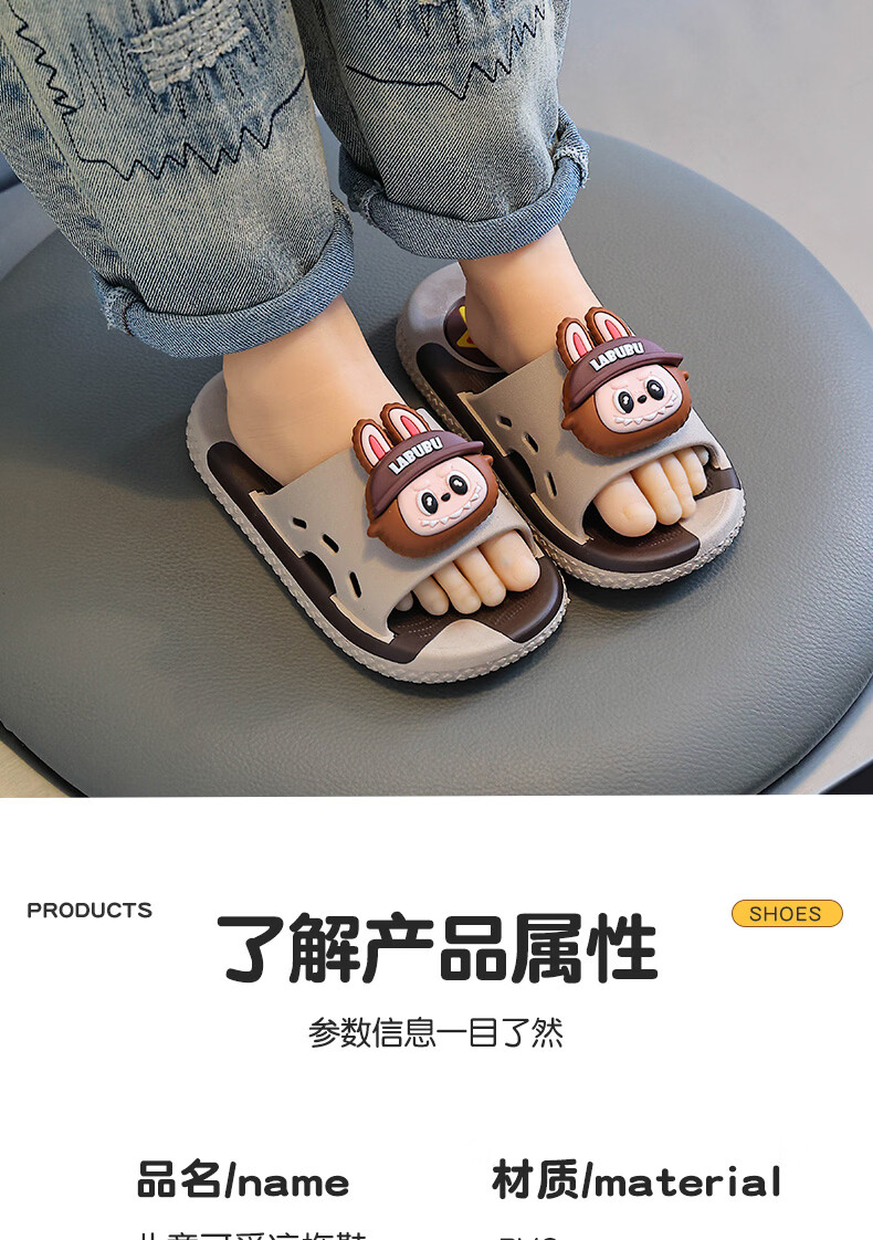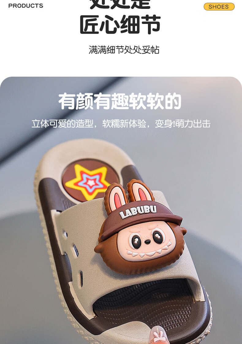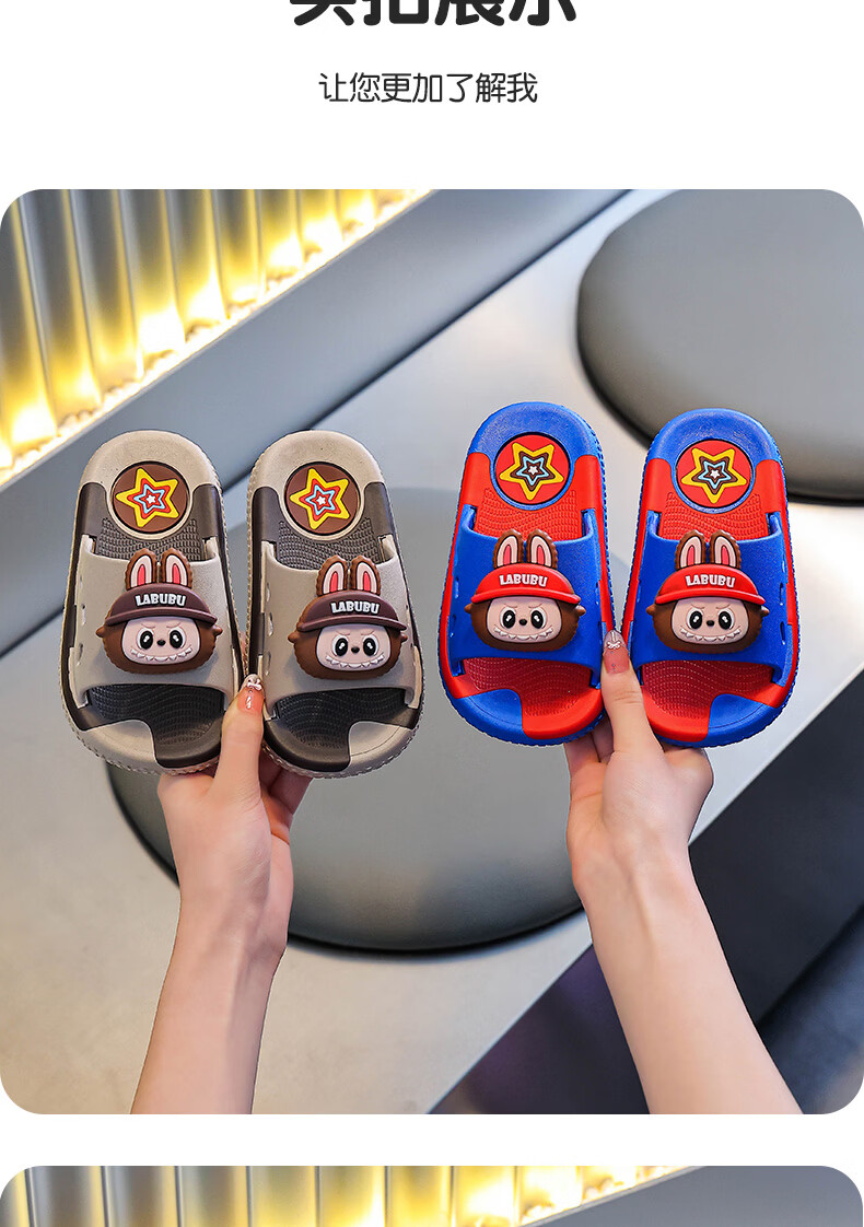Labubu children's slippers with soft soles for girls and babies, cute children's home indoor boys' cartoon non-slip bath, pink 18.5, inner length 18cm, size 28-29