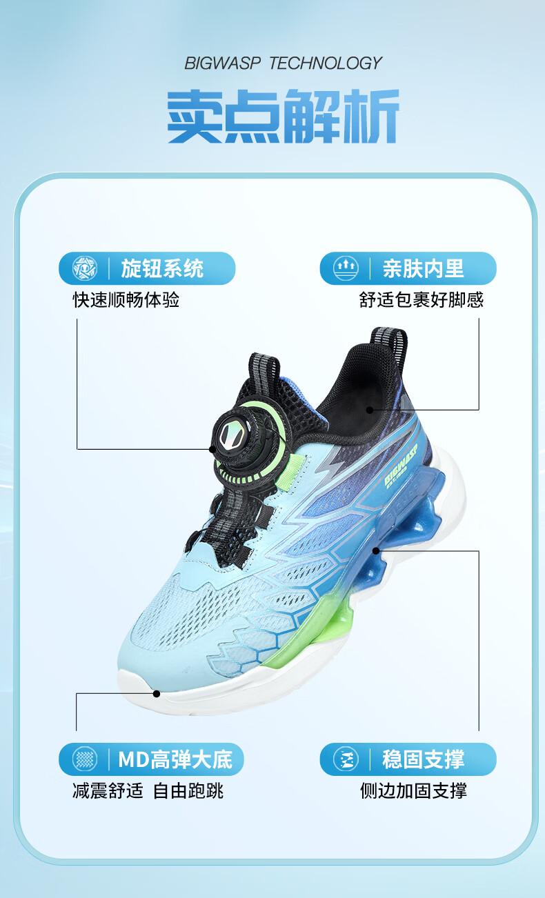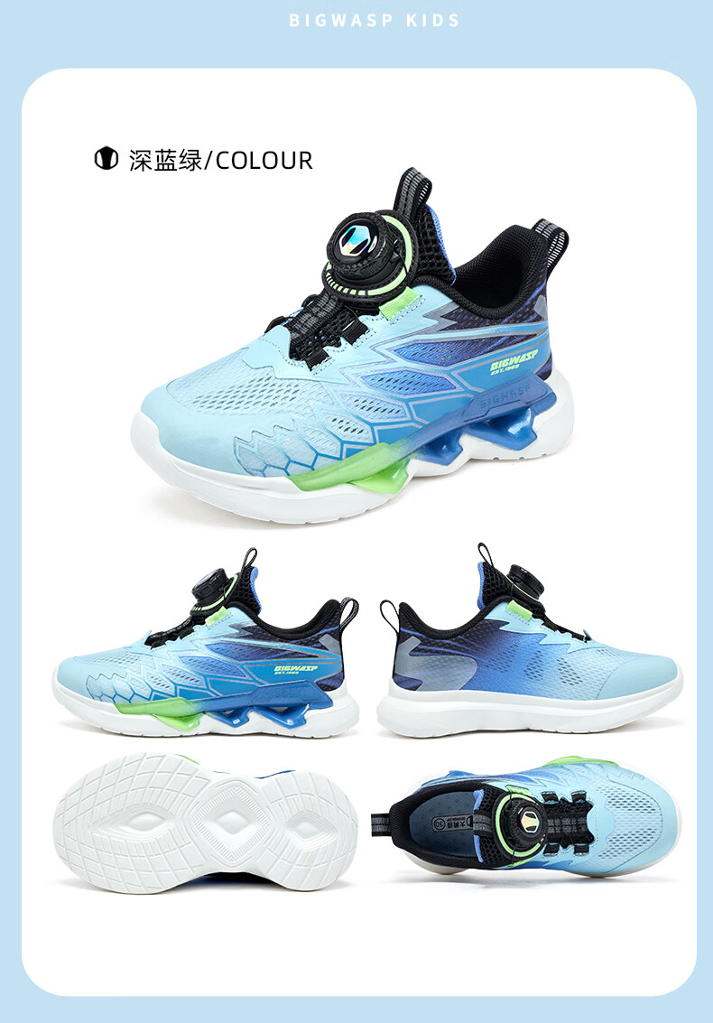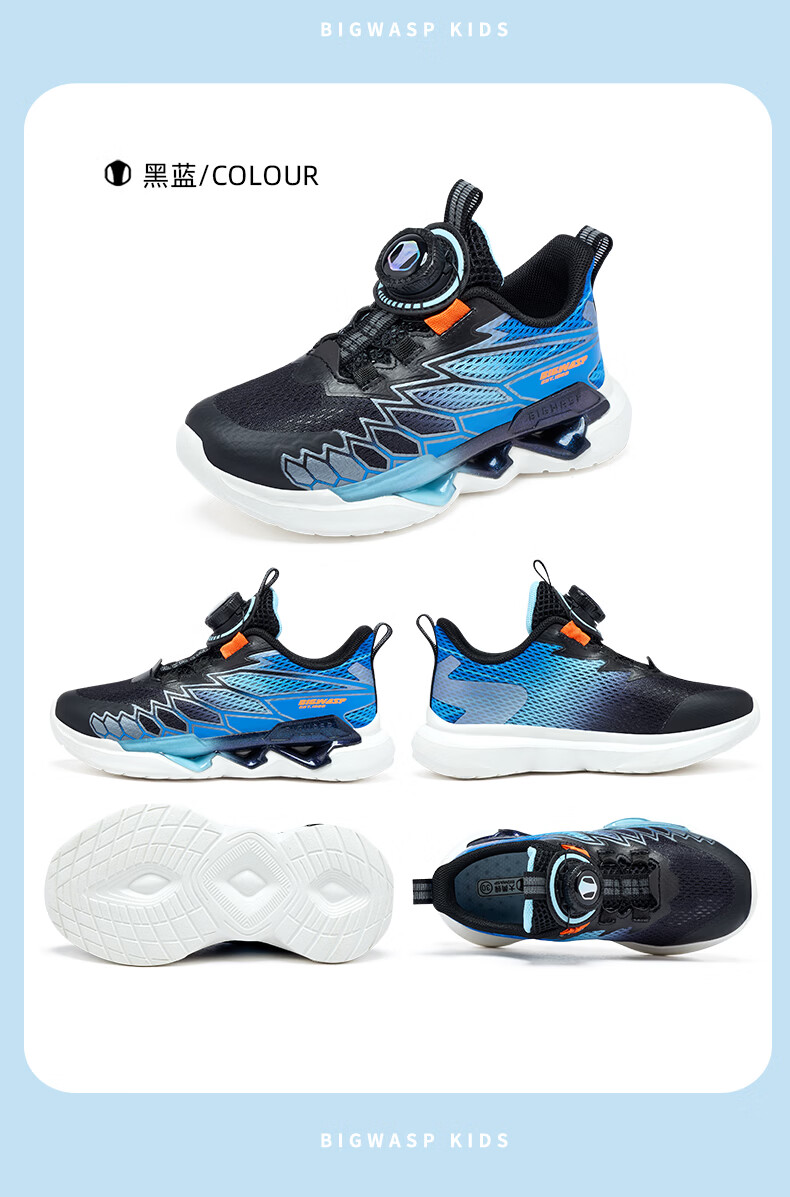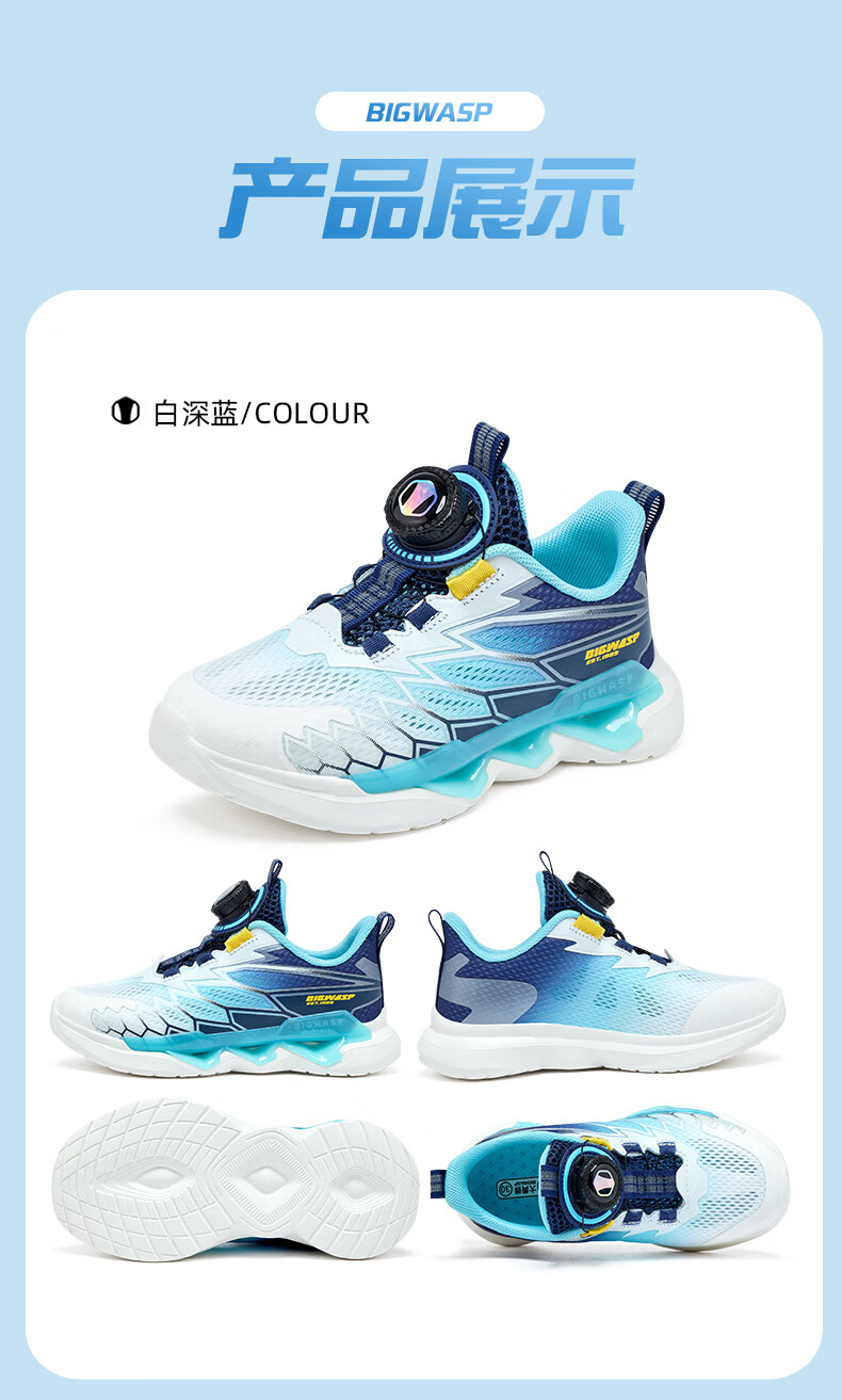 BIG WASP BIG WASP children's shoes children's professional running shoes boys summer new mesh breathable rotary buckle primary school students' sports shoes white dark blue 30