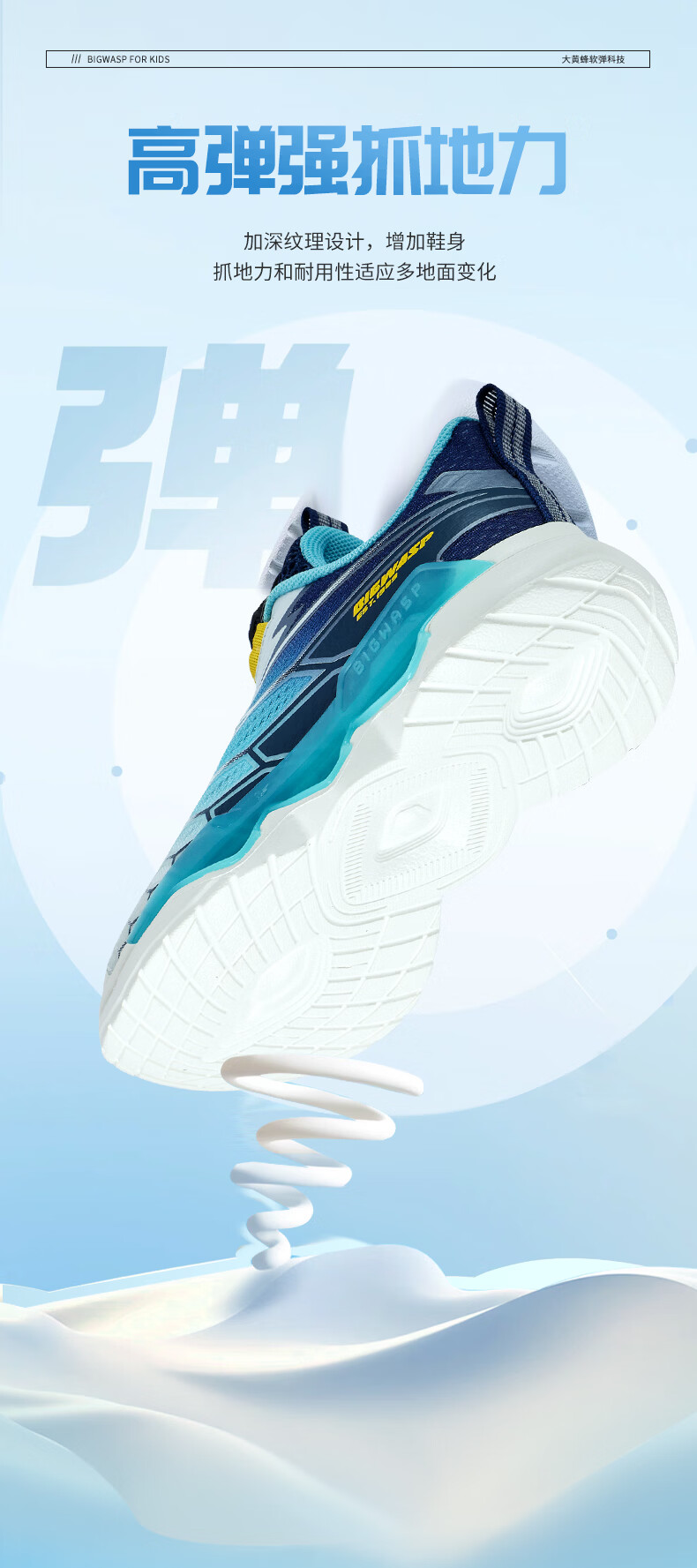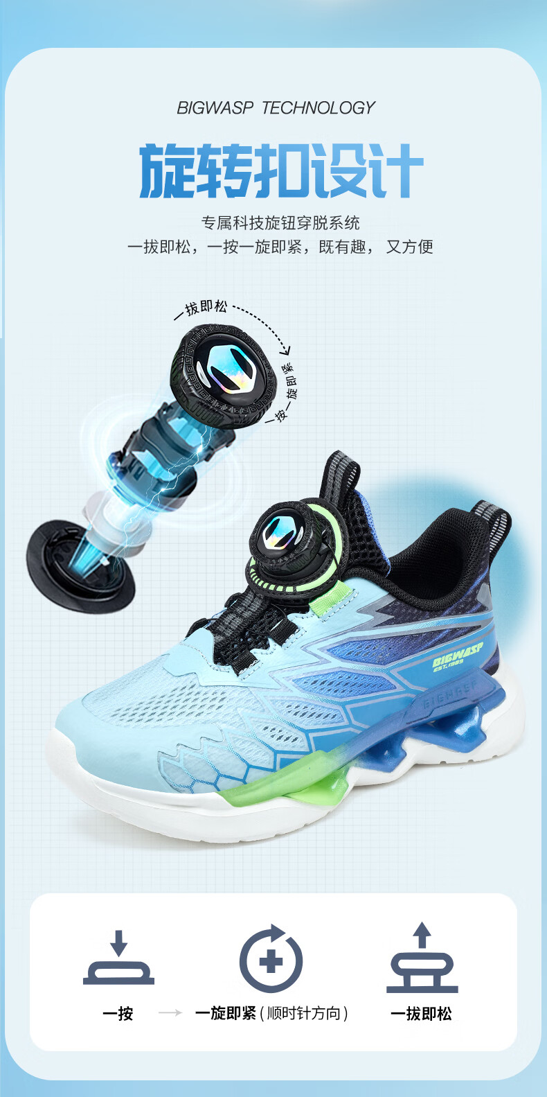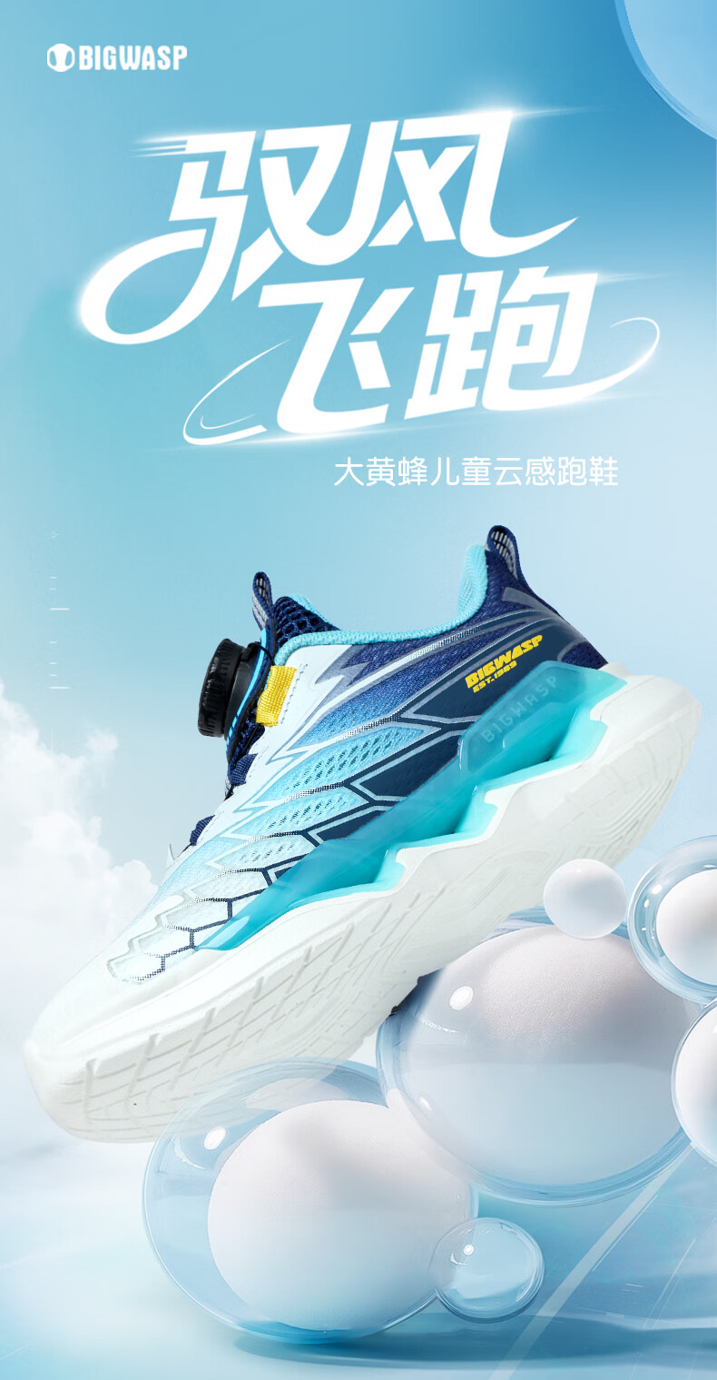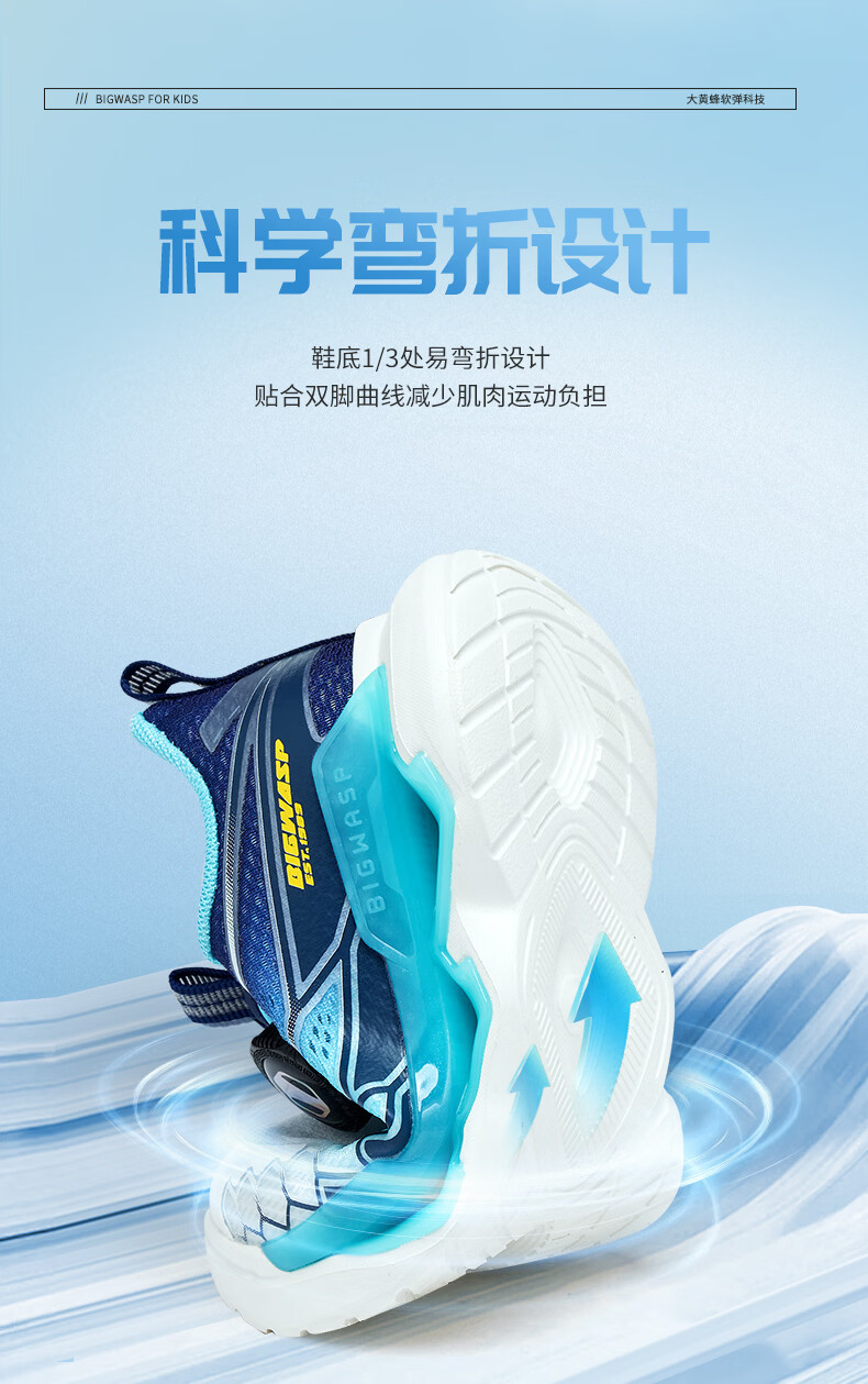 BIG WASP BIG WASP children's shoes children's professional running shoes boys summer new mesh breathable rotary buckle primary school students' sports shoes white dark blue 30