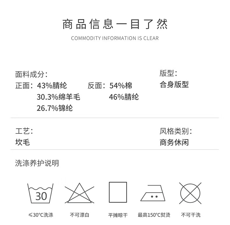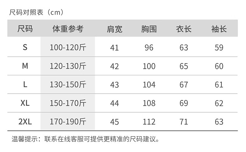 China (cm) 165 / 88-90 170 / 96-98 175 / 108-110 180 / 118-122 185 / 126-130