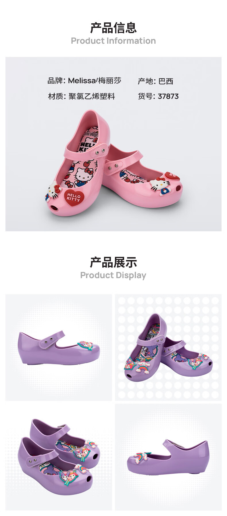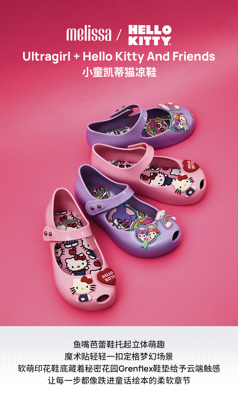 Melissa/Melissa 2026 new children's Sanrio HELLO KITTY joint ballet shoes 37873 pink BS712 10.5 size 22